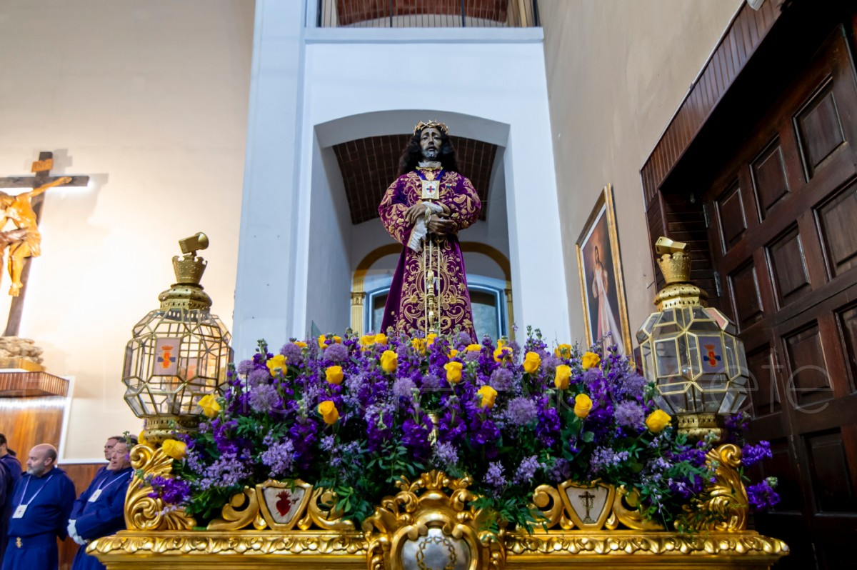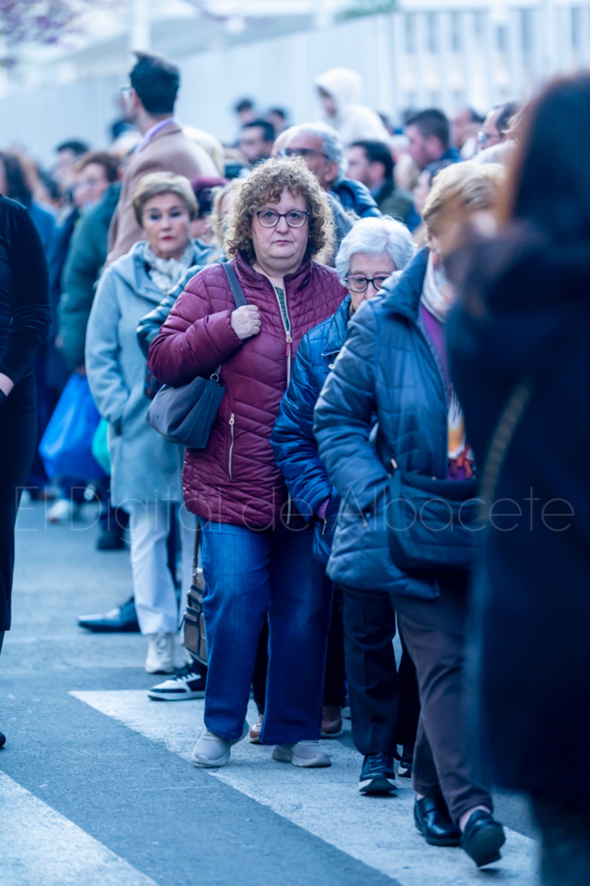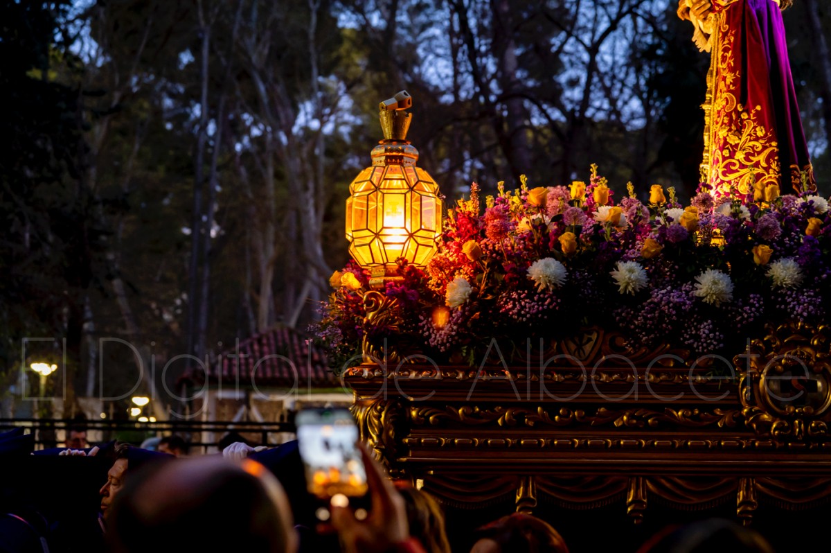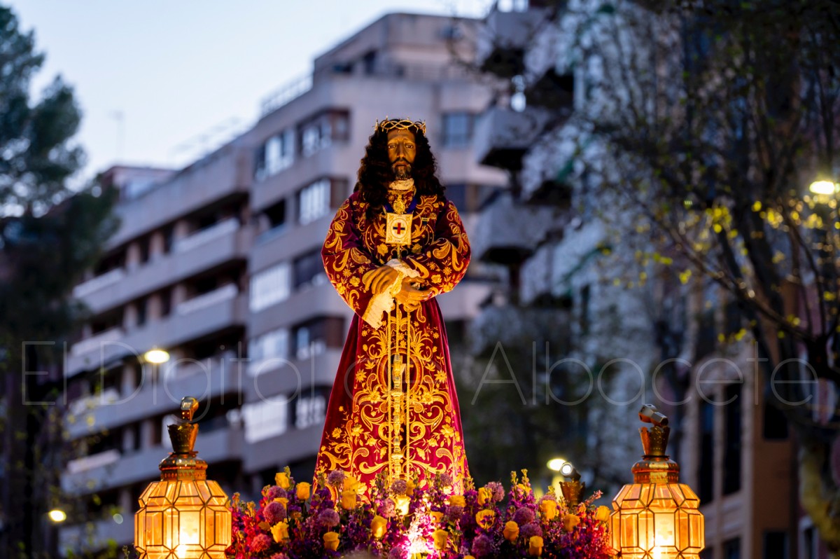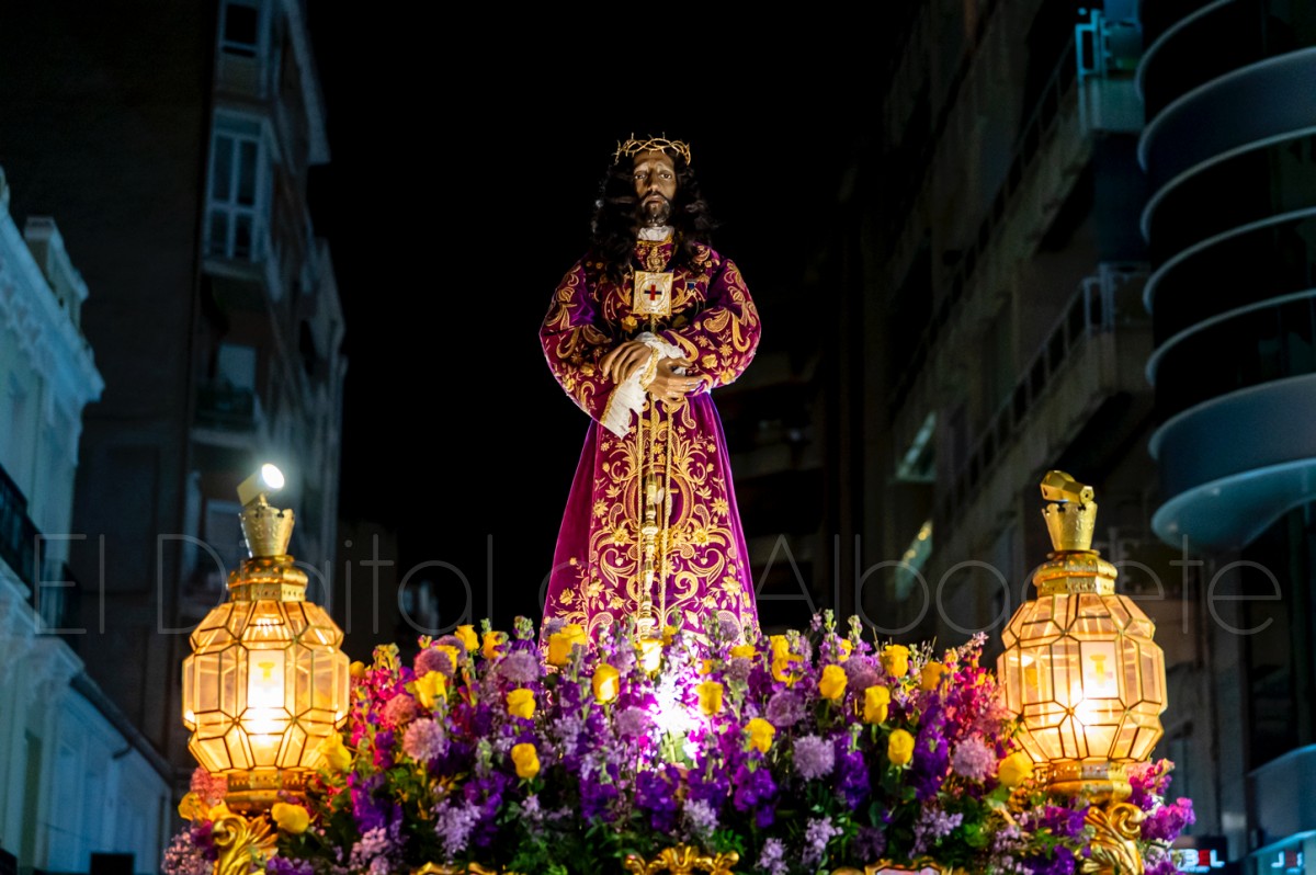 Cientos de albaceteños arropaban este 2 de abril a esta venerada talla durante su recorrido por las calles de la ciudad. La salida de esta procesión tenía lugar desde la Parroquia de Franciscanos, desde donde era portada a hombros por miembros de la Real e Ilustre Esclavitud de Nuestro Padre Jesús Nazareno de Medinaceli, en medio de una gran expectación. Numerosos fieles se congregaban a las puertas del templo para no perderse este emotivo instante.