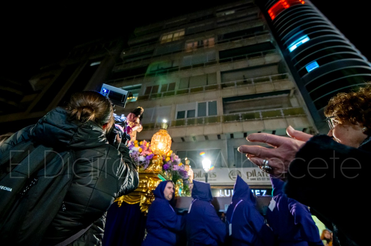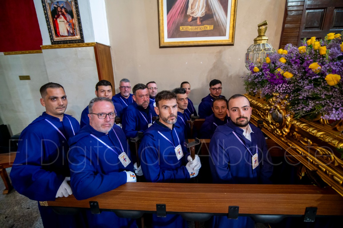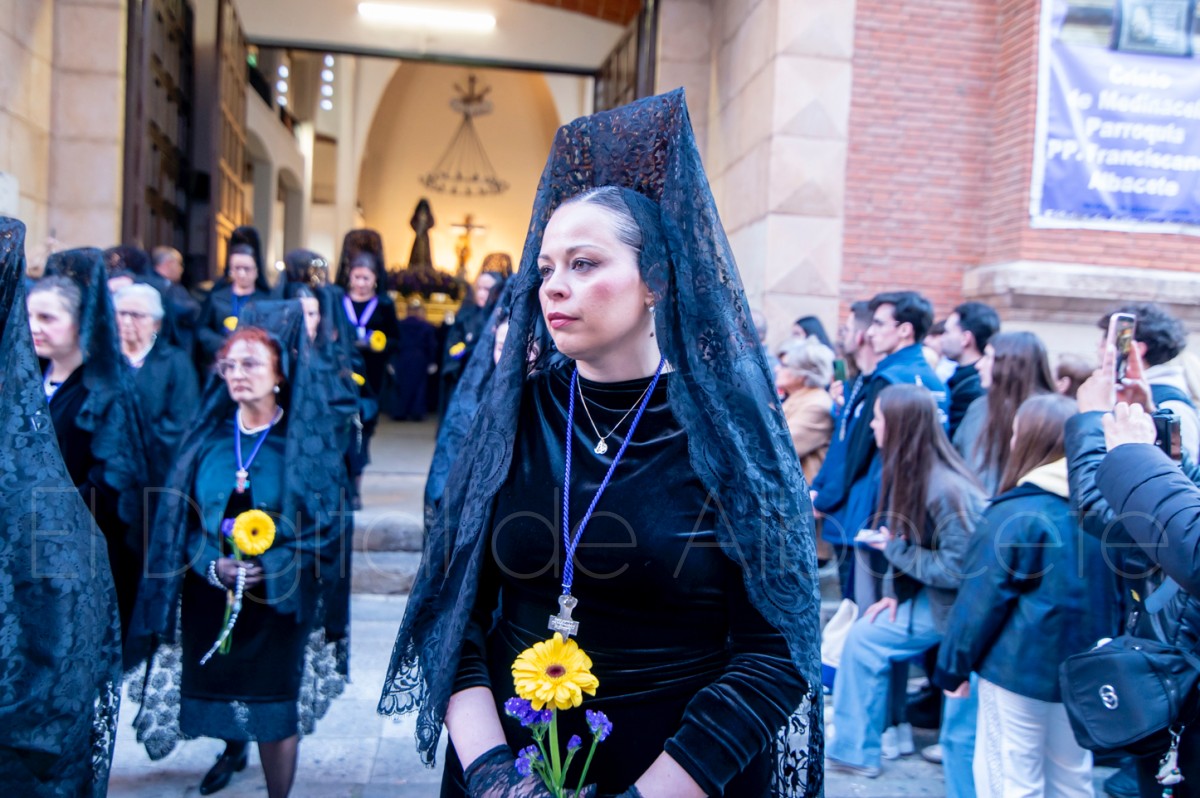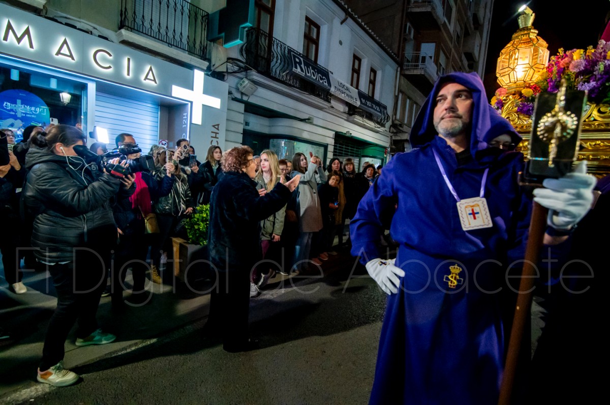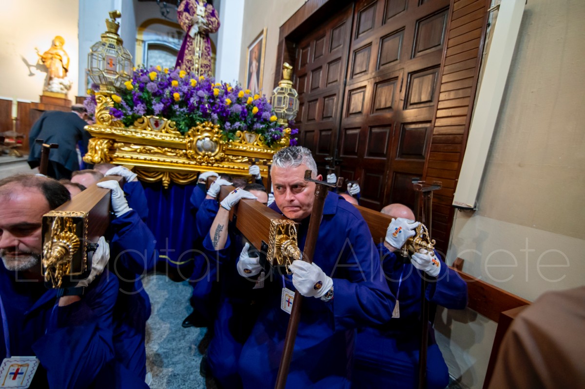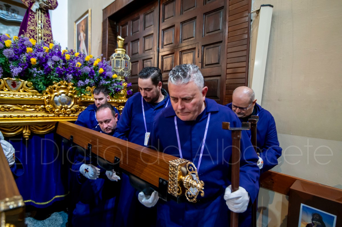 Cientos de albaceteños arropaban este 2 de abril a esta venerada talla durante su recorrido por las calles de la ciudad. La salida de esta procesión tenía lugar desde la Parroquia de Franciscanos, desde donde era portada a hombros por miembros de la Real e Ilustre Esclavitud de Nuestro Padre Jesús Nazareno de Medinaceli, en medio de una gran expectación. Numerosos fieles se congregaban a las puertas del templo para no perderse este emotivo instante.