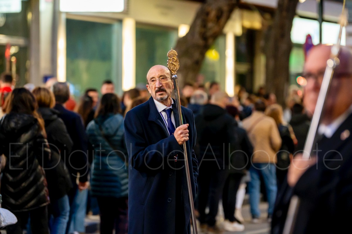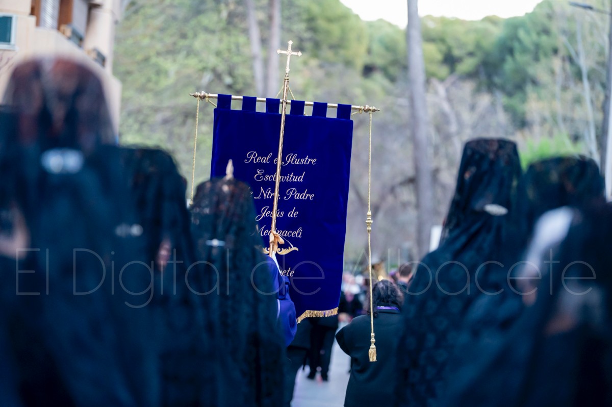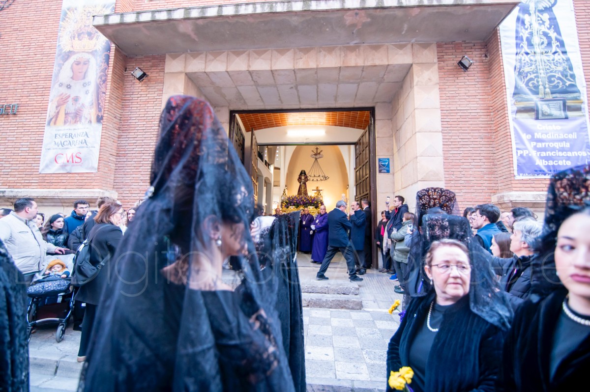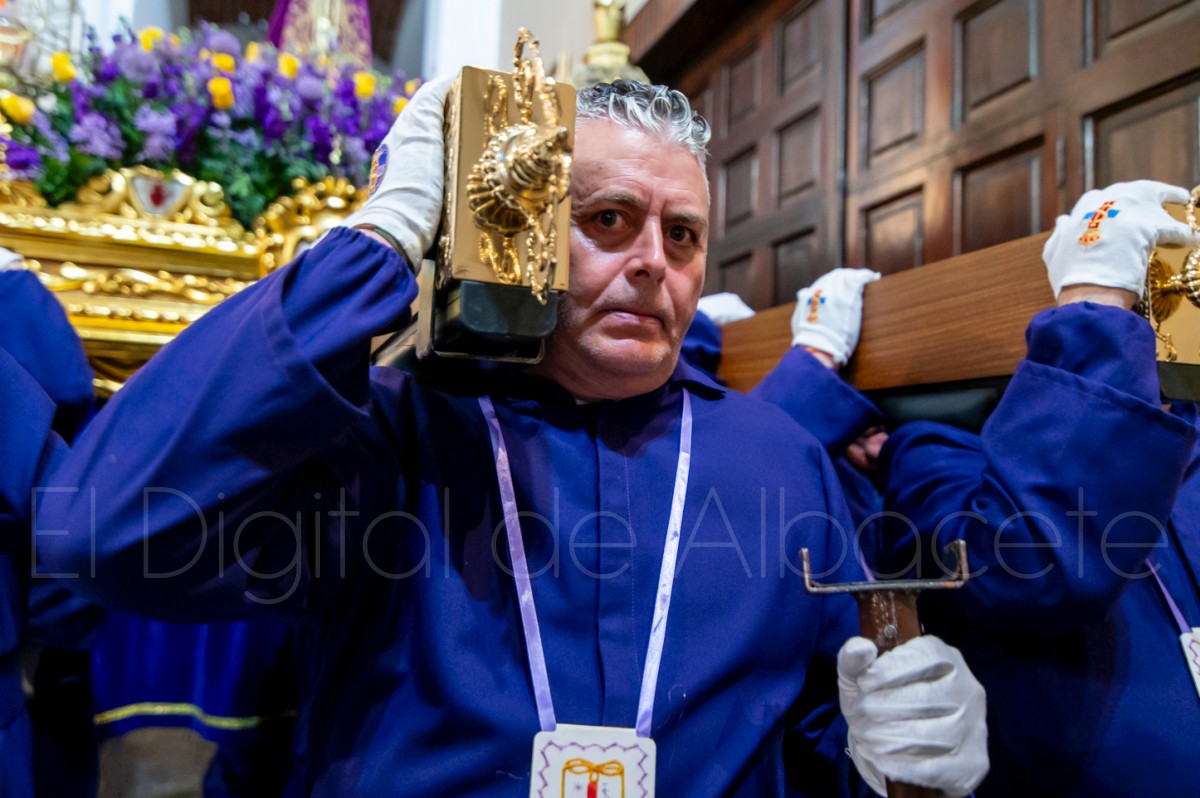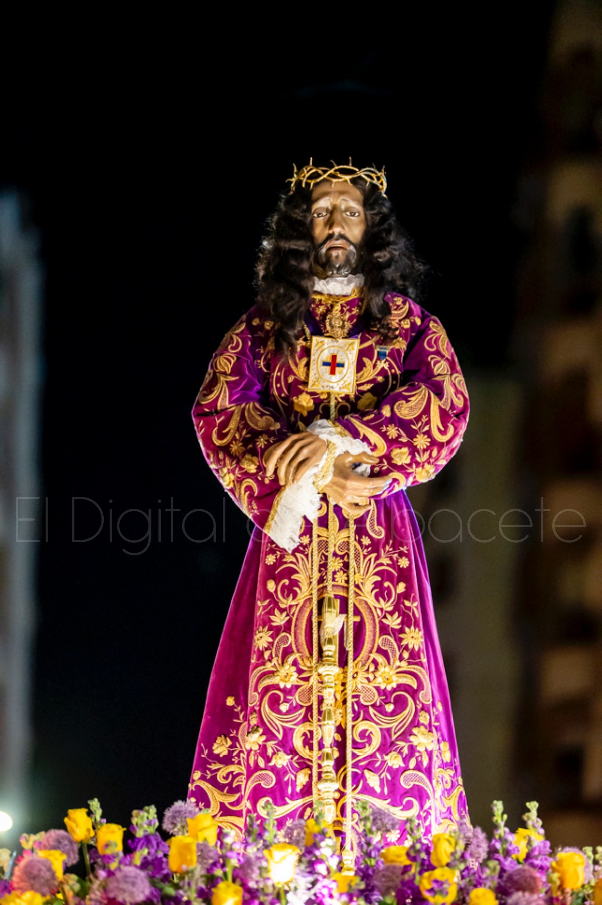 Cientos de albaceteños arropaban este 2 de abril a esta venerada talla durante su recorrido por las calles de la ciudad. La salida de esta procesión tenía lugar desde la Parroquia de Franciscanos, desde donde era portada a hombros por miembros de la Real e Ilustre Esclavitud de Nuestro Padre Jesús Nazareno de Medinaceli, en medio de una gran expectación. Numerosos fieles se congregaban a las puertas del templo para no perderse este emotivo instante.