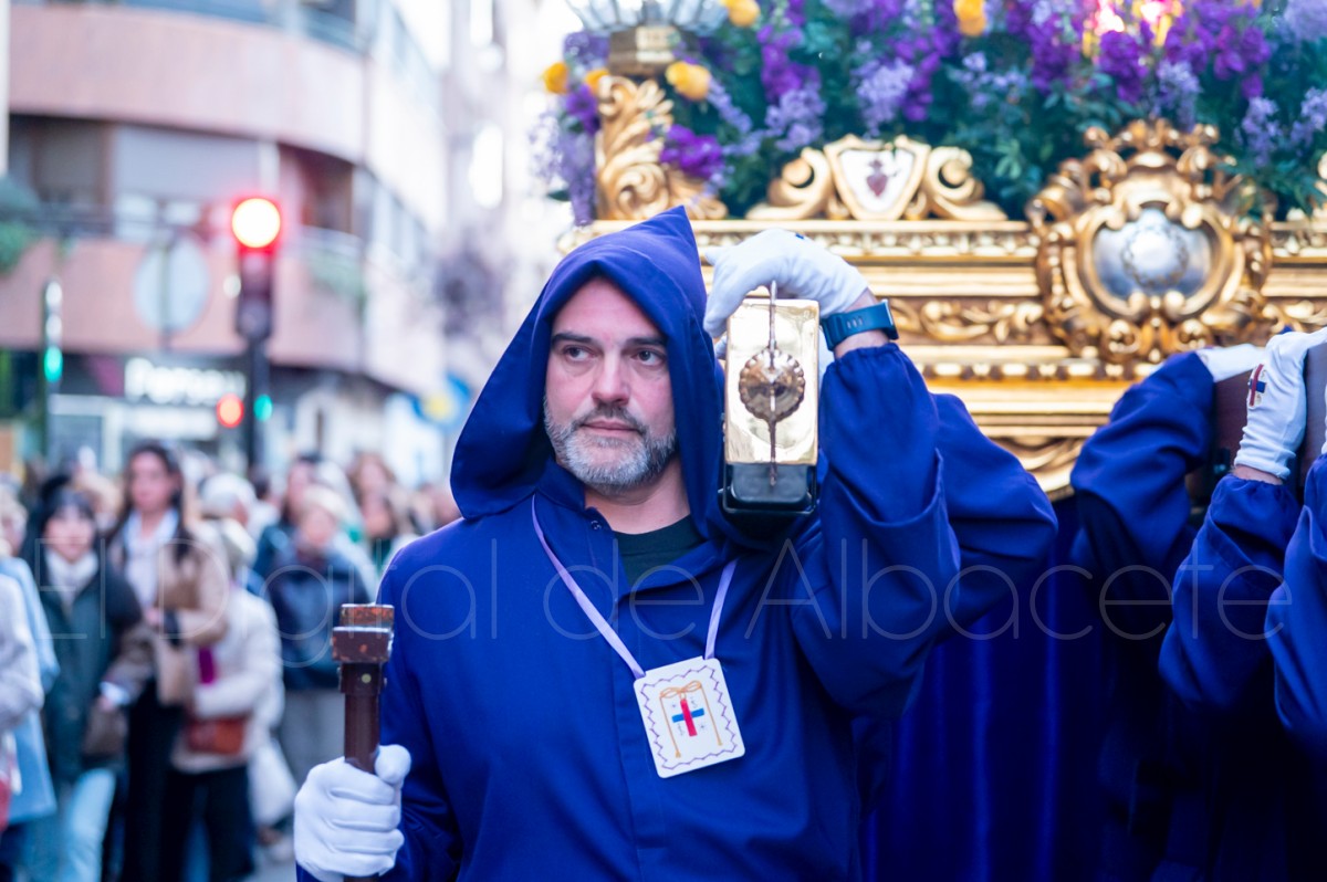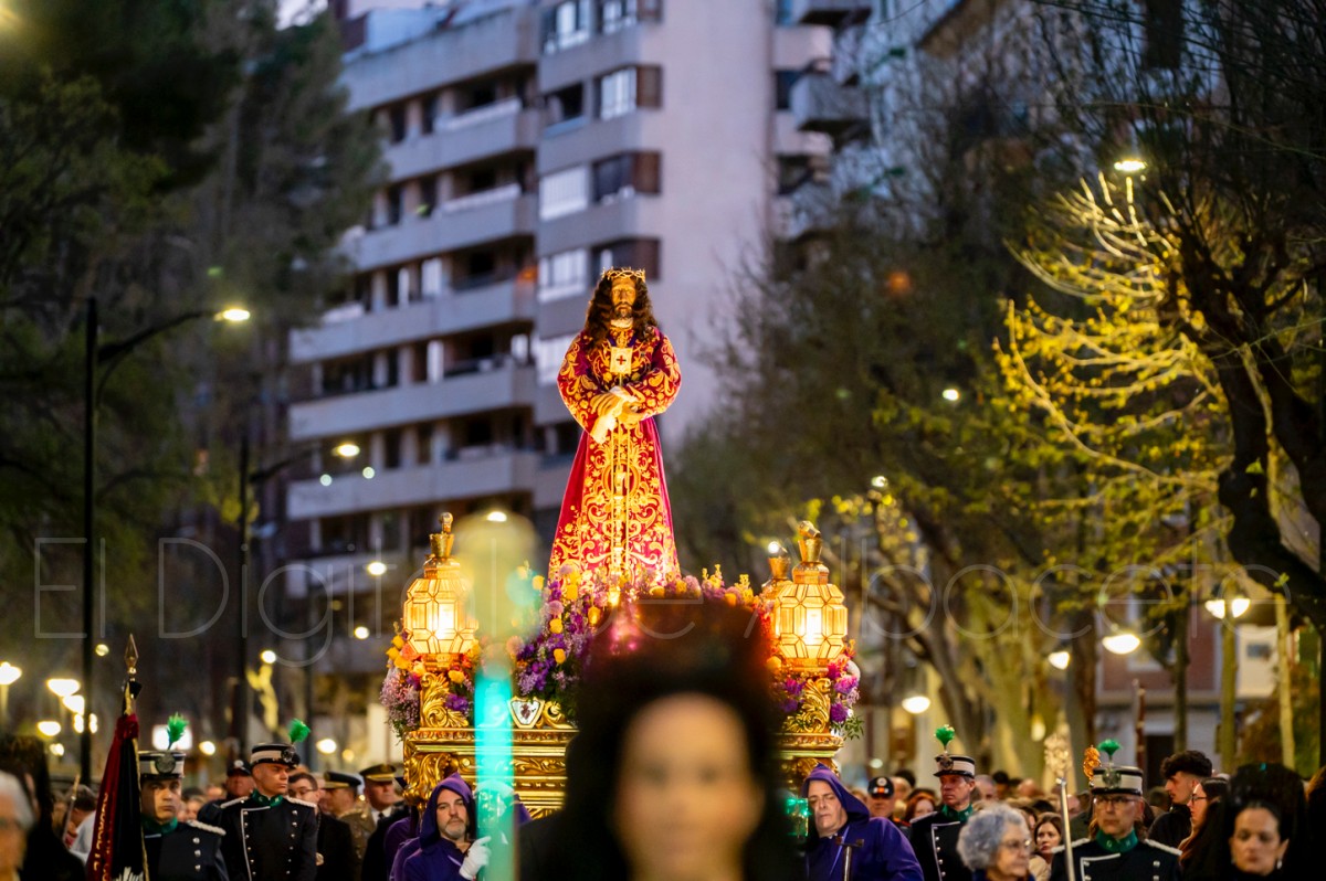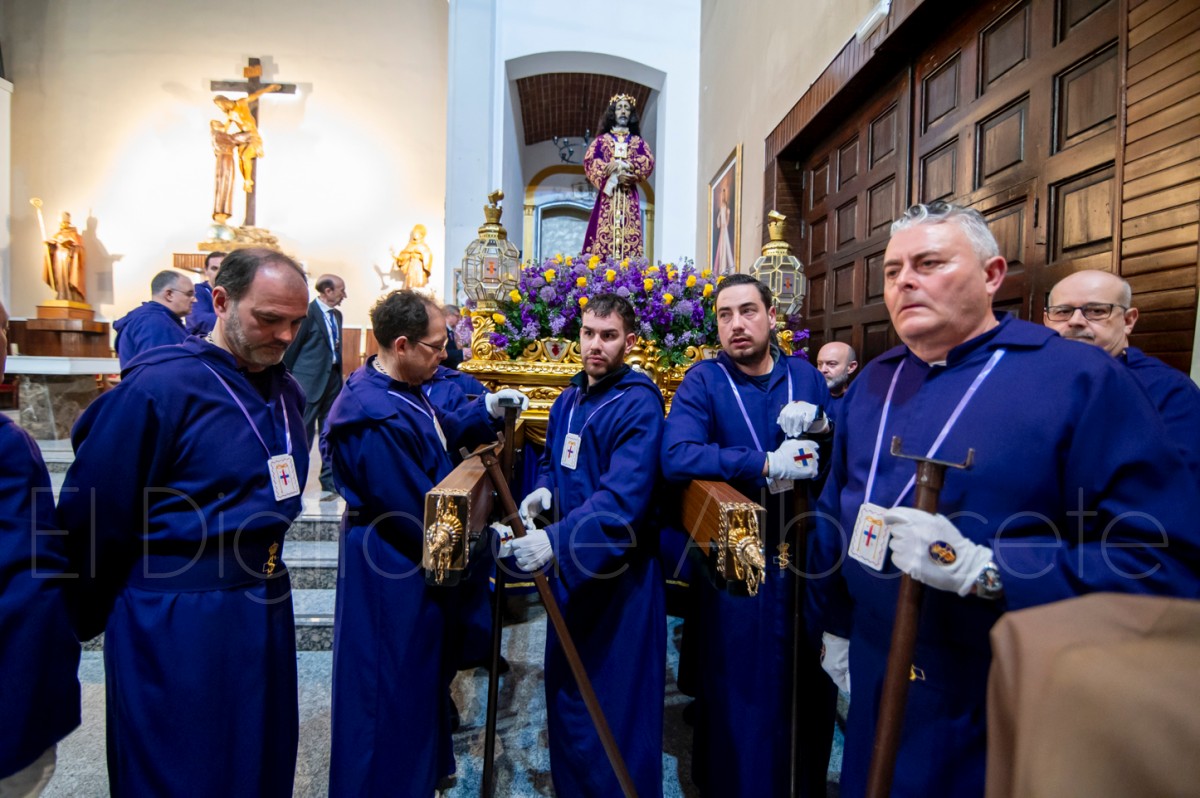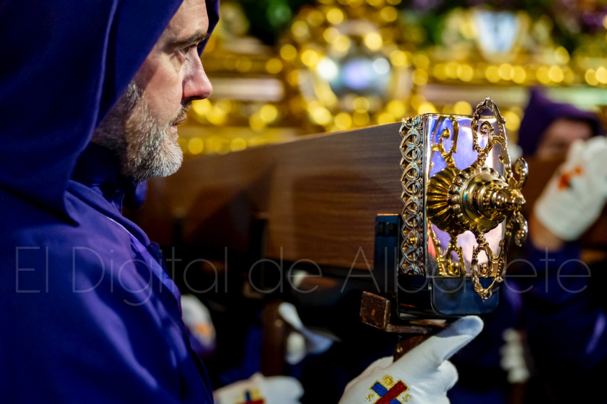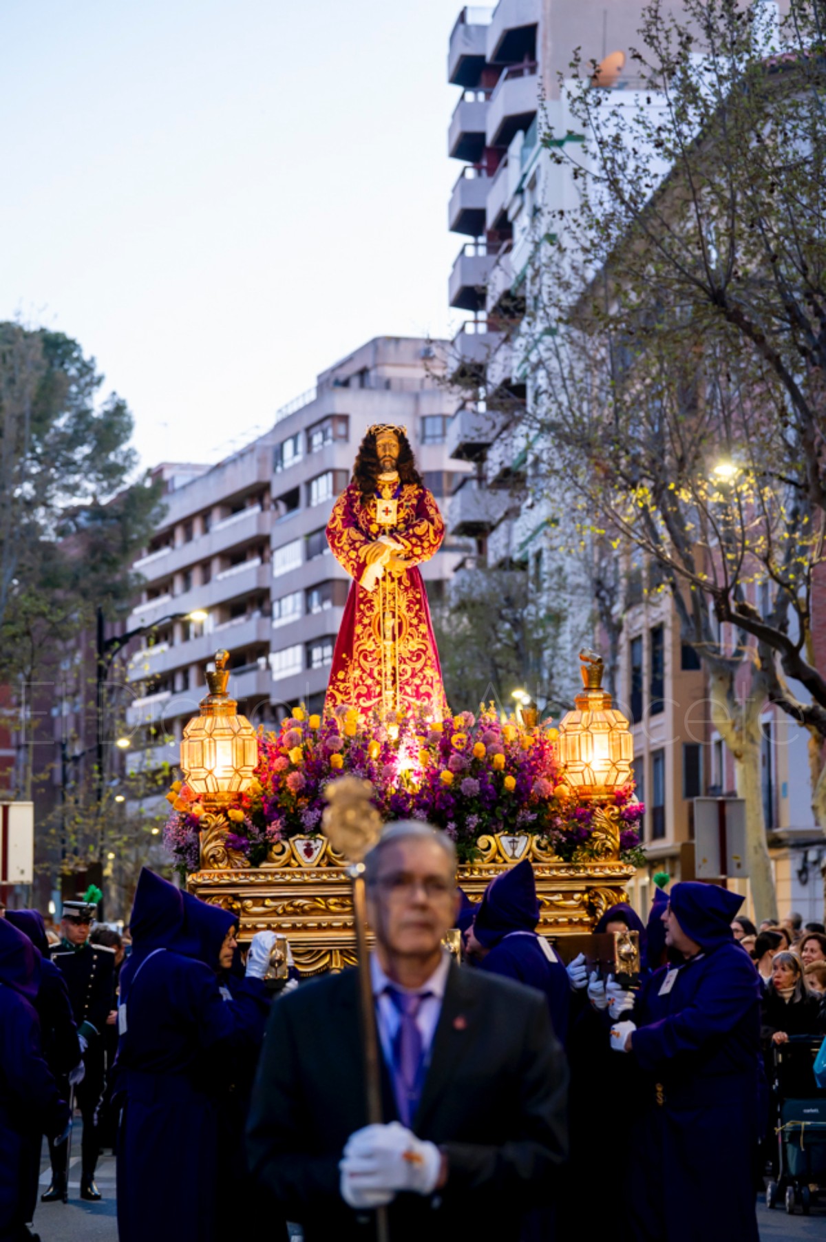 Cientos de albaceteños arropaban este 2 de abril a esta venerada talla durante su recorrido por las calles de la ciudad. La salida de esta procesión tenía lugar desde la Parroquia de Franciscanos, desde donde era portada a hombros por miembros de la Real e Ilustre Esclavitud de Nuestro Padre Jesús Nazareno de Medinaceli, en medio de una gran expectación. Numerosos fieles se congregaban a las puertas del templo para no perderse este emotivo instante.