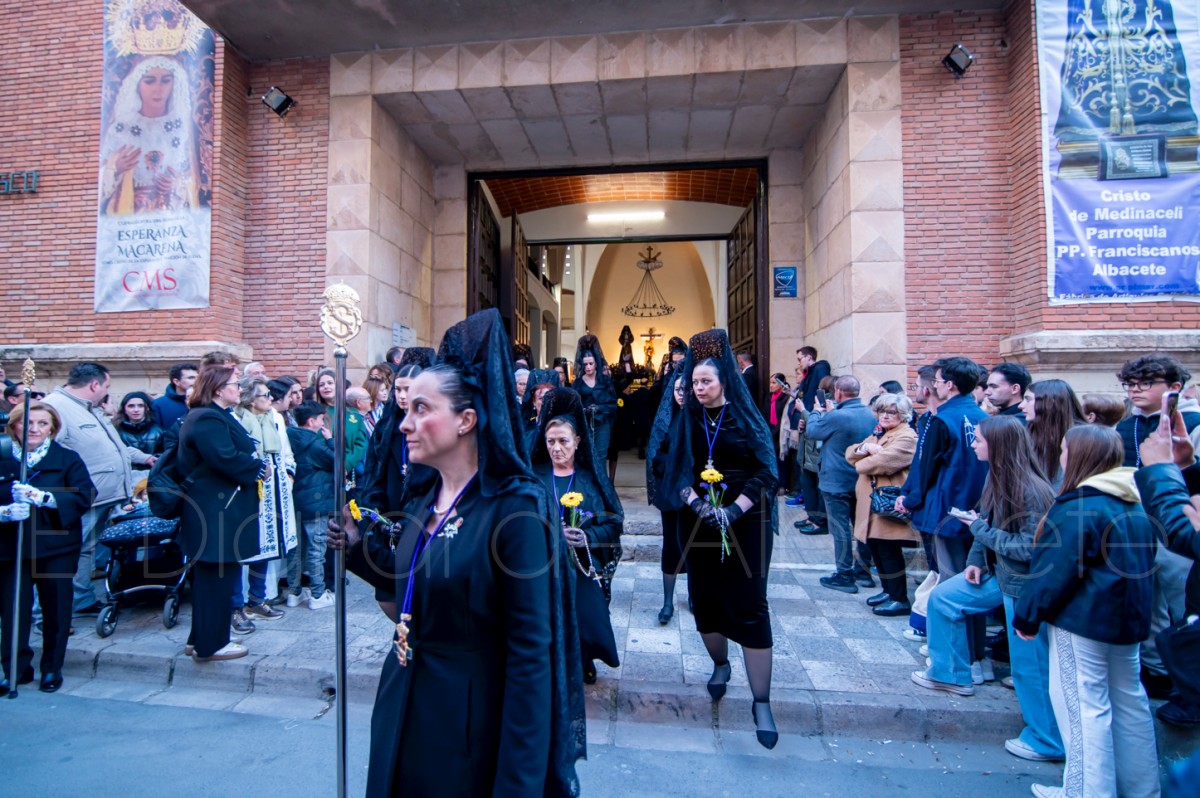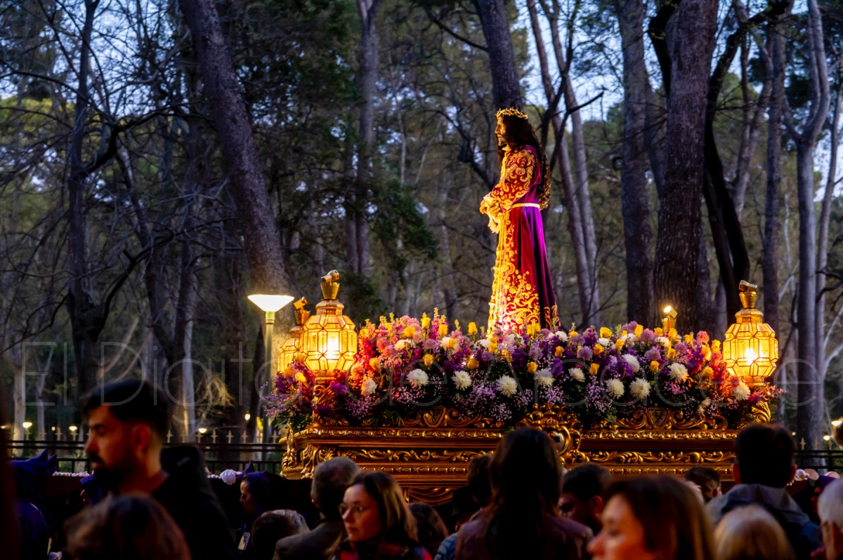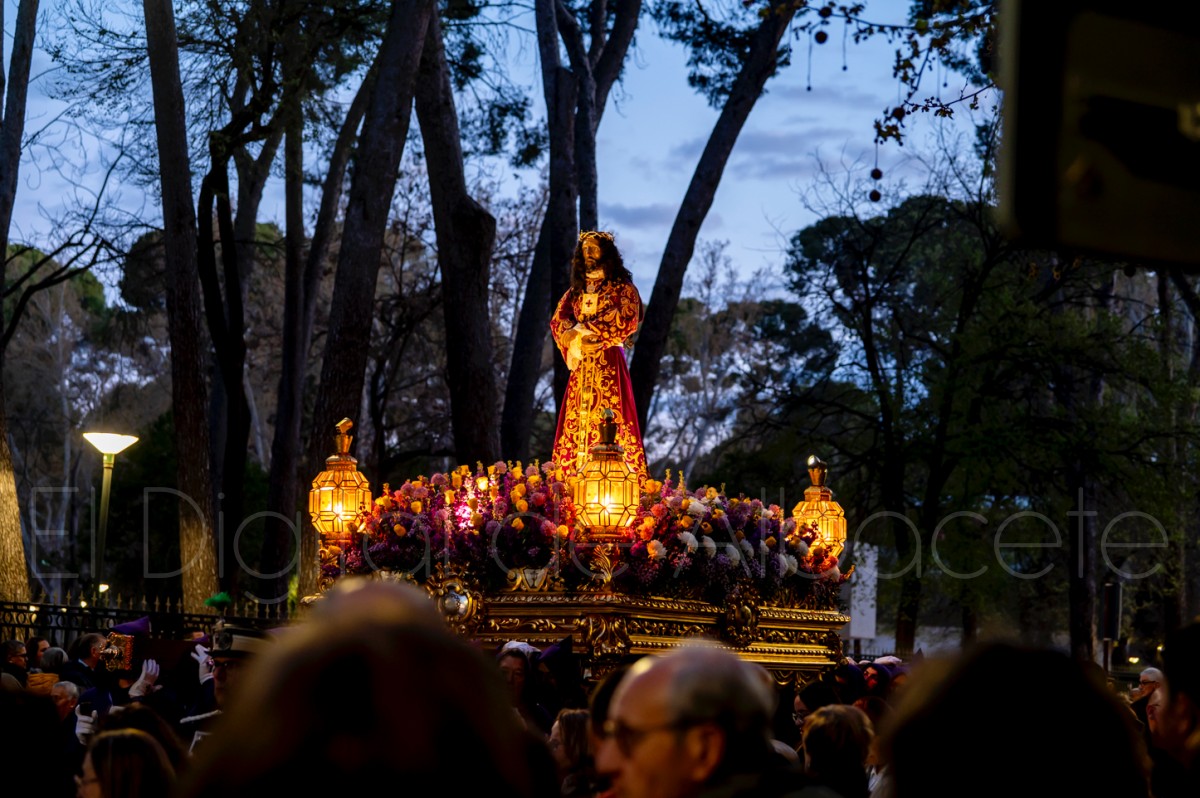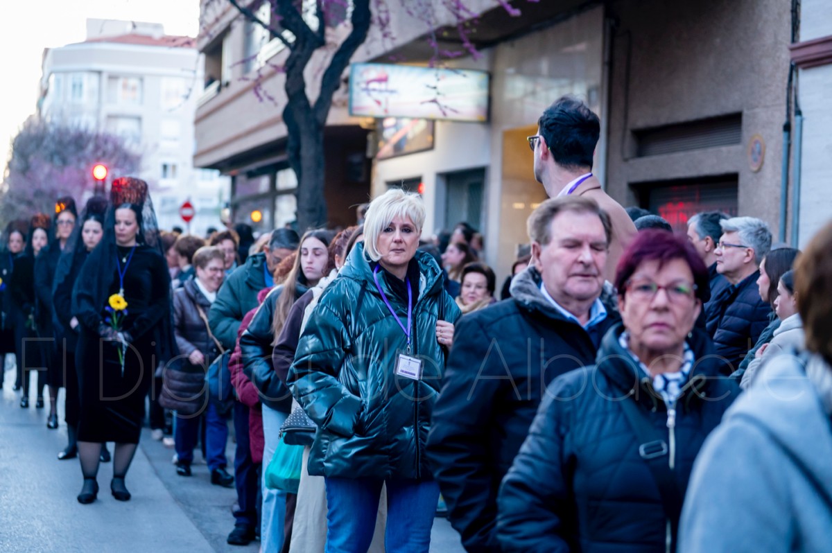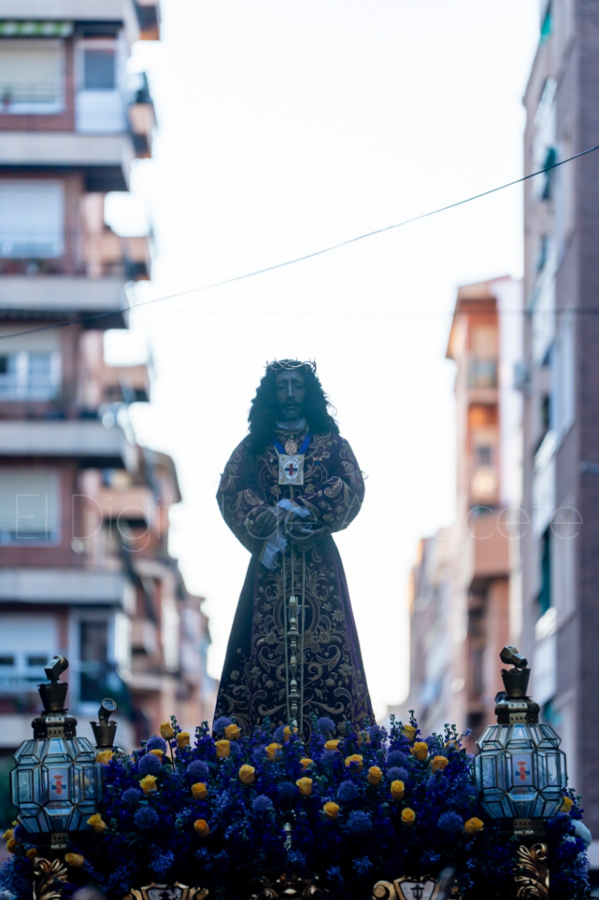 Cientos de albaceteños arropaban este 2 de abril a esta venerada talla durante su recorrido por las calles de la ciudad. La salida de esta procesión tenía lugar desde la Parroquia de Franciscanos, desde donde era portada a hombros por miembros de la Real e Ilustre Esclavitud de Nuestro Padre Jesús Nazareno de Medinaceli, en medio de una gran expectación. Numerosos fieles se congregaban a las puertas del templo para no perderse este emotivo instante.