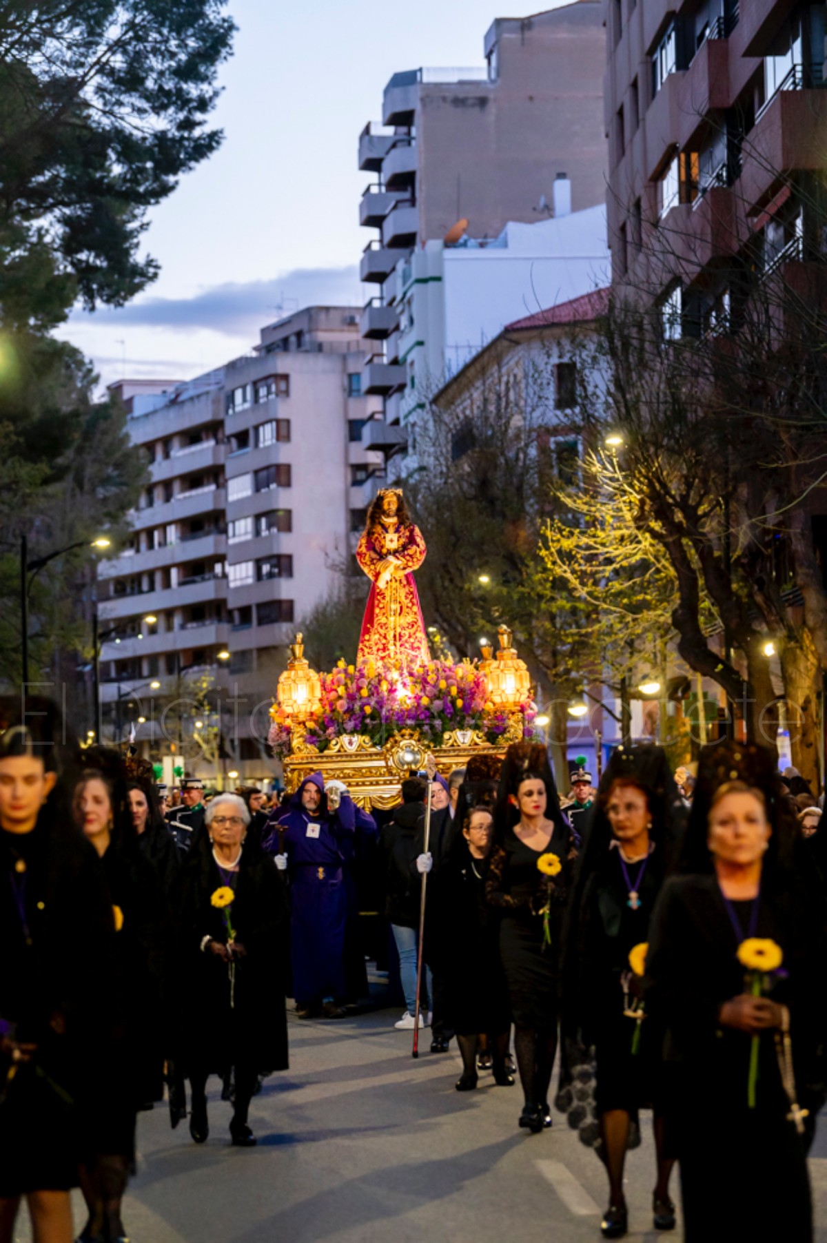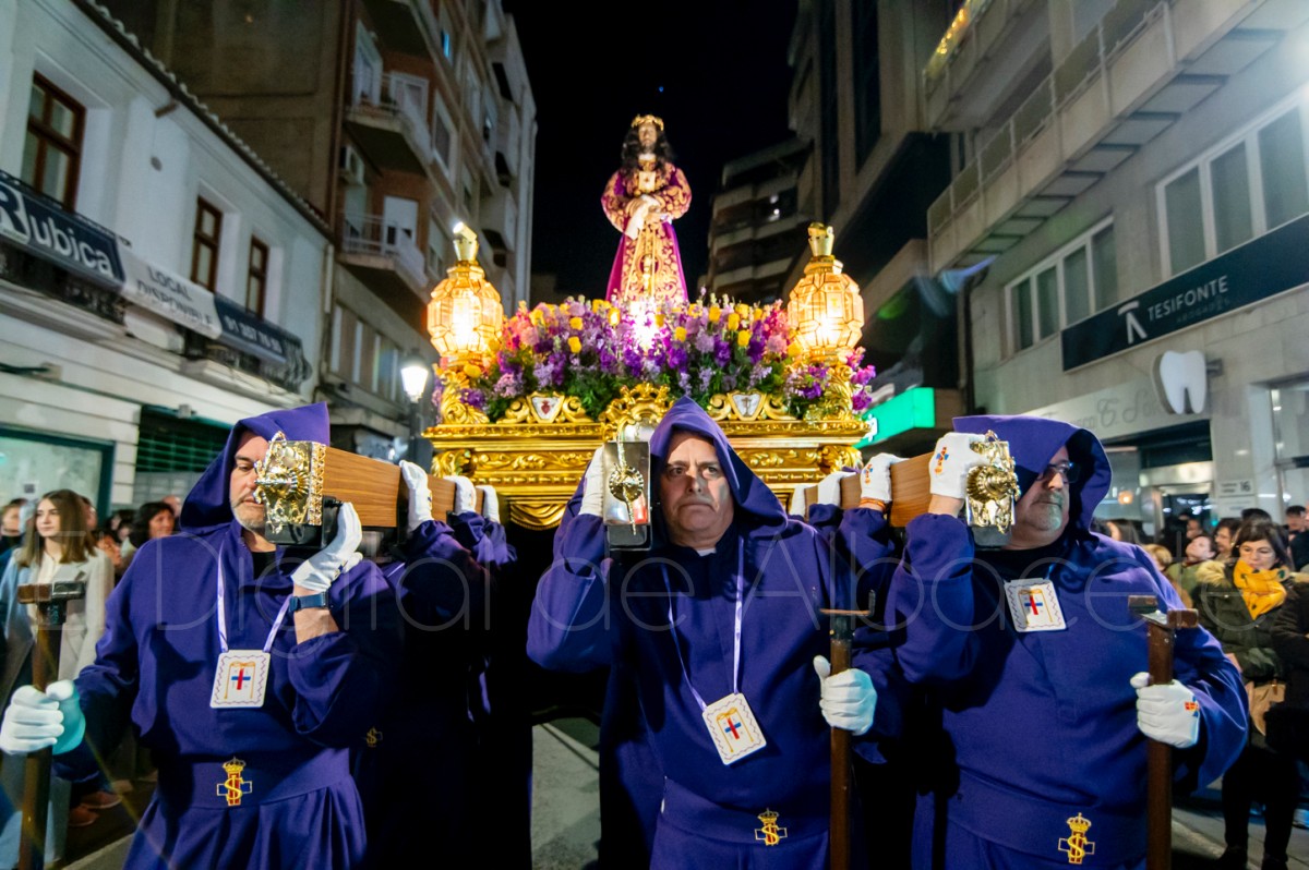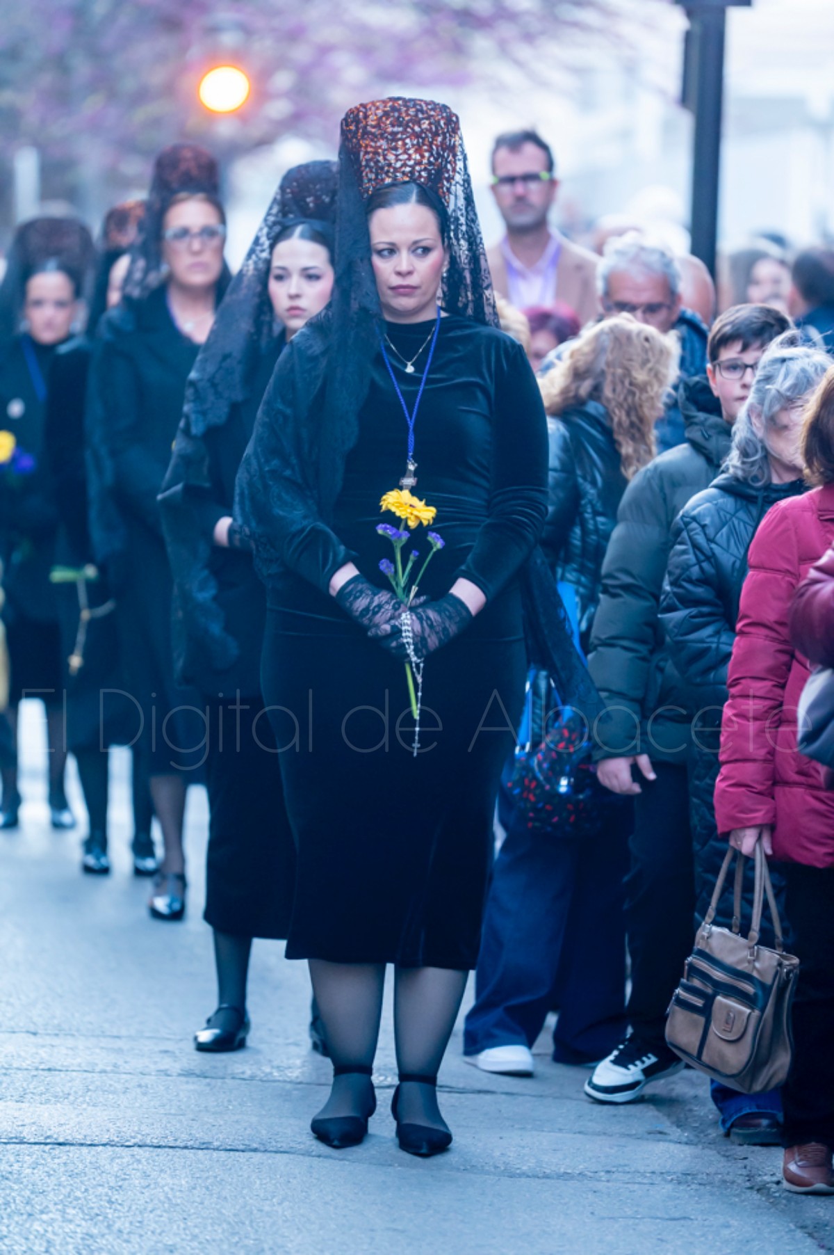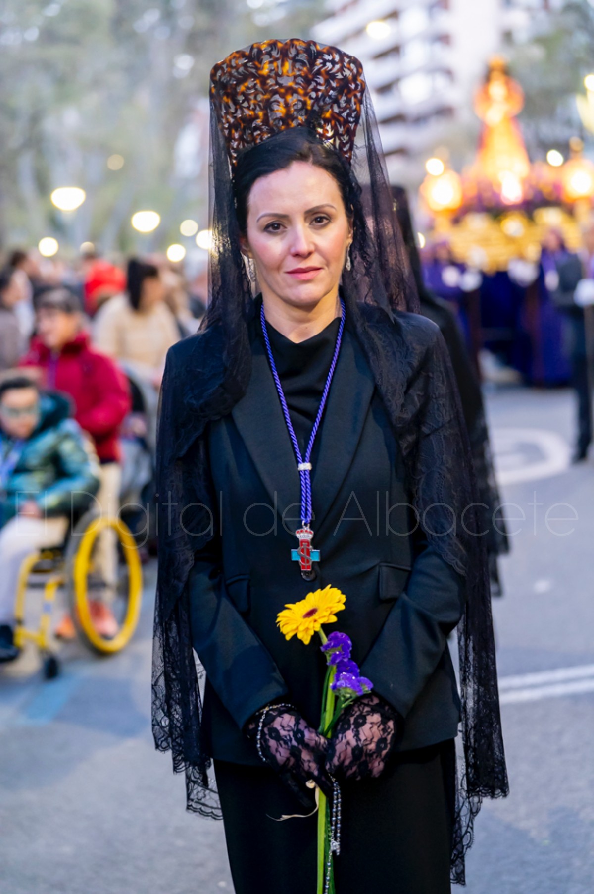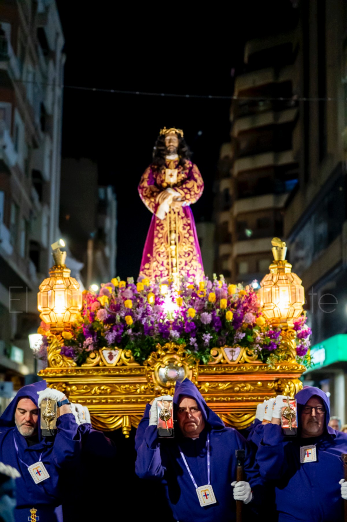 Cientos de albaceteños arropaban este 2 de abril a esta venerada talla durante su recorrido por las calles de la ciudad. La salida de esta procesión tenía lugar desde la Parroquia de Franciscanos, desde donde era portada a hombros por miembros de la Real e Ilustre Esclavitud de Nuestro Padre Jesús Nazareno de Medinaceli, en medio de una gran expectación. Numerosos fieles se congregaban a las puertas del templo para no perderse este emotivo instante.