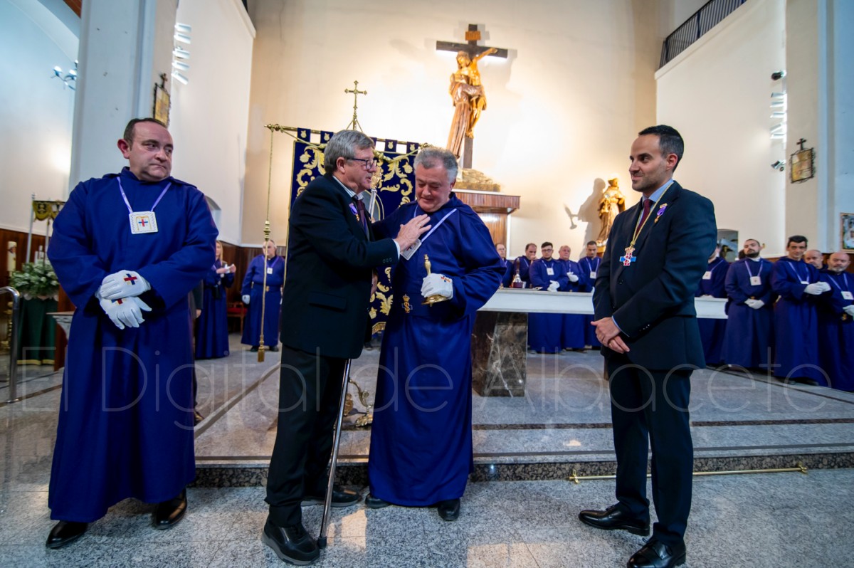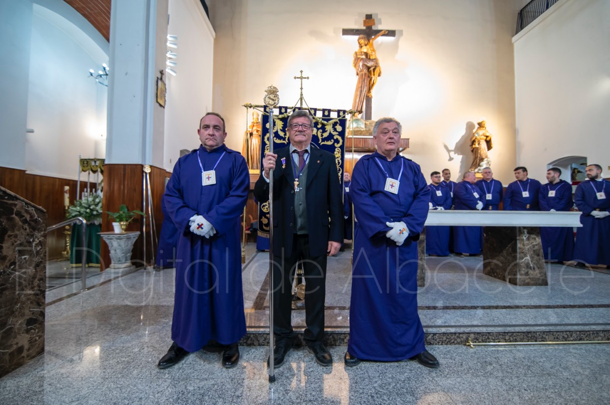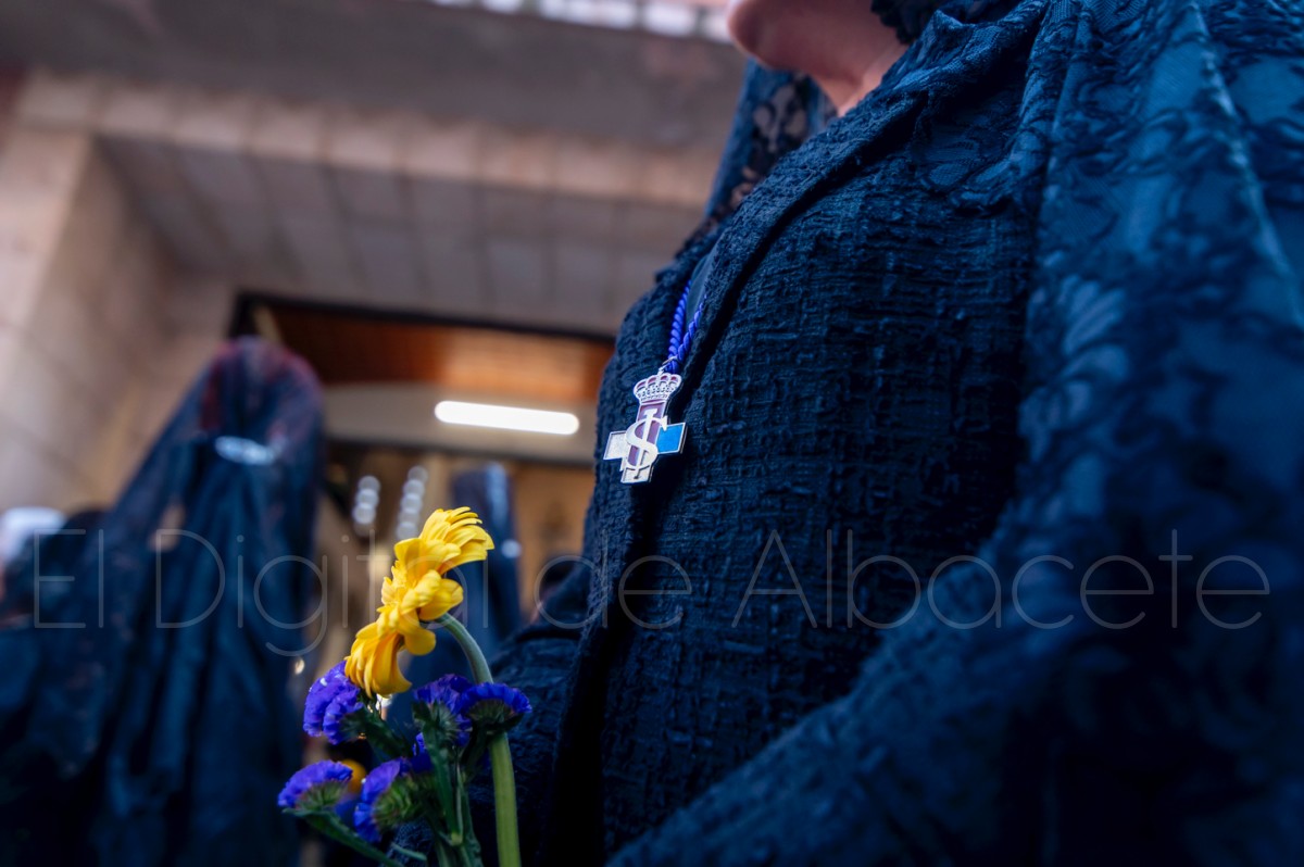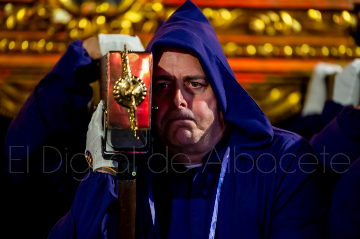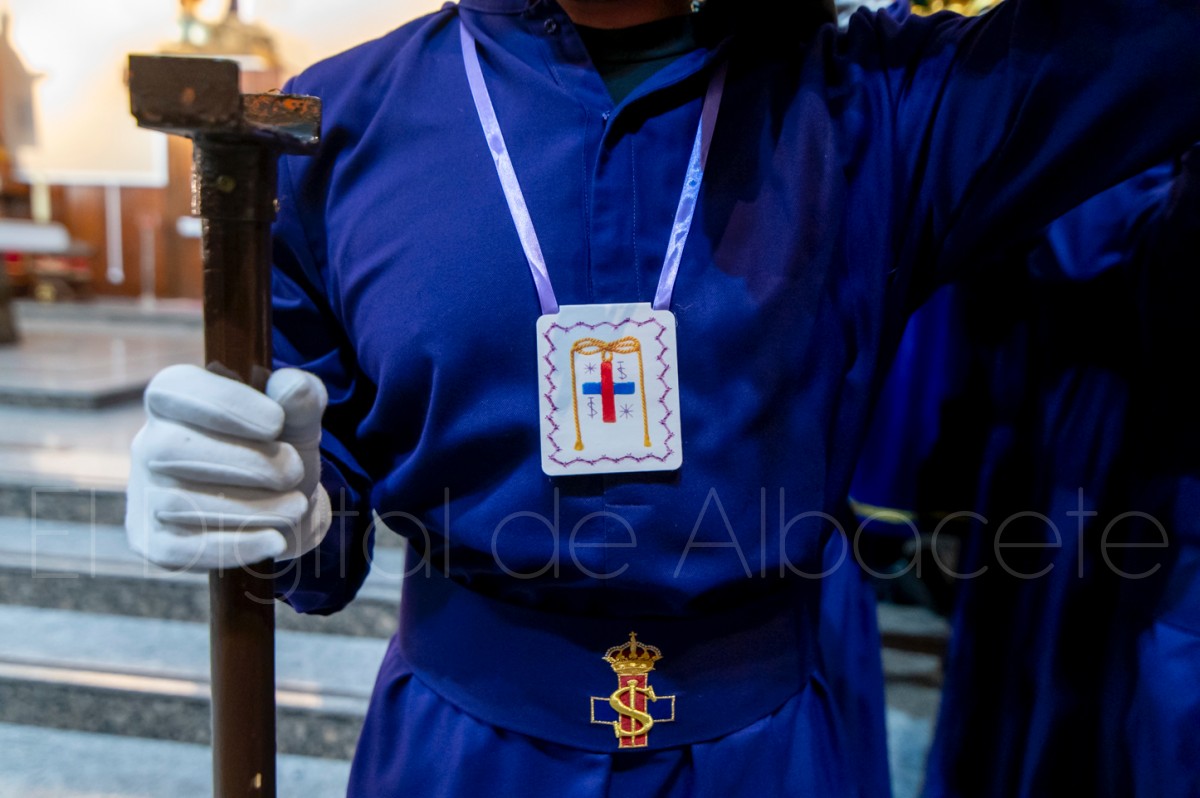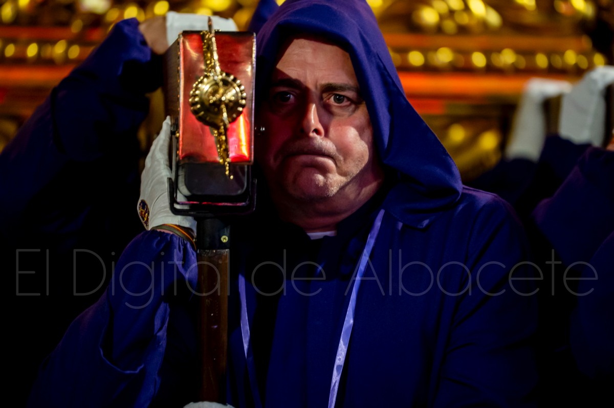 La imagen del Cristo de Medinaceli lucía en su túnica este Jueves Santo un detalle muy especial. En concreto, llevaba prendido un alfiler de la ciudad de Albacete que entregaba a la cofradía el alcalde, Manuel Serrano.