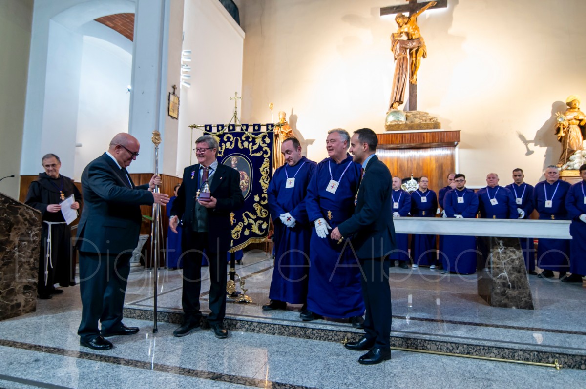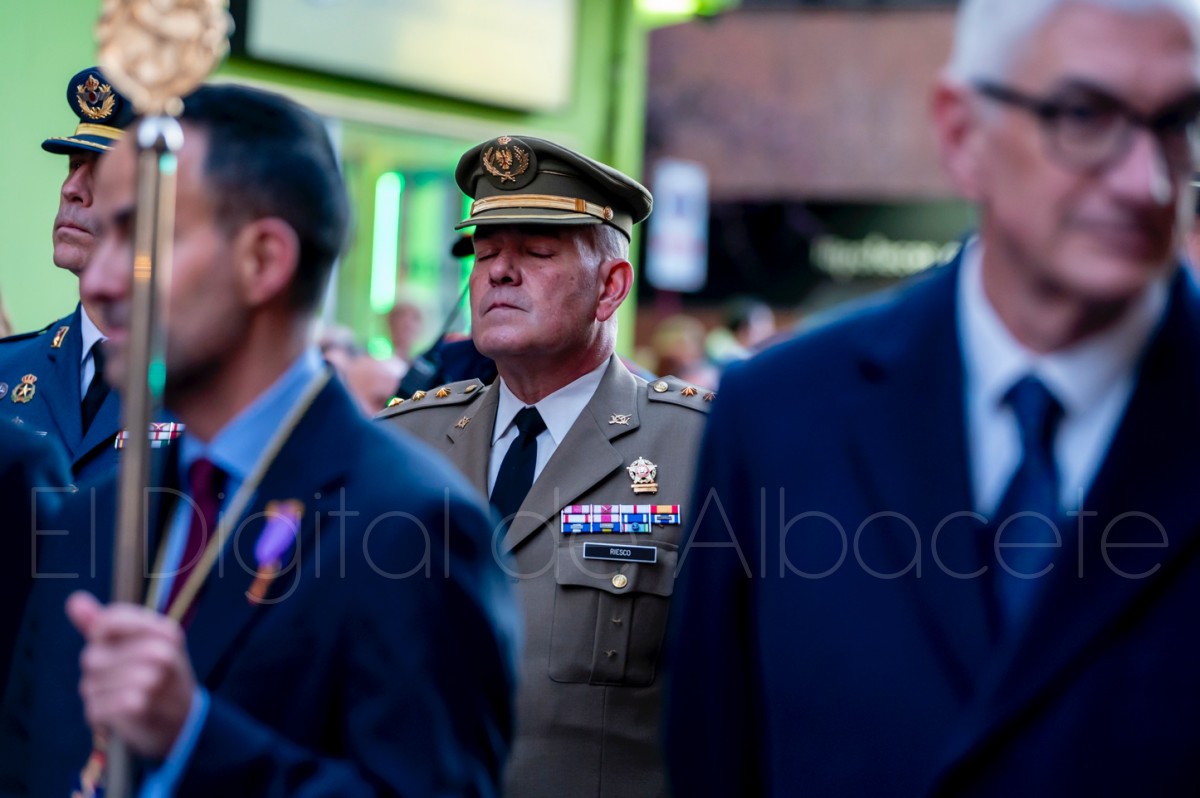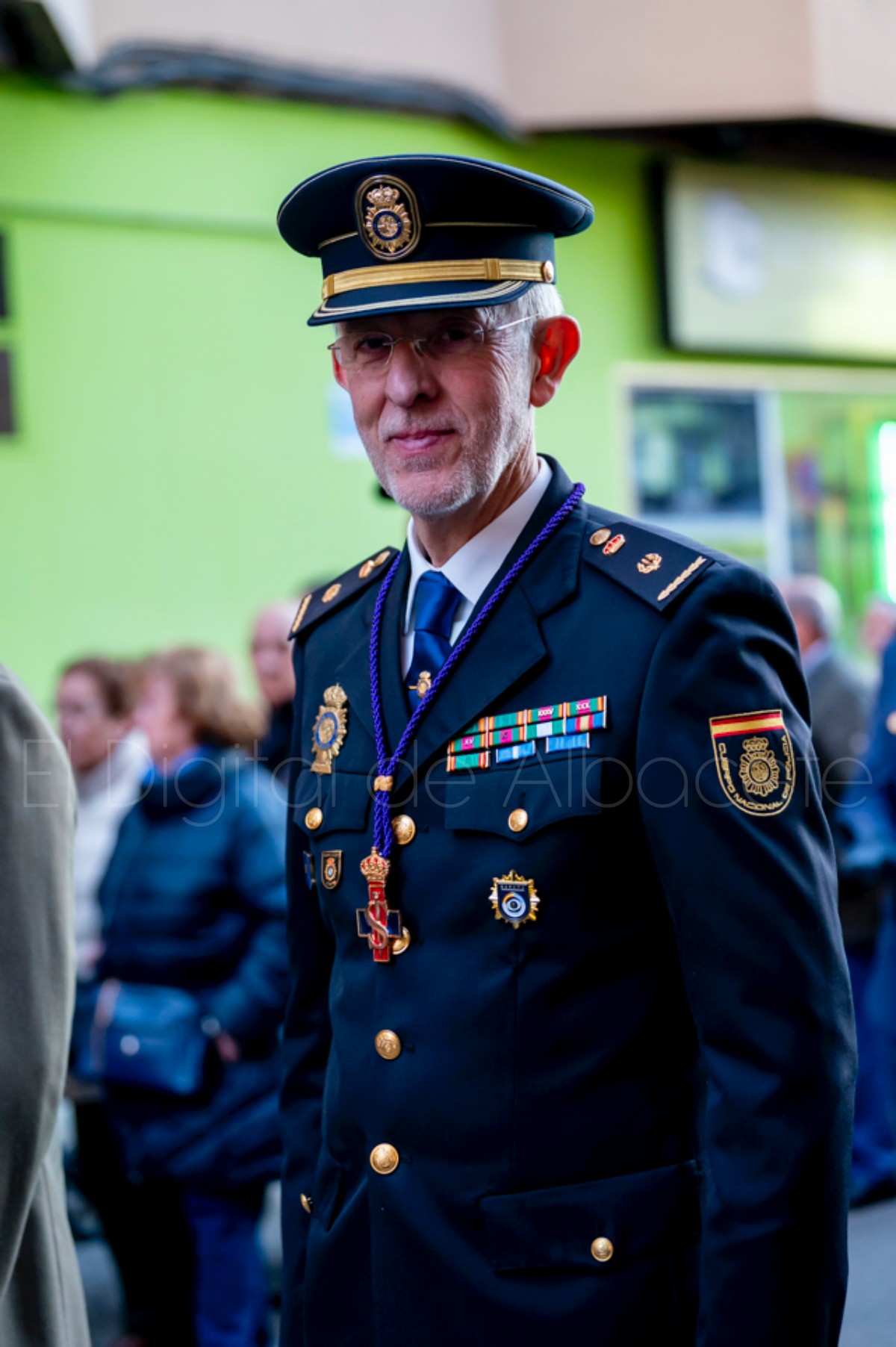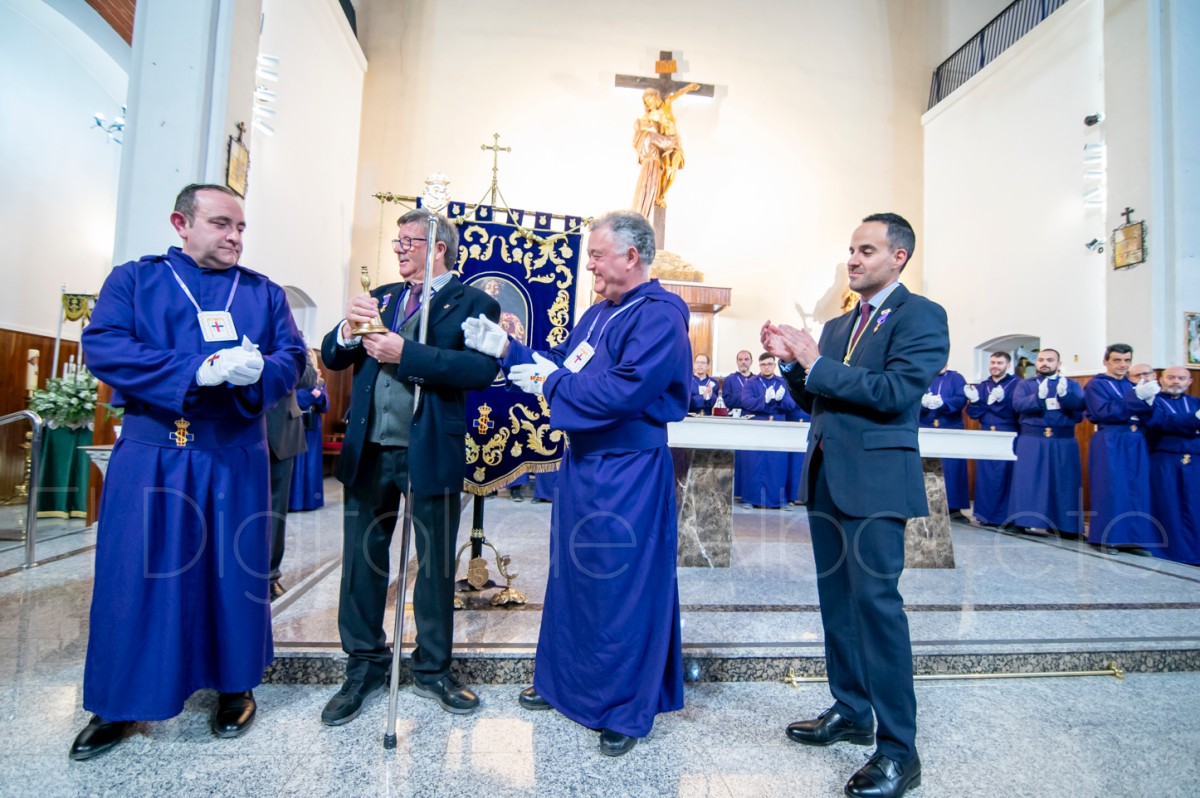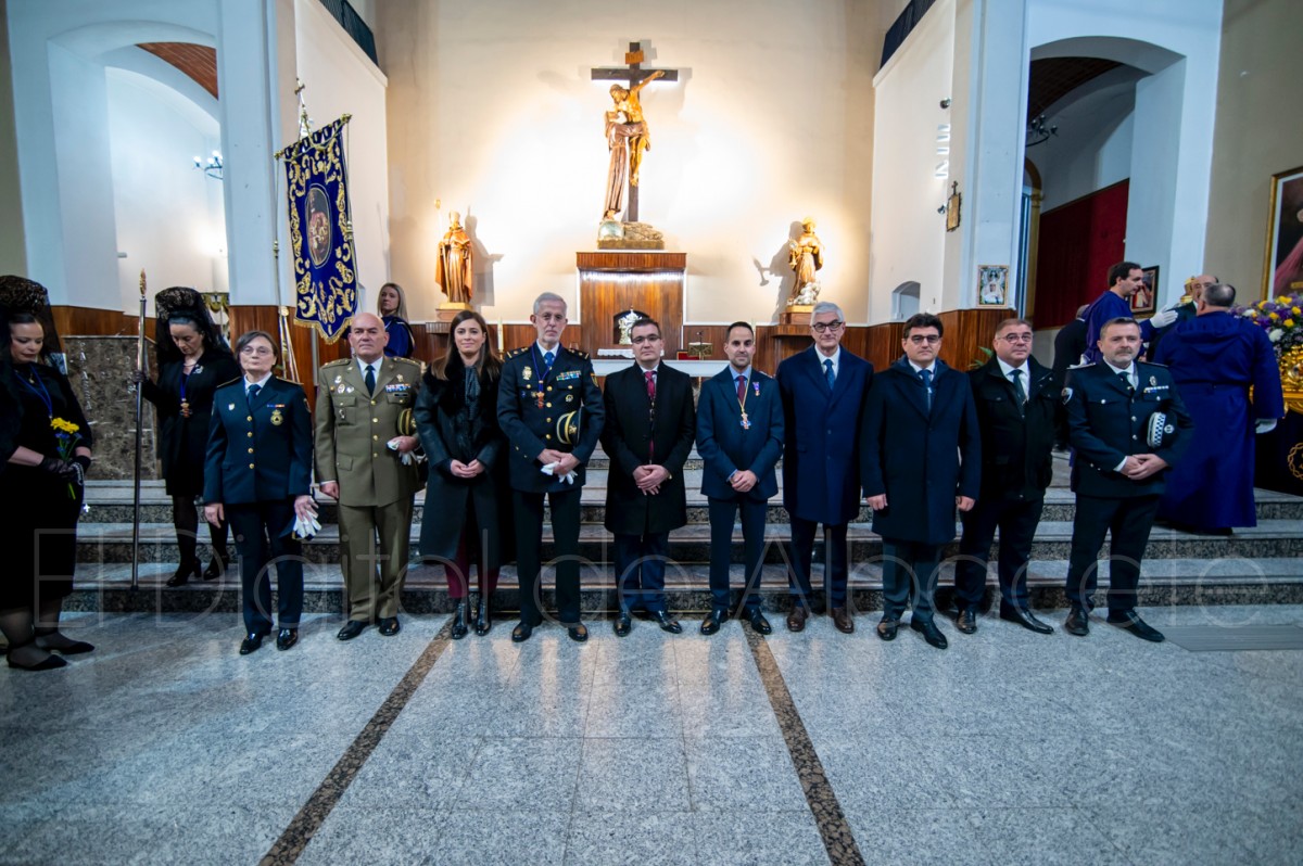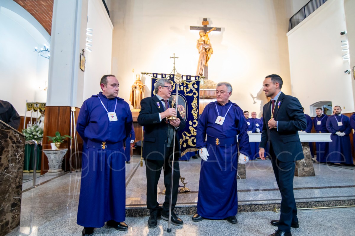 La imagen del Cristo de Medinaceli lucía en su túnica este Jueves Santo un detalle muy especial. En concreto, llevaba prendido un alfiler de la ciudad de Albacete que entregaba a la cofradía el alcalde, Manuel Serrano.