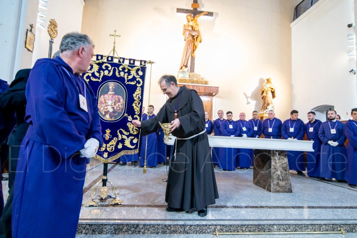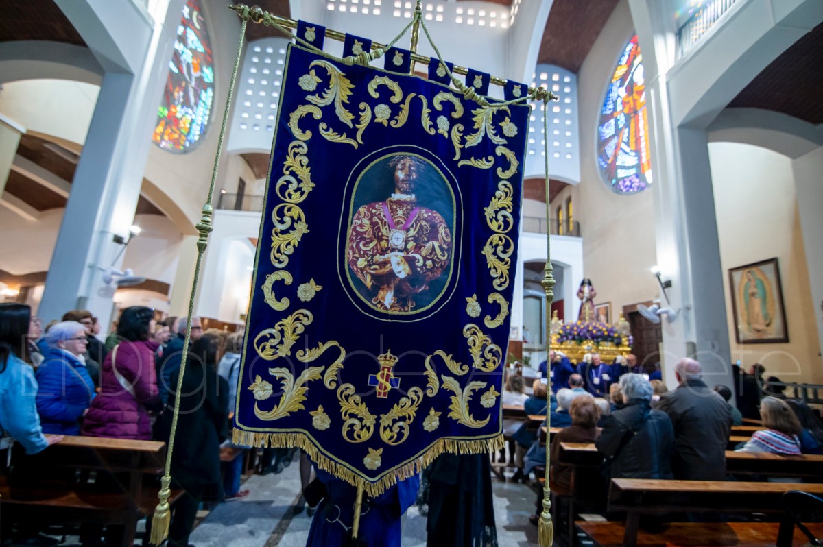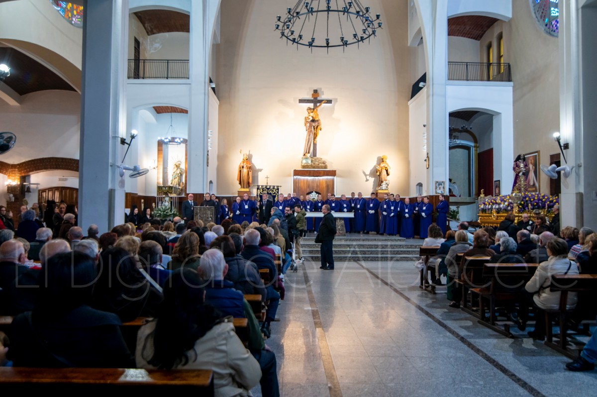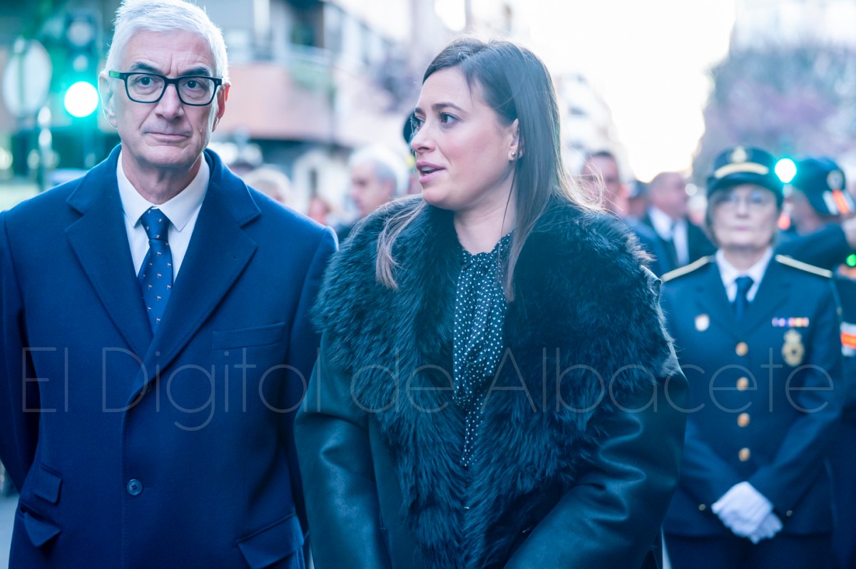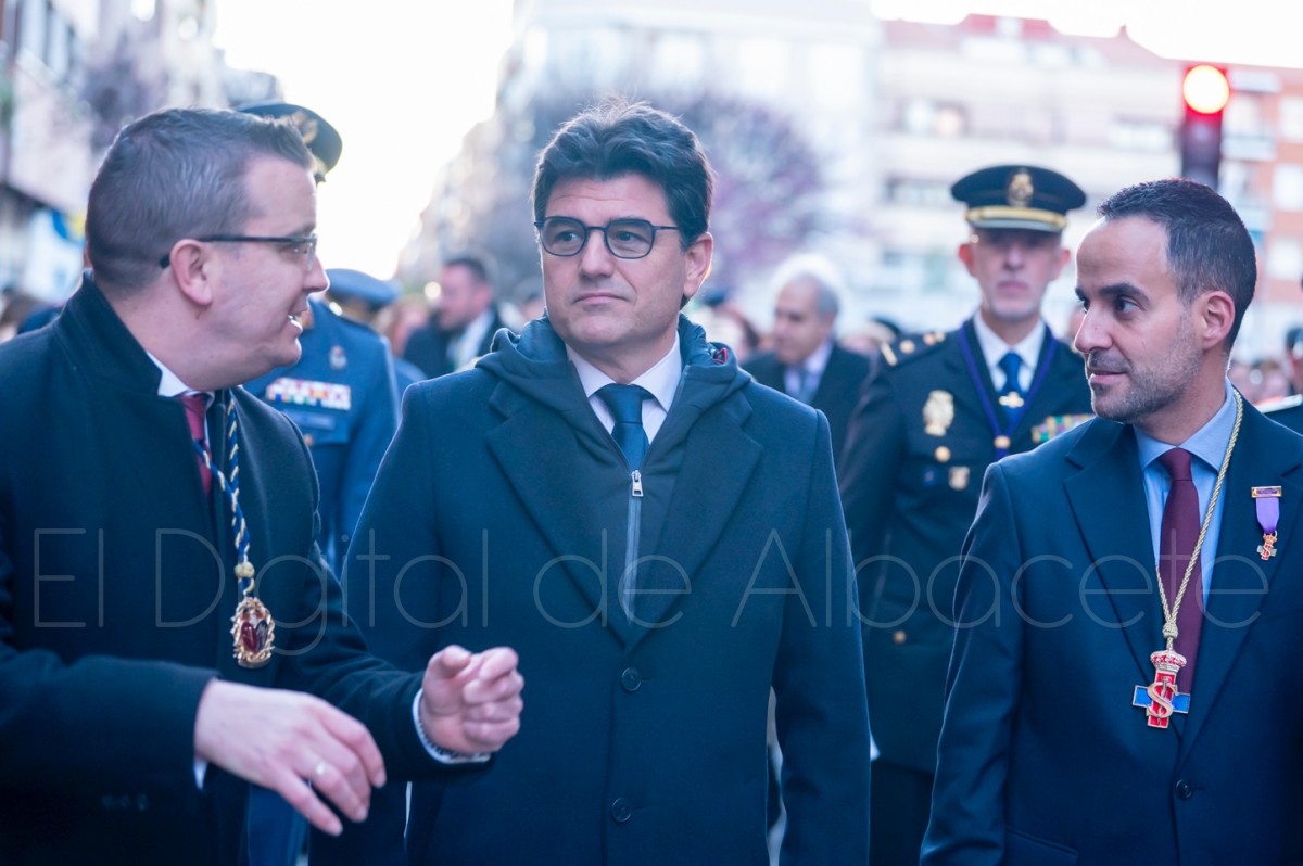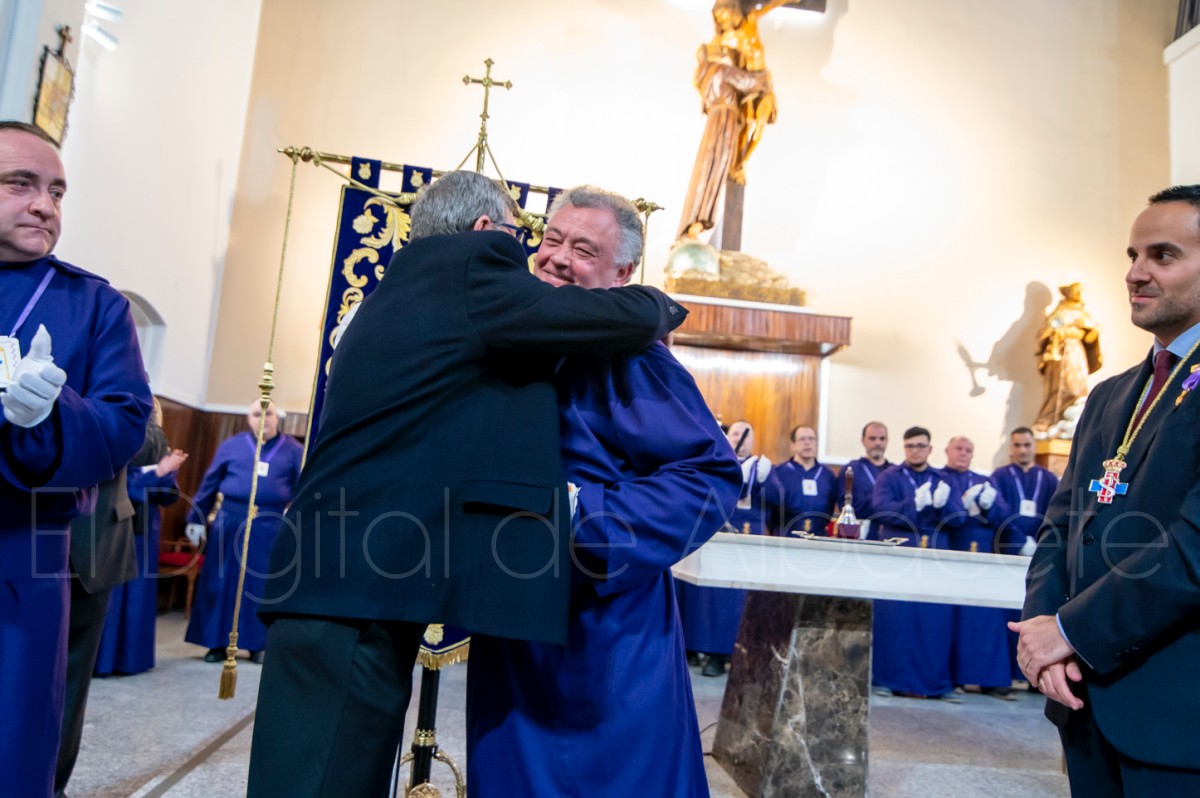 La imagen del Cristo de Medinaceli lucía en su túnica este Jueves Santo un detalle muy especial. En concreto, llevaba prendido un alfiler de la ciudad de Albacete que entregaba a la cofradía el alcalde, Manuel Serrano.