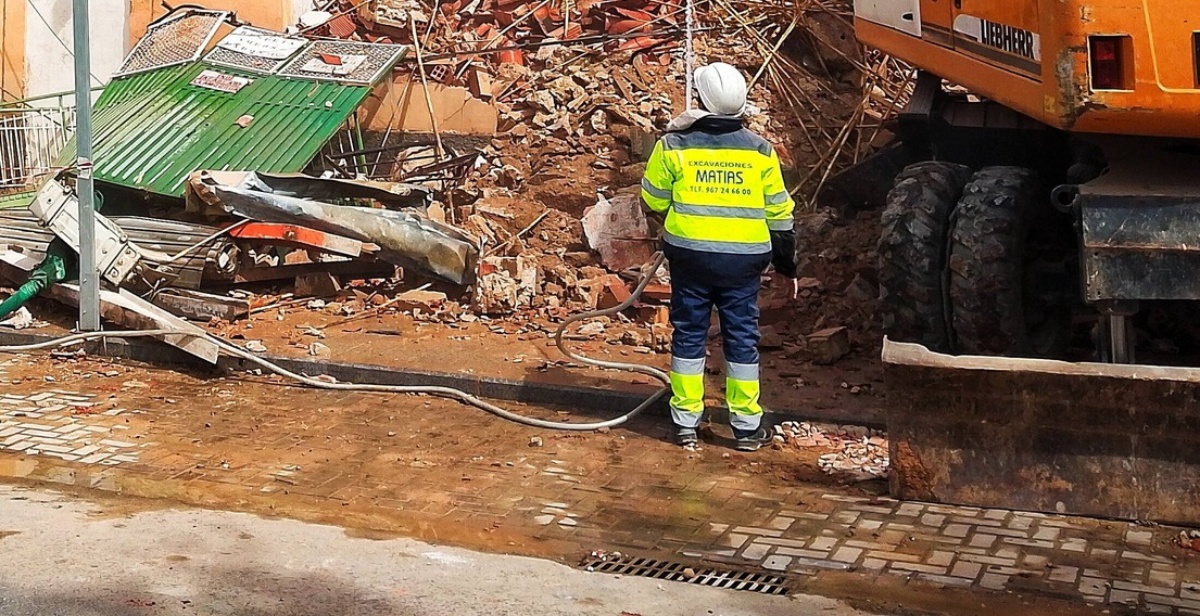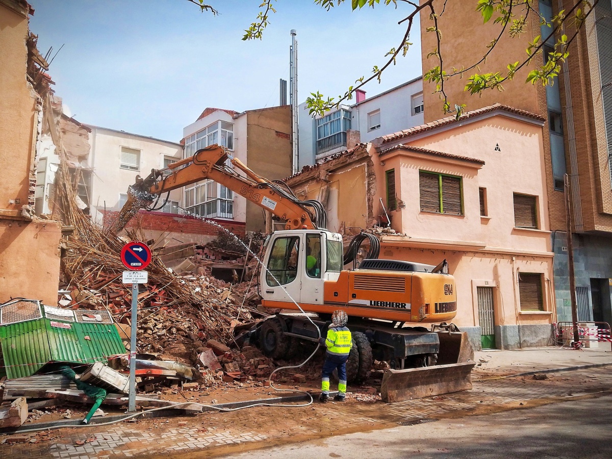 Y es que, el ruido seco de la maquinaria pesada ha irrumpido este martes en la Avenida de los Toreros de Albacete, marcando el inicio de un proceso tan nostálgico como inevitable: la demolición de la que era ya la última edificación antigua que resistía en esta arteria urbana. Situada en los números 8, 10 y 12, frente al Recinto Ferial y al colegio Isabel Bonal, la construcción ha comenzado a desmoronarse bajo la mirada de vecinos y curiosos, poniendo fin a décadas de historia silenciosa.