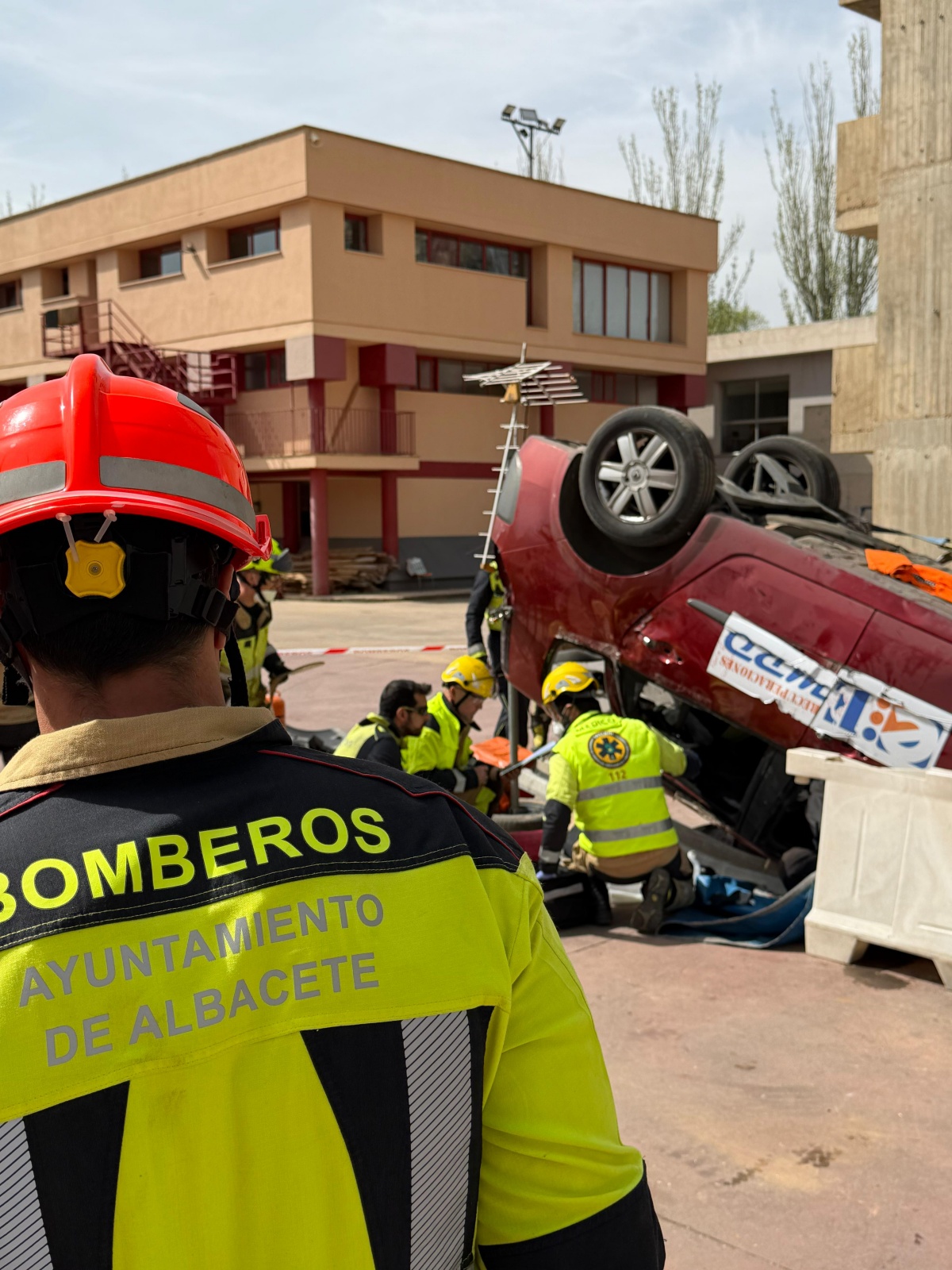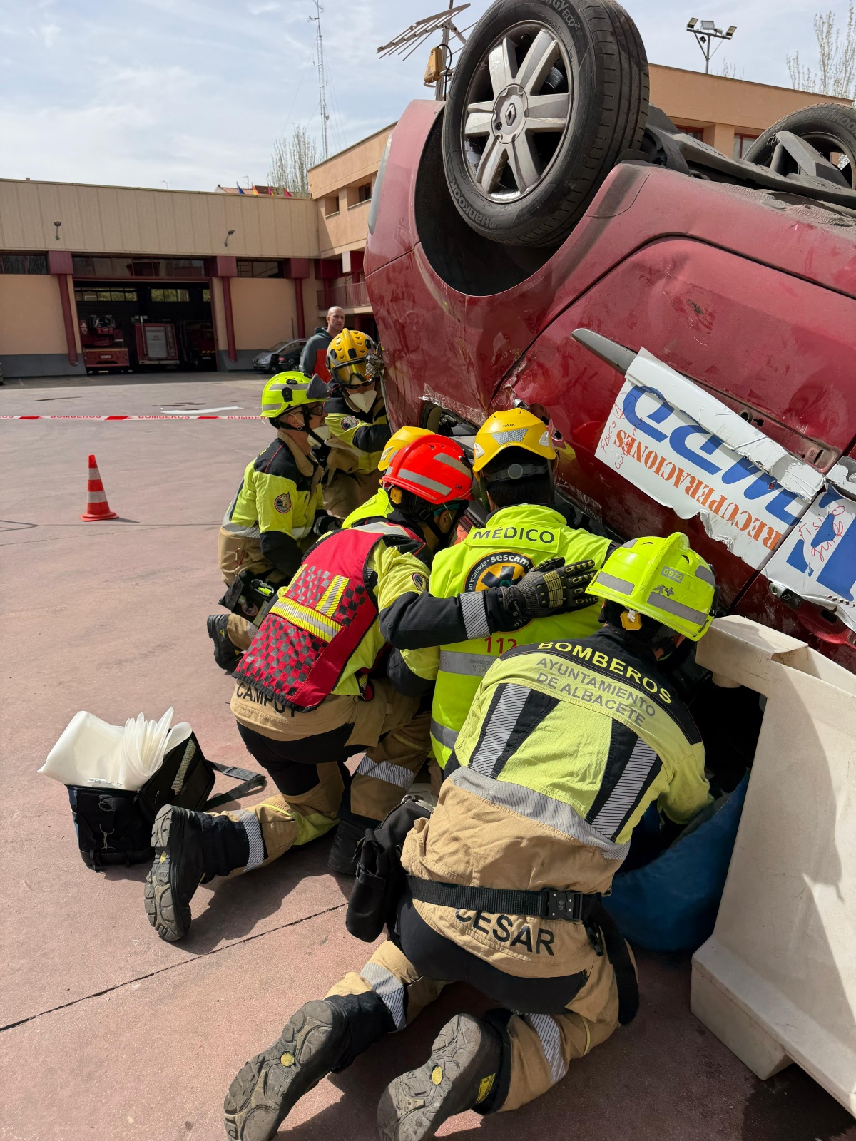 El Servicio Contra Incendios del Ayuntamiento de Albacete ha desarrollado una nueva jornada de formación especializada centrada en el rescate en accidentes de tráfico, una de las intervenciones más complejas y sensibles a las que se enfrentan estos profesionales. La actividad ha reunido a efectivos del grupo de trabajo local junto al Equipo de Rescate del Consorcio de Bomberos de Alicante y personal sanitario, en un ejercicio conjunto que ha permitido simular situaciones reales con alto grado de dificultad.