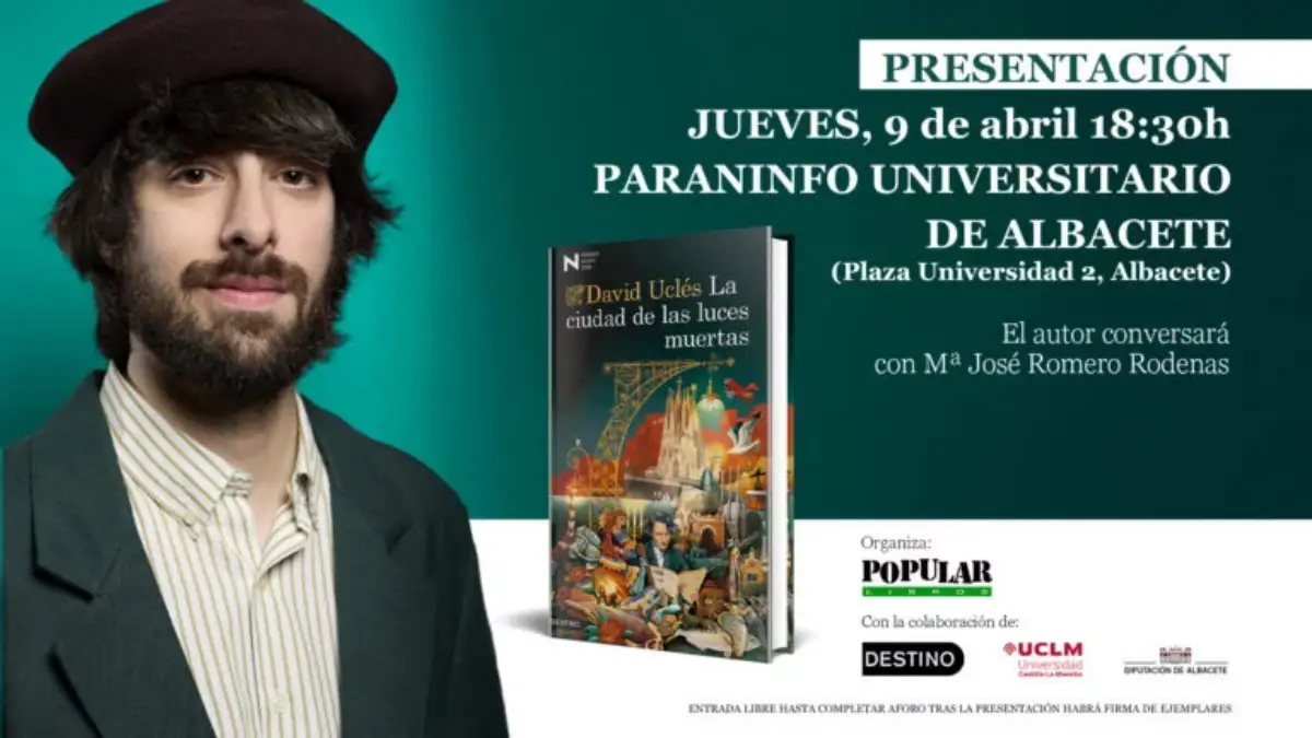 El Paraninfo Universitario de Albacete acogerá este jueves, 9 de abril, a partir de las 18:30 horas la presentación del último libro de David Uclés. ‘La ciudad de las luces muertas’, fue reconocida con el Premio Nadal 2026.