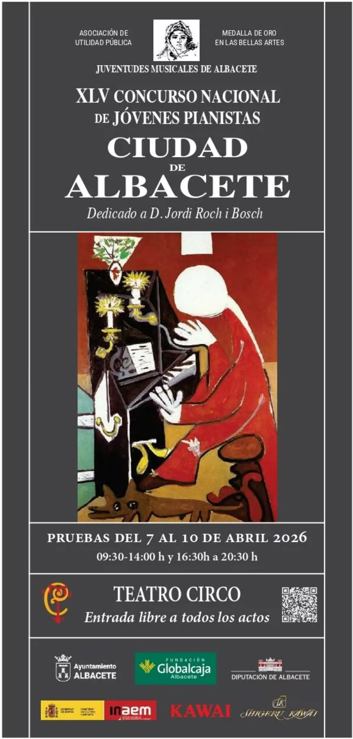 La ciudad de Albacete acoge del 7 al 10 de abril la celebración del XLV Concurso nacional de Jóvenes Pianistas. Una cita que llenará de música el Teatro Circo de Albacete y cuya entrada es totalmente gratuita.