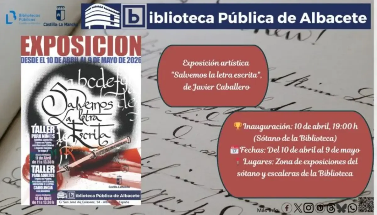 La Biblioteca Pública de Albacete acogerá desde este 10 de abril hasta el próximo 9 de mayo la exposición ‘Salvemos la Letra Escrita’. Una muestra en la que podrás disfrutar del arte de Javier Caballero, donde el artista combina su amor por la cartografía carolingia y las técnicas de pintura del siglo XV.