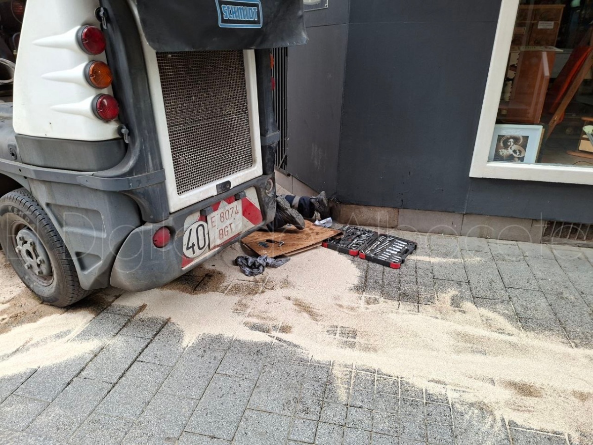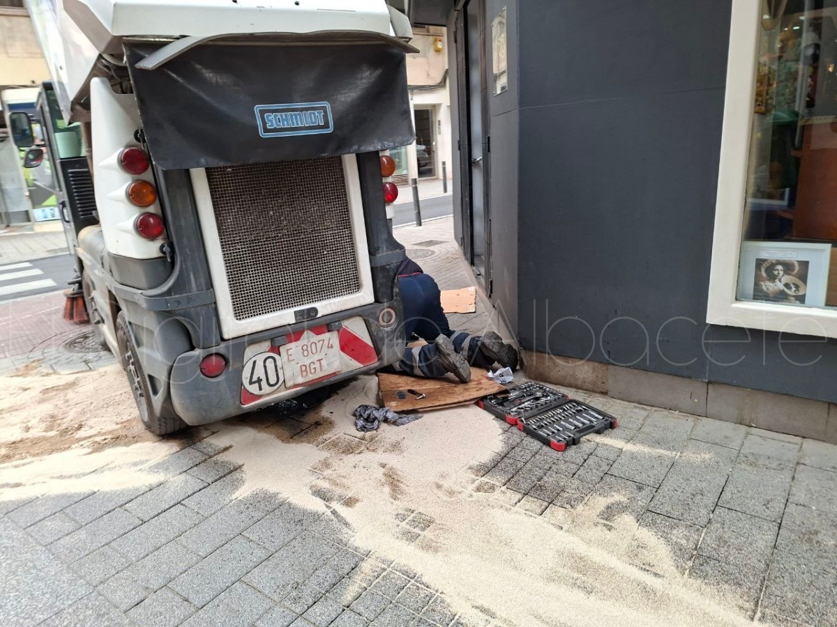 Un mecánico se desplazó hasta la zona para reparar la barredora in situ