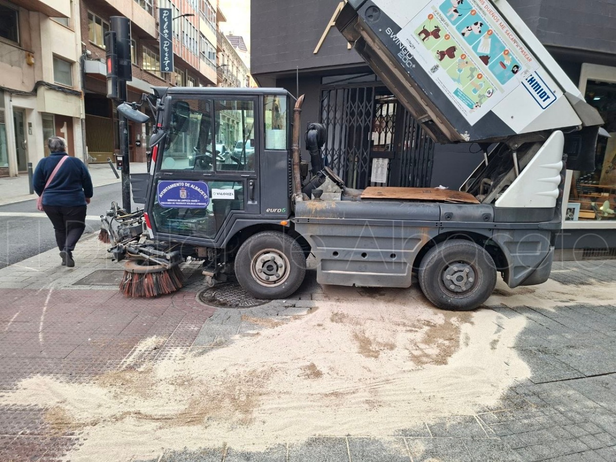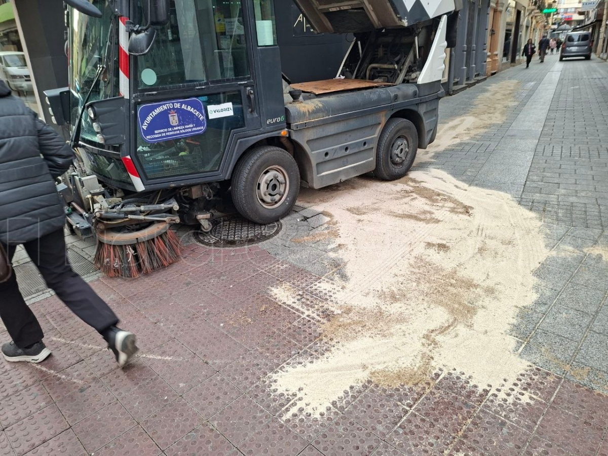 Los hechos se han registrado a primeras horas de la mañana en la confluencia de las calles Zapateros y Feria, en pleno centro de Albacete. Según la información recabada, la barredora circulaba por la calle Zapateros, de carácter peatonal, cuando ha comenzado a perder fluidos de forma repentina, dejando un importante reguero sobre la vía pública.