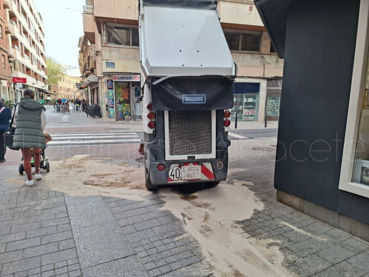 La presencia del vehículo averiado y las tareas para frenar el derrame han llamado la atención de numerosos viandantes en una de las áreas más céntricas y comerciales de la capital albaceteña.