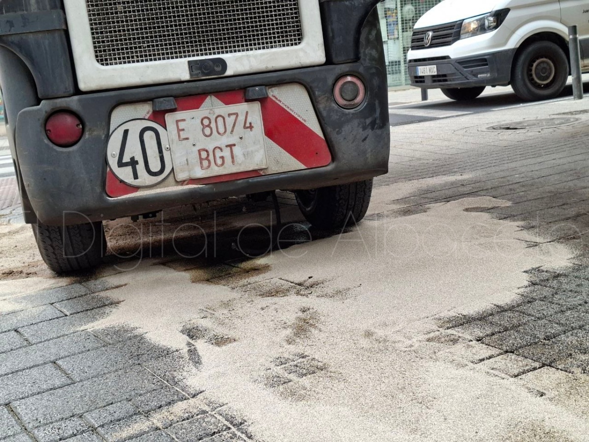 La avería ha provocado un notable derrame de fluidos oleaginosos sobre el pavimento, generando manchas visibles en distintos puntos del entorno y obligando a una rápida actuación para contener la incidencia cuanto antes.