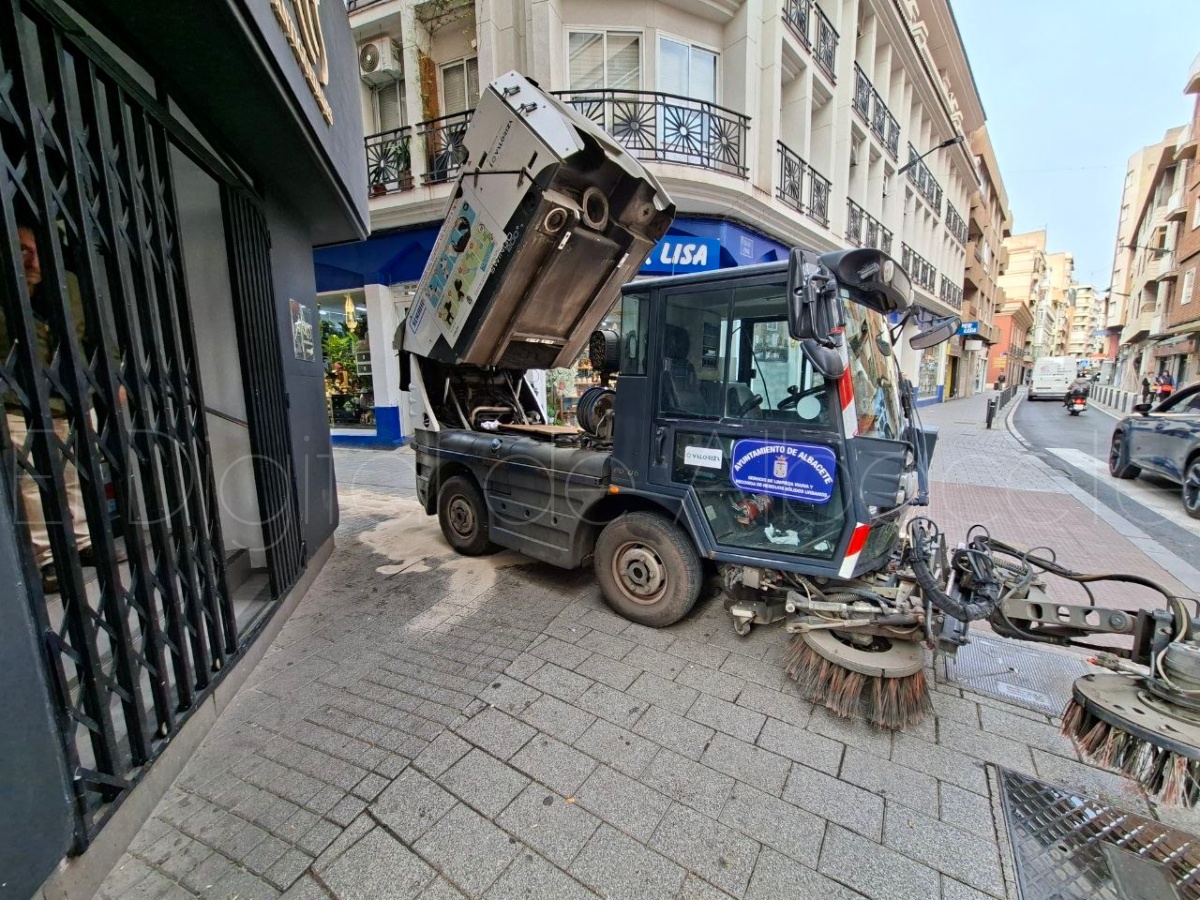 A primera hora de este jueves, 9 de abril, una escena poco habitual ha llamado la atención de vecinos, peatones y comerciantes en una de las zonas más transitadas y céntricas de Albacete. En pleno corazón de la ciudad, y en un punto especialmente concurrido del casco urbano, un imprevisto obligó a intervenir con rapidez para evitar mayores consecuencias sobre el pavimento. El origen del problema estaba en la avería sufrida por una máquina barredora del servicio municipal de limpieza.