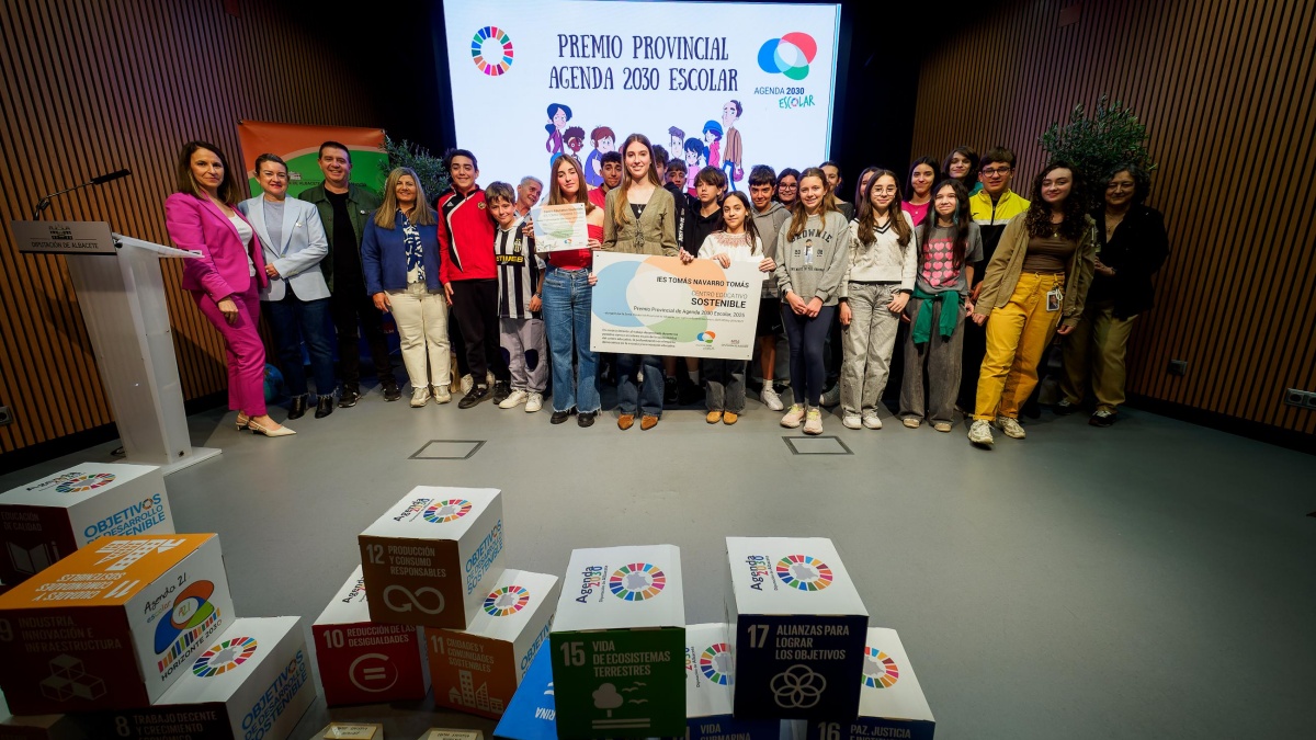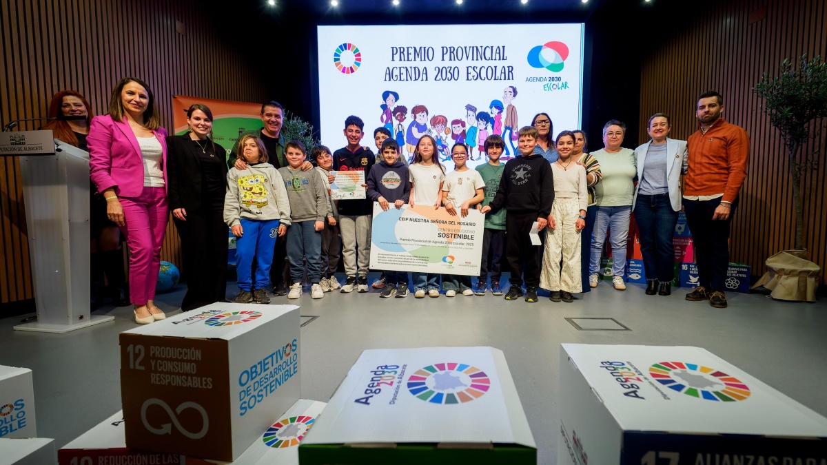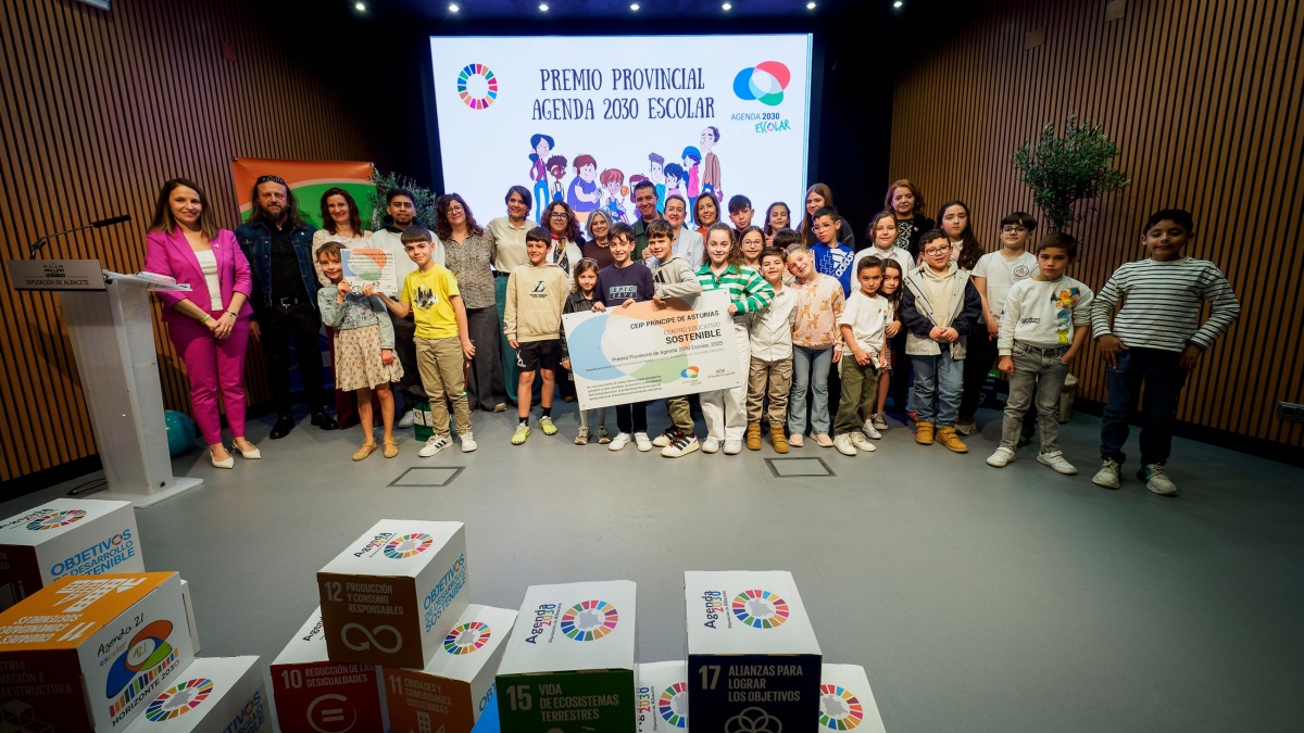El Salón de Actos de la Diputación de Albacete se ha convertido en el escenario de una gran fiesta en el marco de los premios provinciales de la Agenda 2030 Escolar (A2030E), en la que se han dado cita todos sus protagonistas: alumnado, docentes, comunidades educativas y administraciones públicas, cuando se cumple el 18 aniversario de este programa educativo.