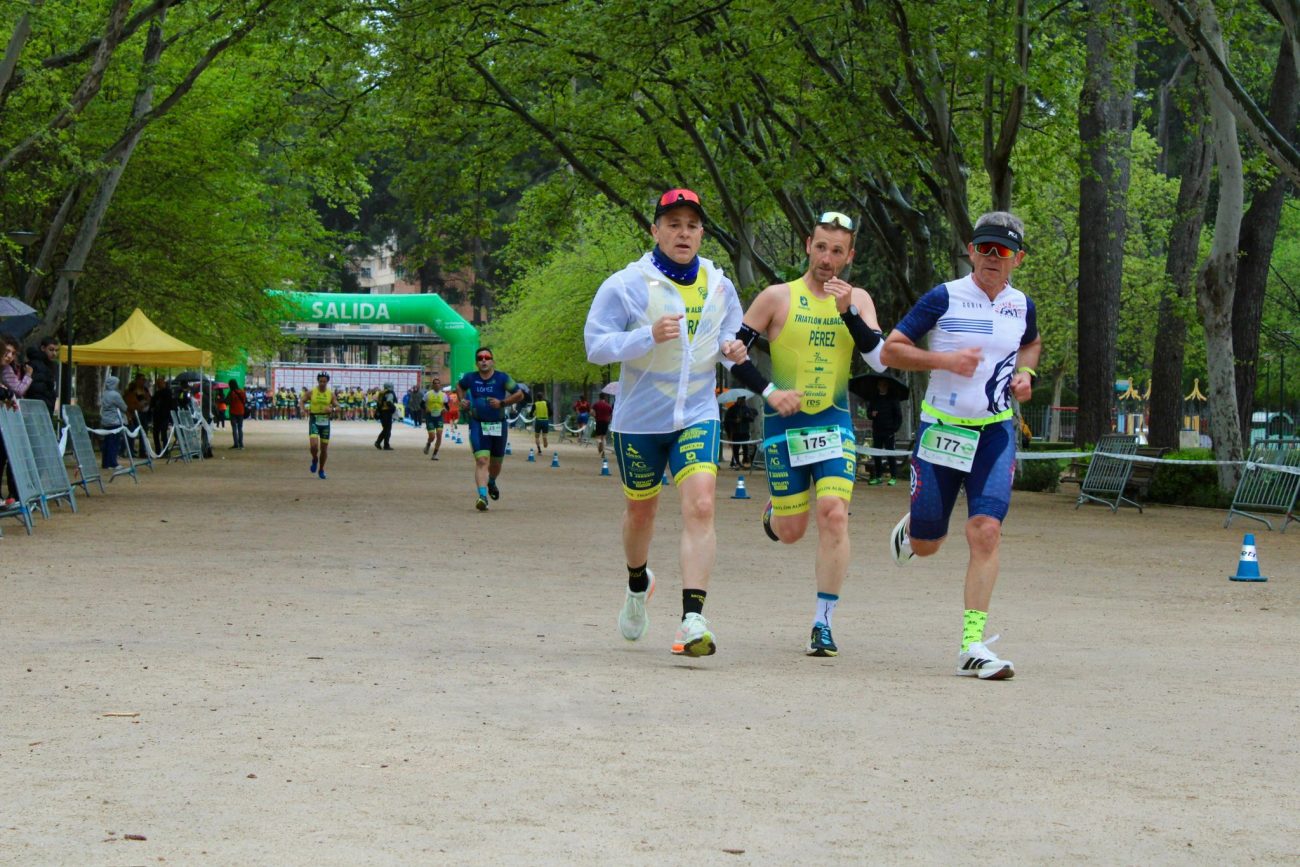 La prueba arrancó bajo una fina lluvia, en un recorrido que comenzó con un primer segmento de 5 kilómetros a pie. En la carrera masculina, Ismael García tomó la delantera desde los primeros compases y llegó a la primera transición con una ventaja de 14 segundos. Sin embargo, el tramo ciclista de 20 kilómetros, condicionado por el asfalto mojado y la precaución en los giros, igualó de nuevo la lucha por el triunfo. Todo se decidió en los últimos 2,5 kilómetros a pie, donde García volvió a marcharse en solitario para cruzar la meta en primera posición con un tiempo de 55:48. Mario Lorente Guijarro fue segundo, a diez segundos, y Guillermo Ferrer Peinado completó el podio.
