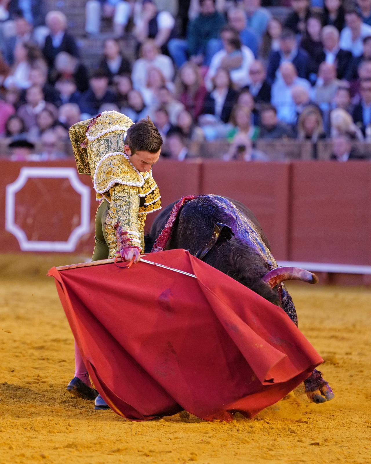 Tan grande era la muleta que entre el soplo del aire y los gañafones del toro hicieron de aquello algo feo. Muchas tandas sin sustancia en las que no se vio del todo cómodo al torero. Voluntad, toda la del mundo, pero en Sevilla, como en las piscinas de Teruel, se valora más la calma que el arrojo. El viento le disculpa, pero puede y debe mucho más porque tiene grandes condiciones para funcionar en esto. No mató bien y se diluyó su ilusión mientras los sevillanos se iban a su casa camino de la preferia.