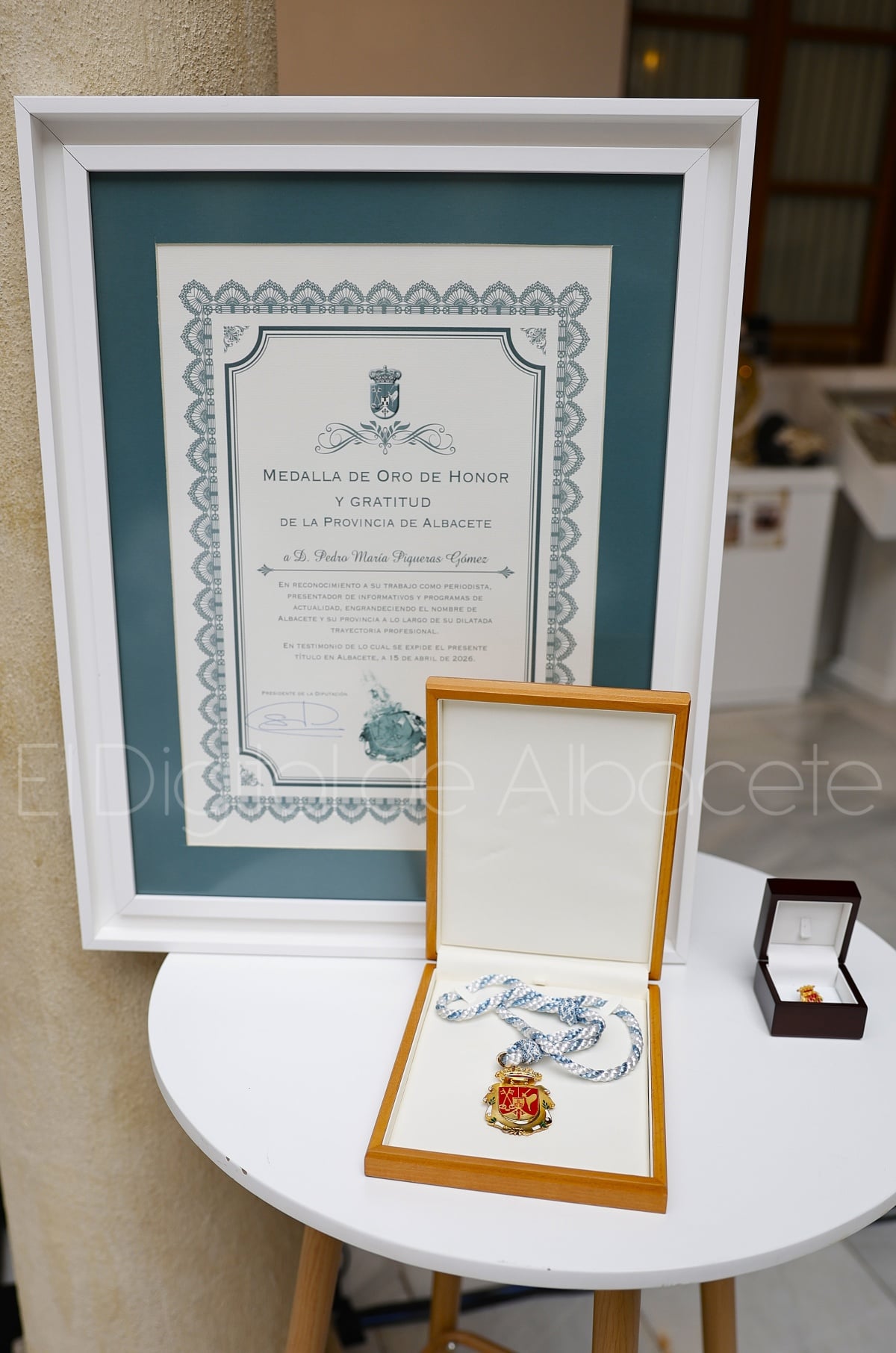 La Diputación de Albacete otorgaba al periodista albaceteño Pedro Piqueras la Medalla de Oro, de Honor y Gratitud de la provincia. Con esta distinción, la institución provincial ha querido rendir homenaje a una trayectoria ejemplar y devolver, en nombre de toda la provincia, parte del cariño y reconocimiento que el periodista ha ofrecido durante décadas.