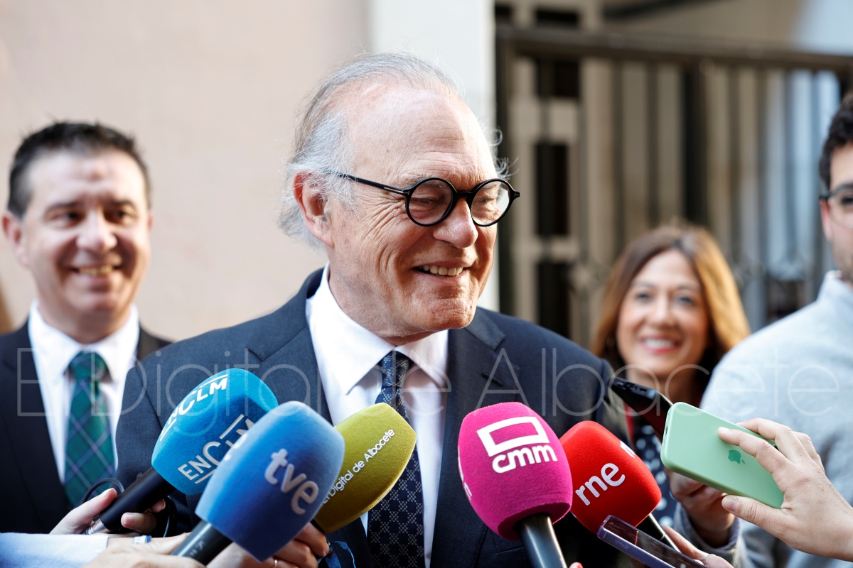 En este día tan especial, Pedro Piqueras no dudaba en fotografiarse con los albaceteños que querían acompañarle con motivo de la entrega de esta distinción por parte de la Diputación de Albacete. A su llegada al Claustro de la Asunción se detenía ante los medios de comunicación para mostrar su agradecimiento por este reconocimiento y con quienes compartía un breve consejo para quienes a día de hoy se dedican a esta profesión. “Creo que la gente debe fiarse de los que son periodistas serios”, incidiendo en que “el rigor existe y todos somos capaces de hacer las cosas con rigor”.