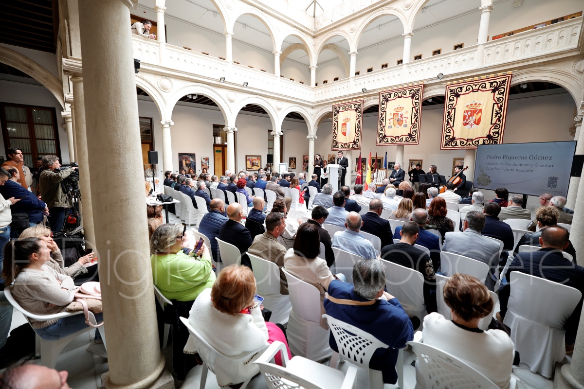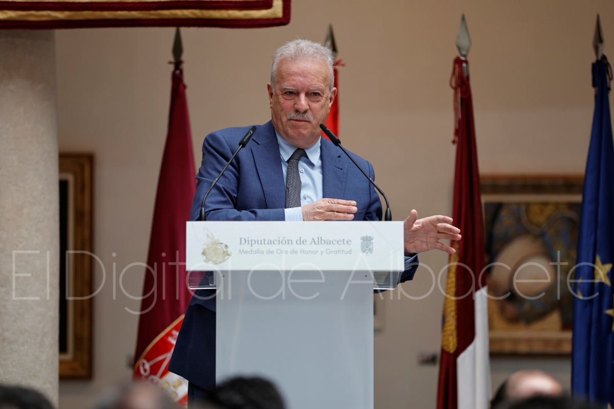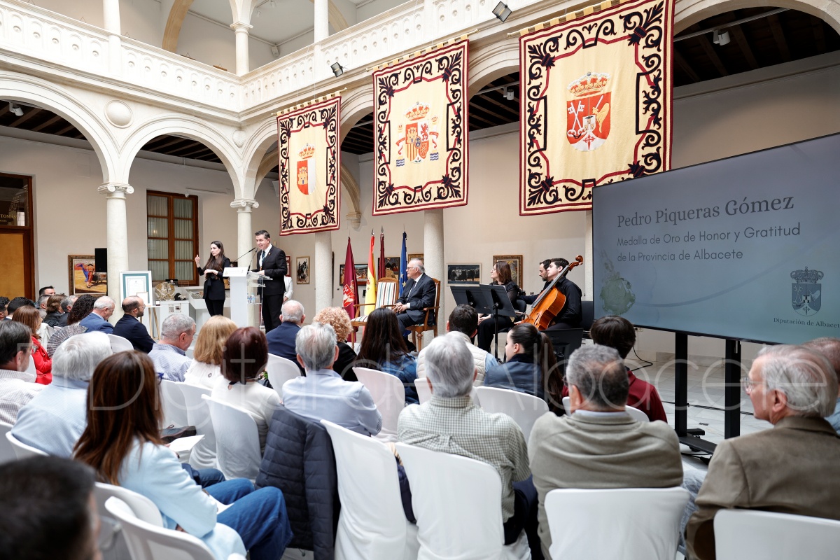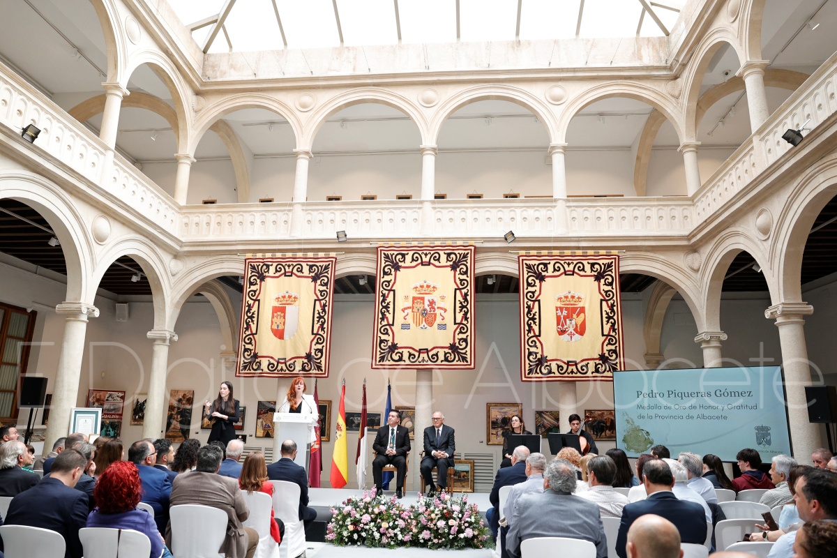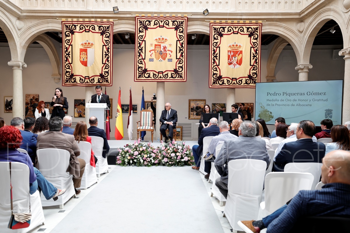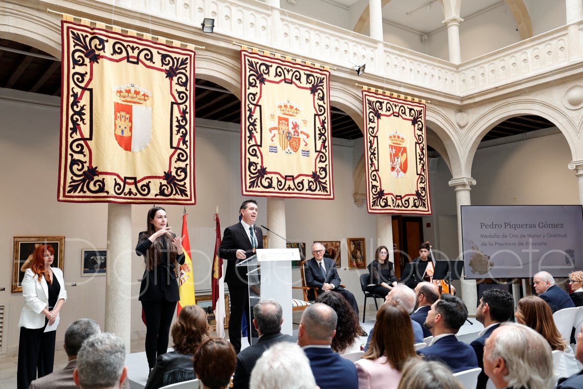 Una amplia radiografía de quién es Pedro Piqueras por la que la Diputación de Albacete otorgaba esta medalla “que es de Oro, porque representa una forma de hacer las cosas bien durante mucho tiempo y sin atajos”, recordaba Santiago Cabañero. Pero además esta distinción “es de Honor por lo que sentimos nosotros cuando te oímos decir soy de Albacete, y es de gratitud, porque esta tierra, cuando alguien le da tal uso como tú nos has dado, intenta devolverlo, aunque siempre sepamos que nunca será suficiente”, expresaba el presidente de la institución provincial.
