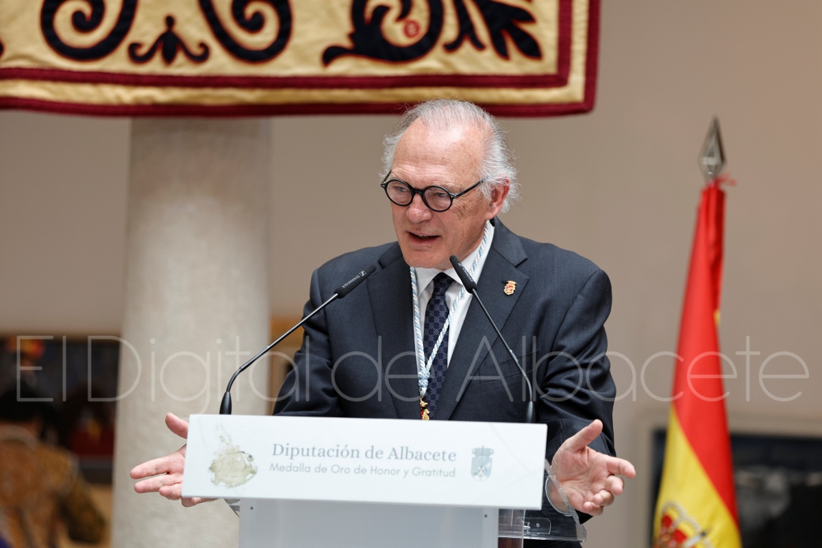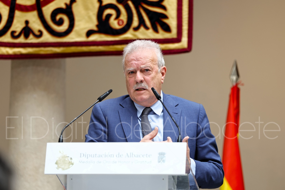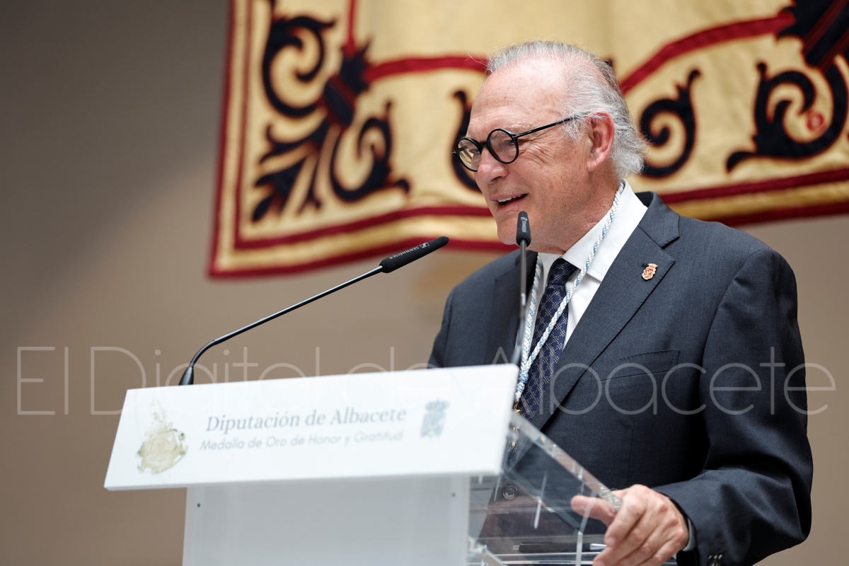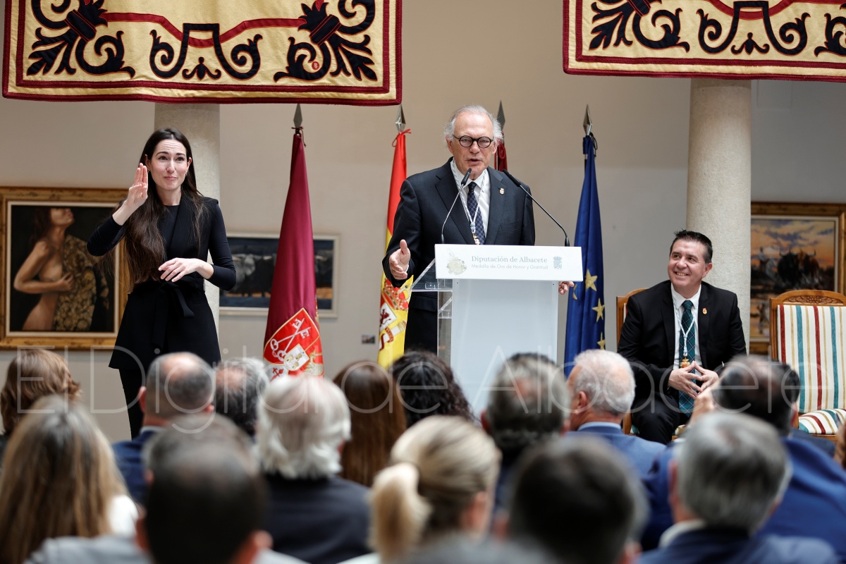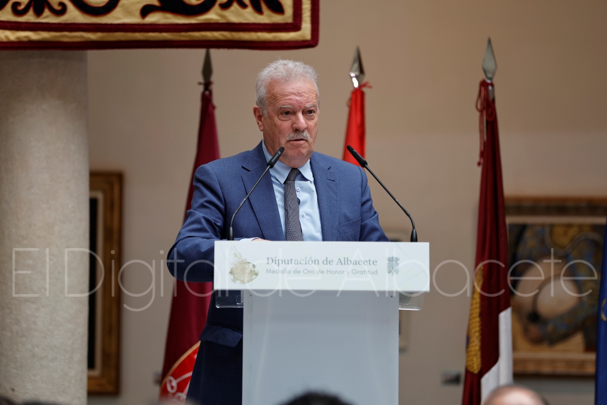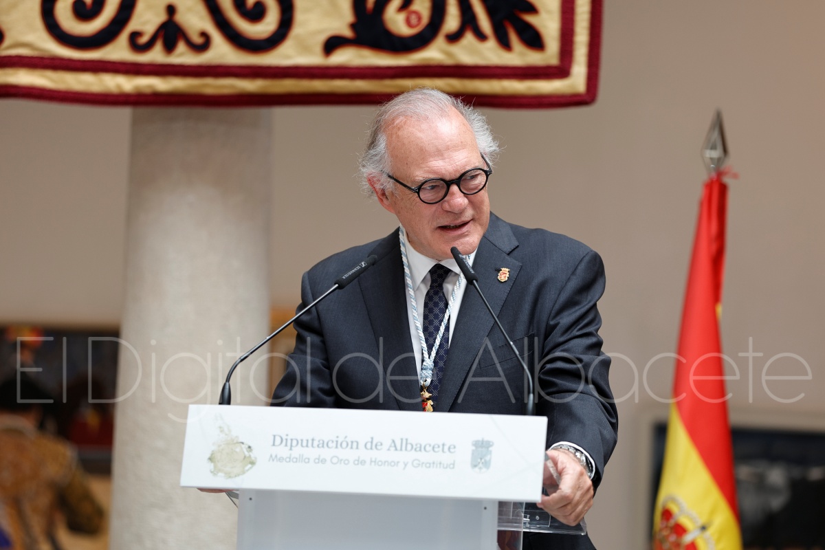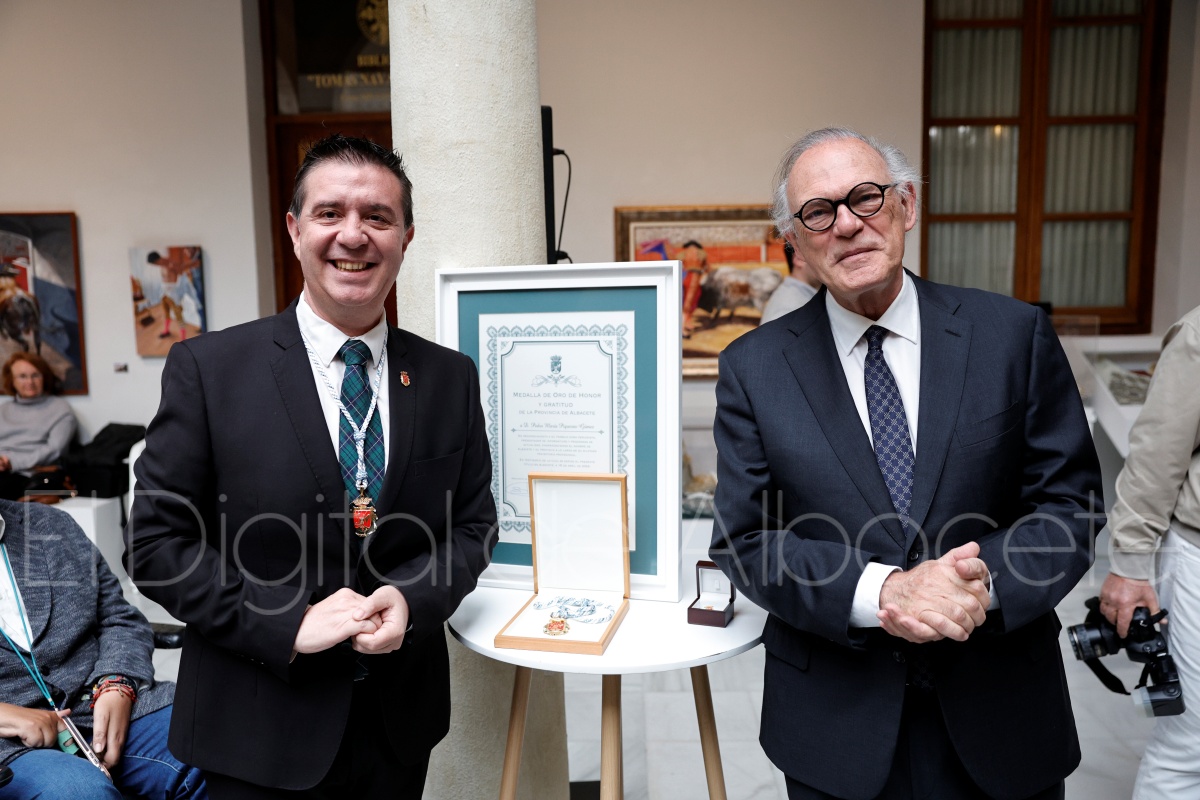 Una amplia radiografía de quién es Pedro Piqueras por la que la Diputación de Albacete otorgaba esta medalla “que es de Oro, porque representa una forma de hacer las cosas bien durante mucho tiempo y sin atajos”, recordaba Santiago Cabañero. Pero además esta distinción “es de Honor por lo que sentimos nosotros cuando te oímos decir soy de Albacete, y es de gratitud, porque esta tierra, cuando alguien le da tal uso como tú nos has dado, intenta devolverlo, aunque siempre sepamos que nunca será suficiente”, expresaba el presidente de la institución provincial.