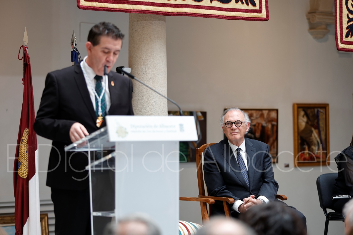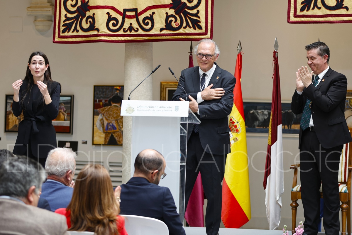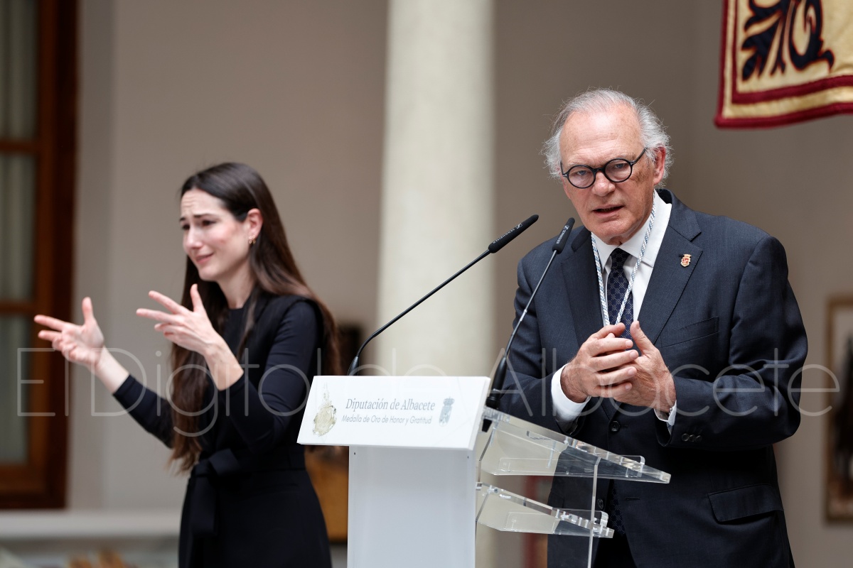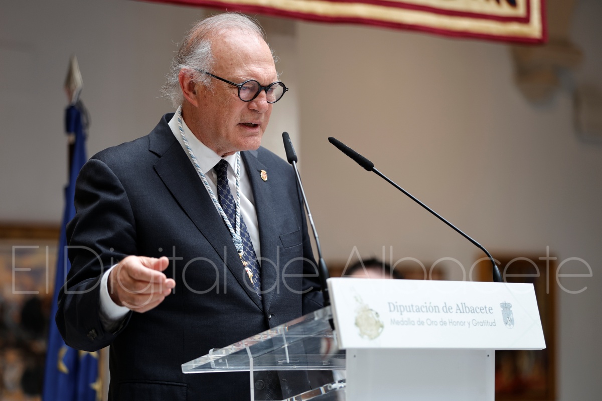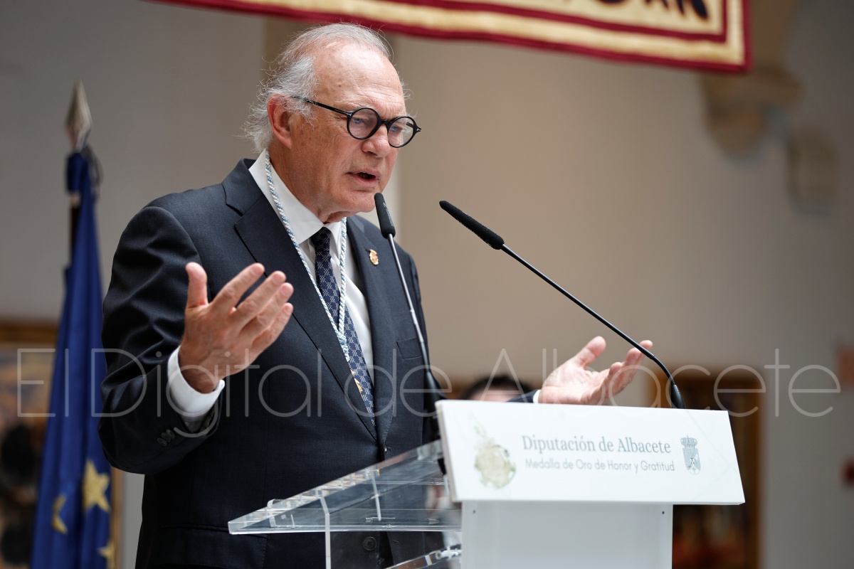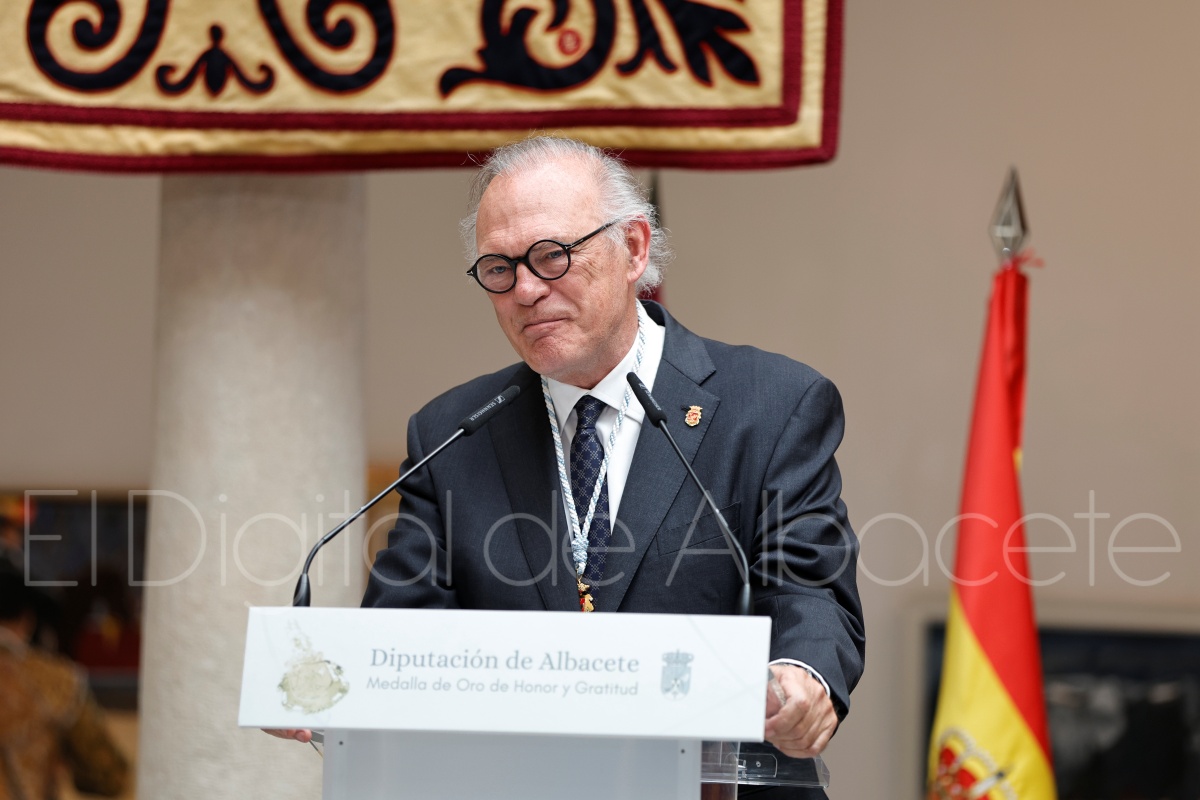 Una amplia radiografía de quién es Pedro Piqueras por la que la Diputación de Albacete otorgaba esta medalla “que es de Oro, porque representa una forma de hacer las cosas bien durante mucho tiempo y sin atajos”, recordaba Santiago Cabañero. Pero además esta distinción “es de Honor por lo que sentimos nosotros cuando te oímos decir soy de Albacete, y es de gratitud, porque esta tierra, cuando alguien le da tal uso como tú nos has dado, intenta devolverlo, aunque siempre sepamos que nunca será suficiente”, expresaba el presidente de la institución provincial.