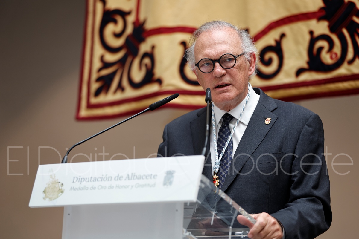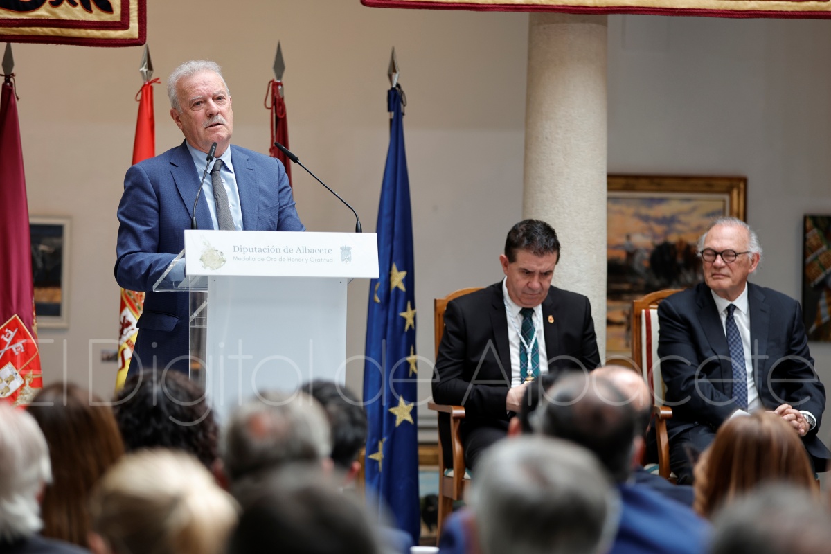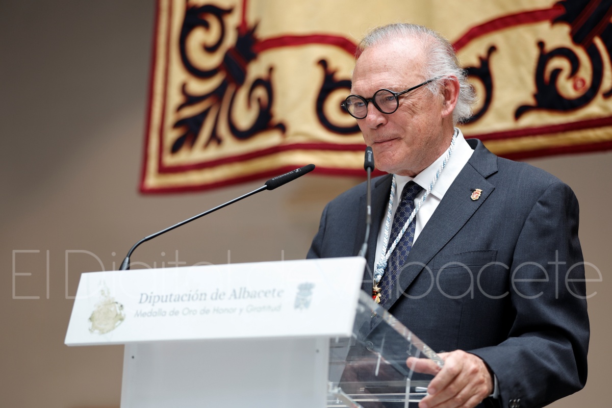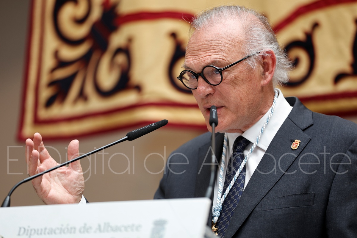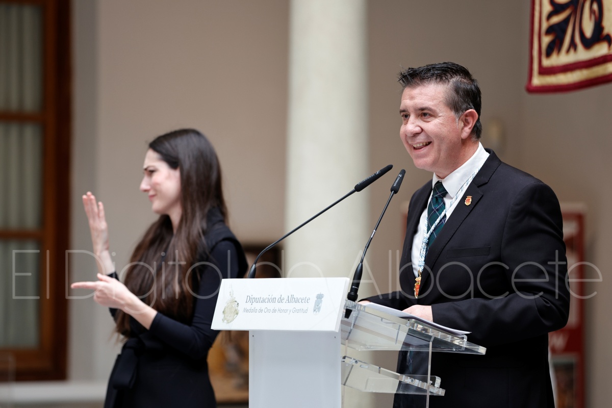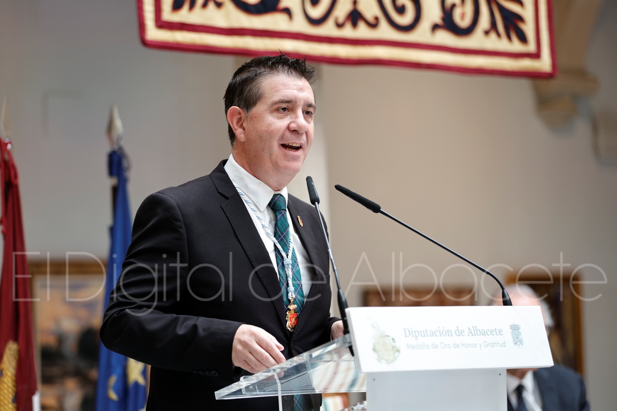Una amplia radiografía de quién es Pedro Piqueras por la que la Diputación de Albacete otorgaba esta medalla “que es de Oro, porque representa una forma de hacer las cosas bien durante mucho tiempo y sin atajos”, recordaba Santiago Cabañero. Pero además esta distinción “es de Honor por lo que sentimos nosotros cuando te oímos decir soy de Albacete, y es de gratitud, porque esta tierra, cuando alguien le da tal uso como tú nos has dado, intenta devolverlo, aunque siempre sepamos que nunca será suficiente”, expresaba el presidente de la institución provincial.