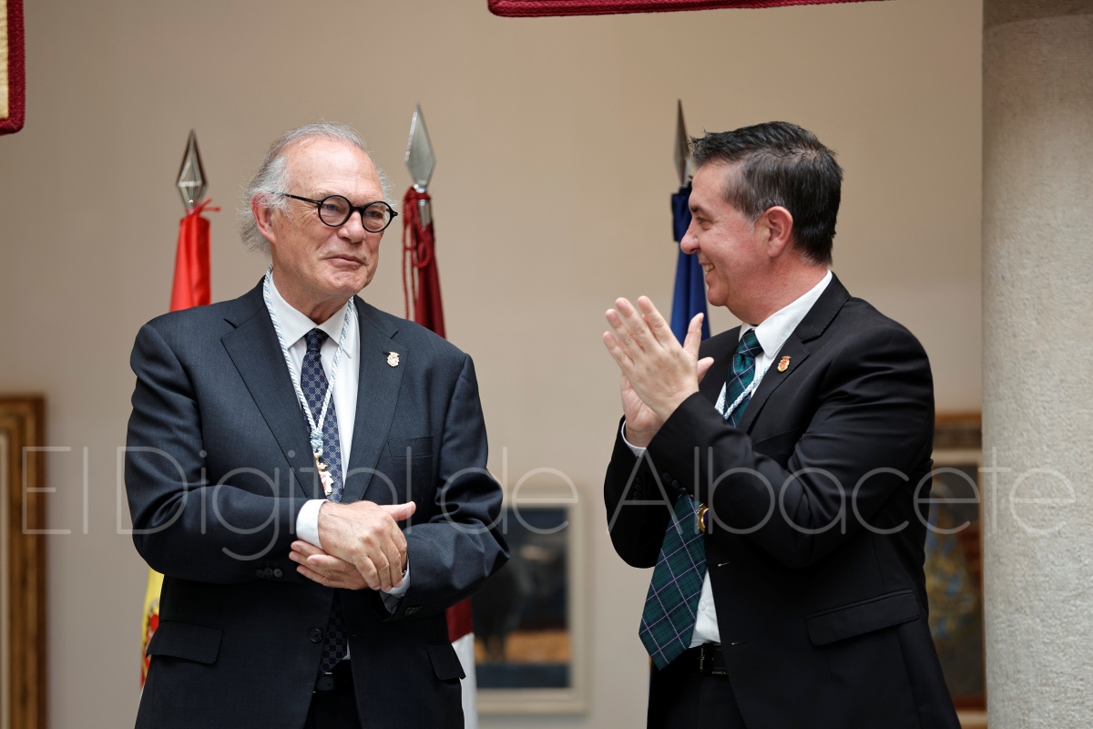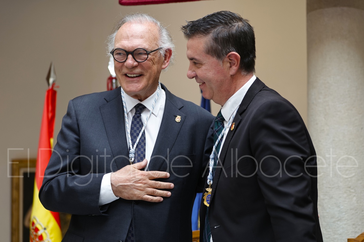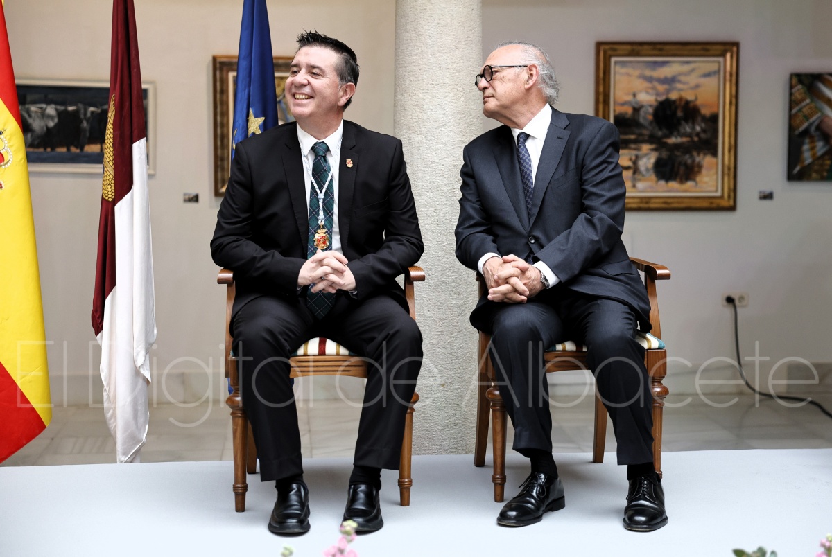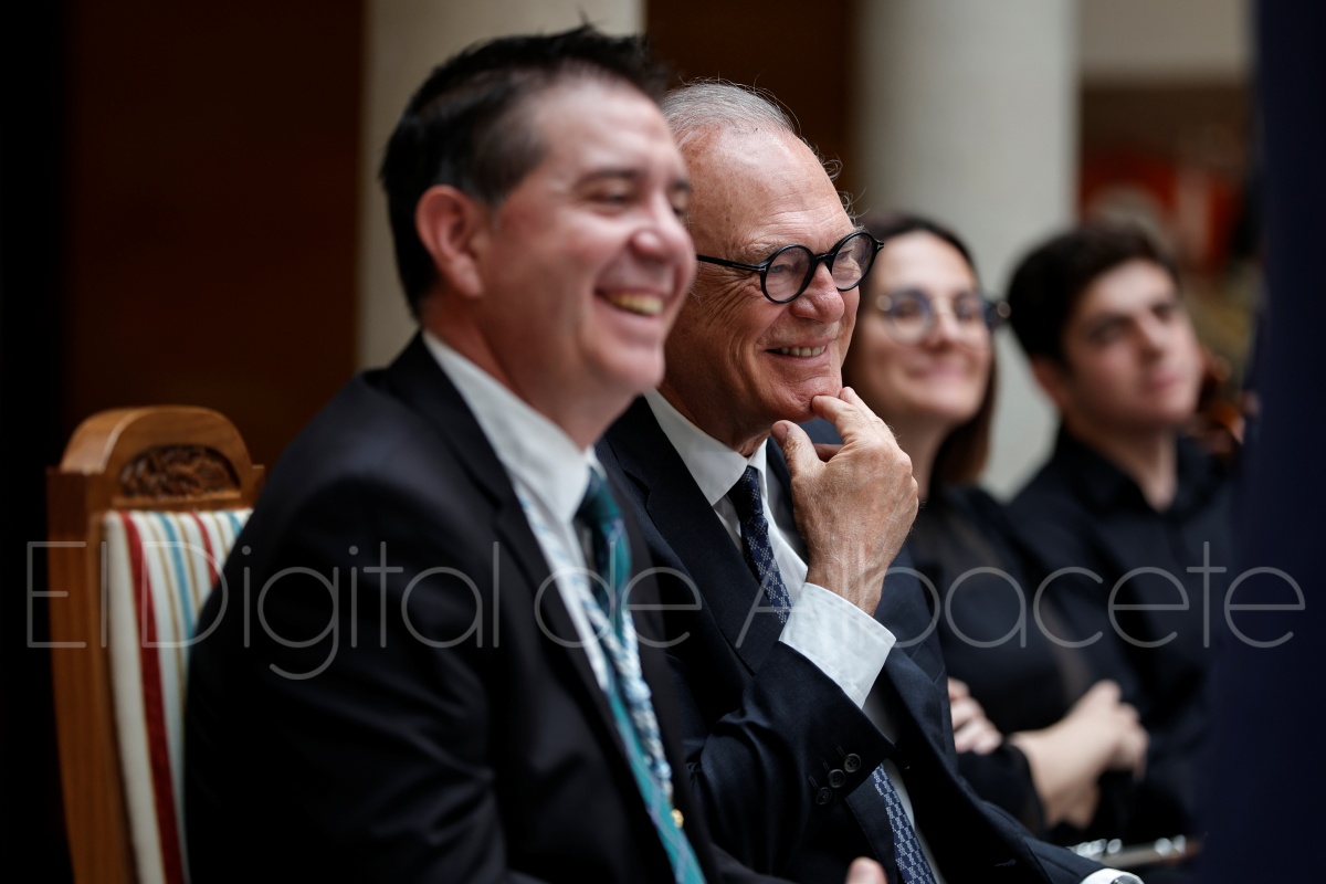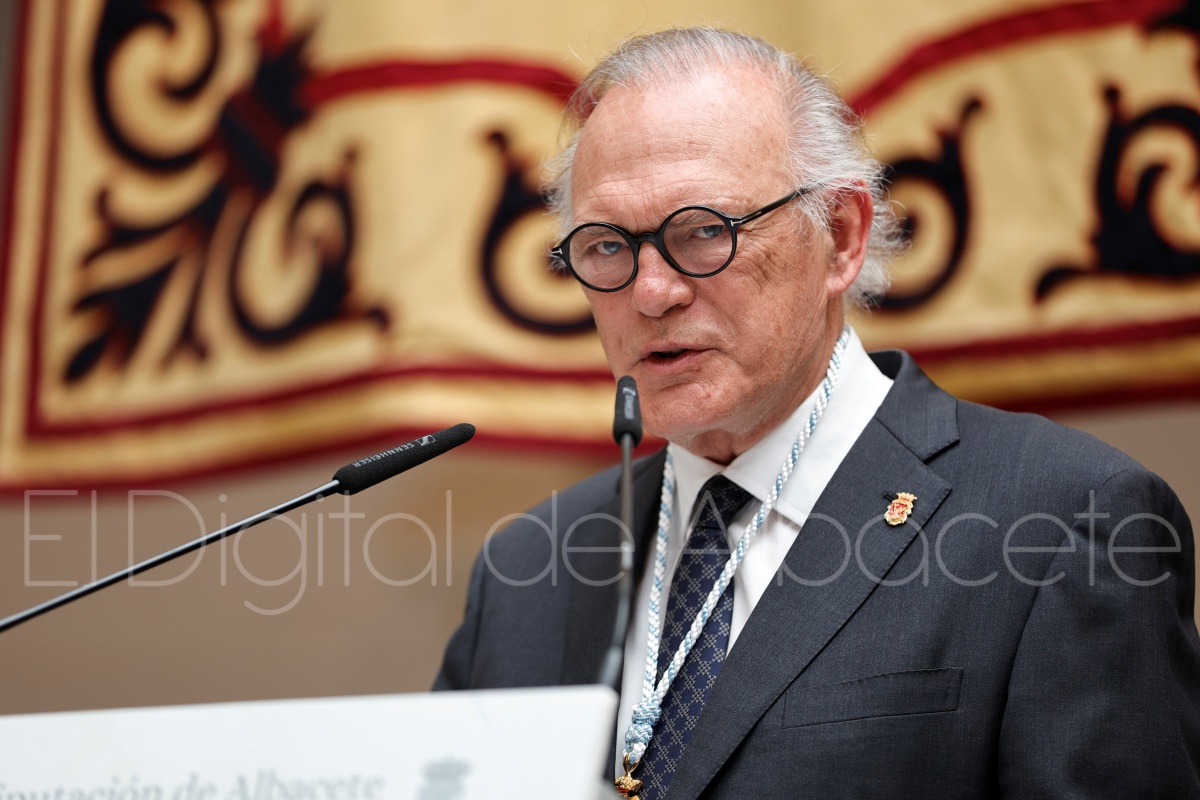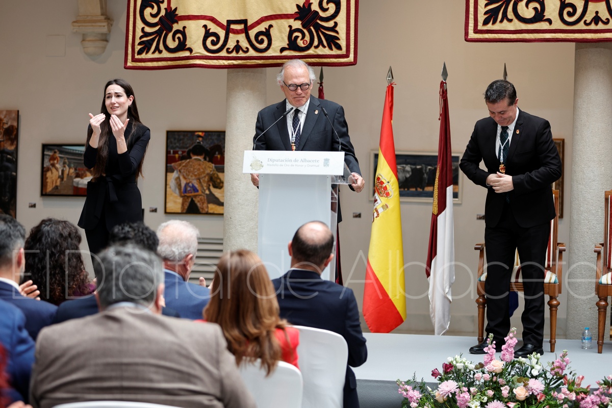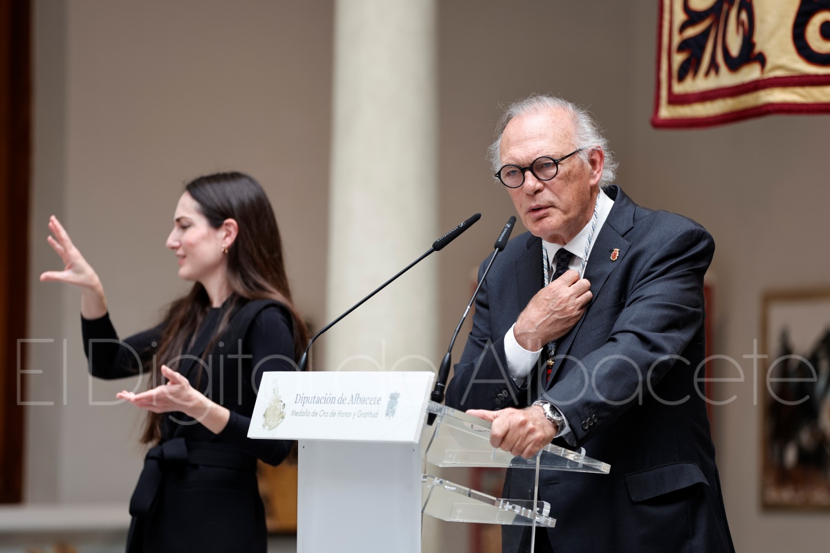 Una amplia radiografía de quién es Pedro Piqueras por la que la Diputación de Albacete otorgaba esta medalla “que es de Oro, porque representa una forma de hacer las cosas bien durante mucho tiempo y sin atajos”, recordaba Santiago Cabañero. Pero además esta distinción “es de Honor por lo que sentimos nosotros cuando te oímos decir soy de Albacete, y es de gratitud, porque esta tierra, cuando alguien le da tal uso como tú nos has dado, intenta devolverlo, aunque siempre sepamos que nunca será suficiente”, expresaba el presidente de la institución provincial.