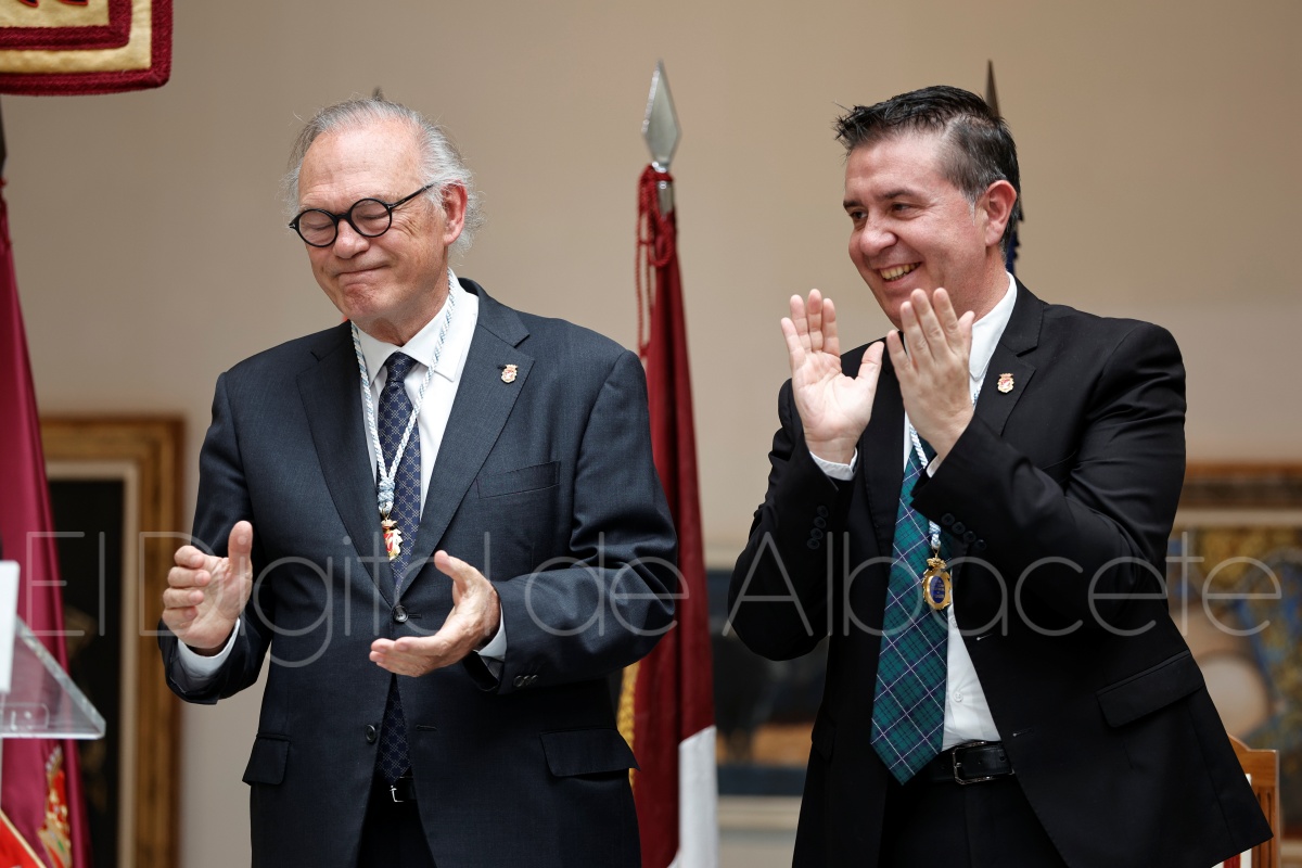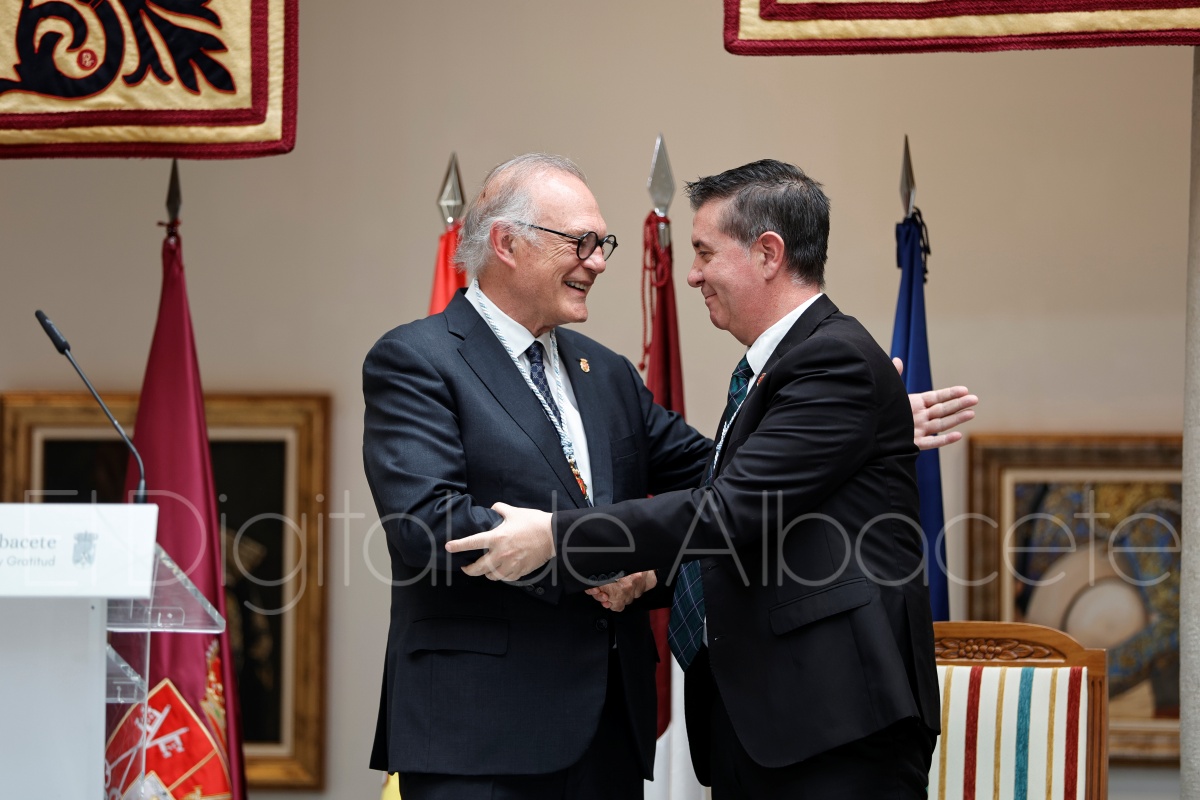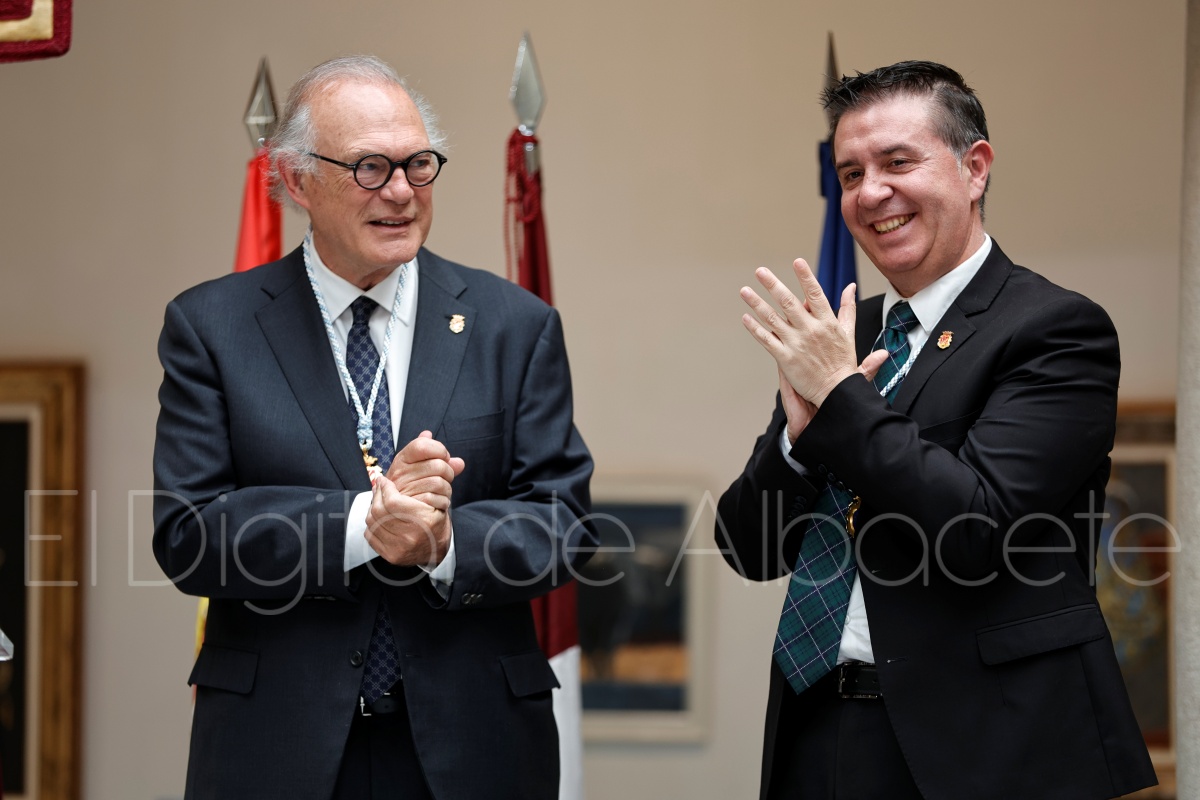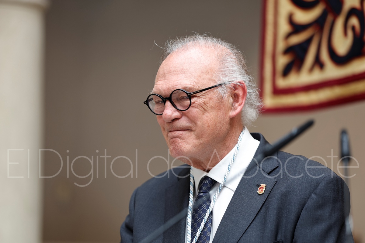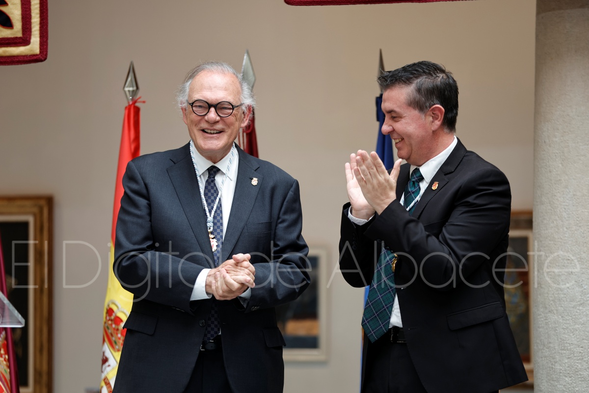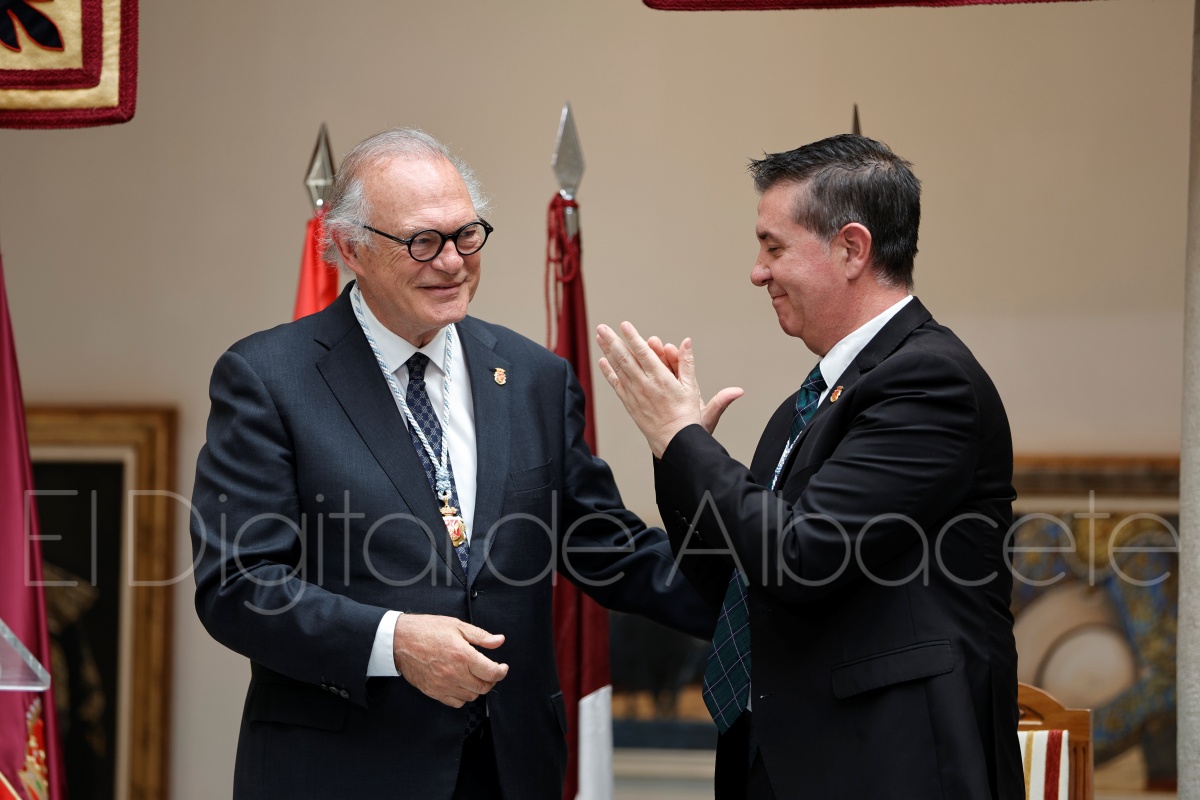 Una amplia radiografía de quién es Pedro Piqueras por la que la Diputación de Albacete otorgaba esta medalla “que es de Oro, porque representa una forma de hacer las cosas bien durante mucho tiempo y sin atajos”, recordaba Santiago Cabañero. Pero además esta distinción “es de Honor por lo que sentimos nosotros cuando te oímos decir soy de Albacete, y es de gratitud, porque esta tierra, cuando alguien le da tal uso como tú nos has dado, intenta devolverlo, aunque siempre sepamos que nunca será suficiente”, expresaba el presidente de la institución provincial.