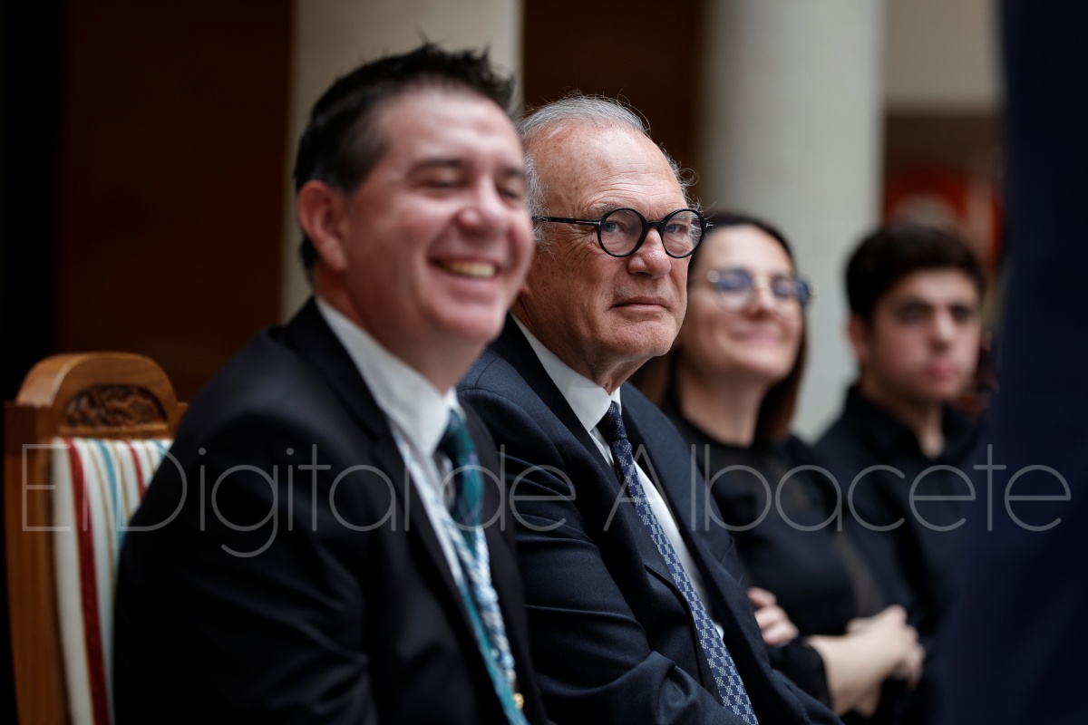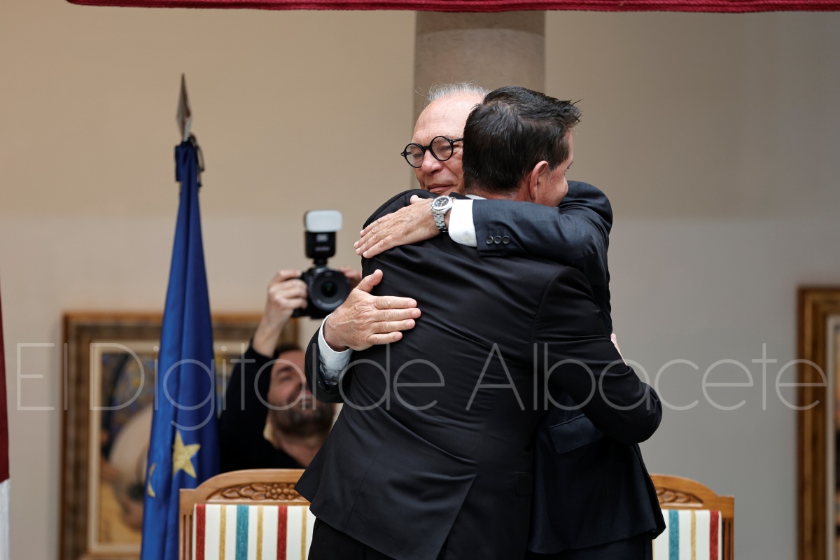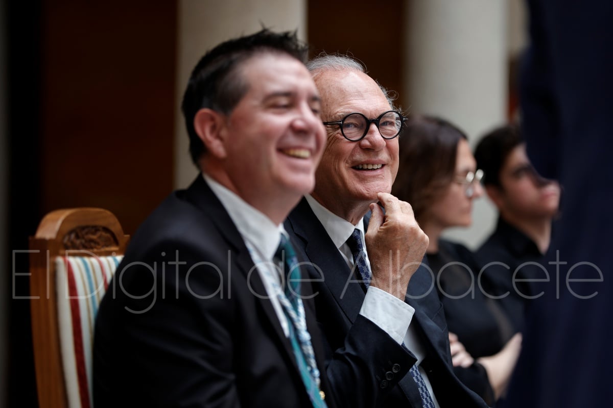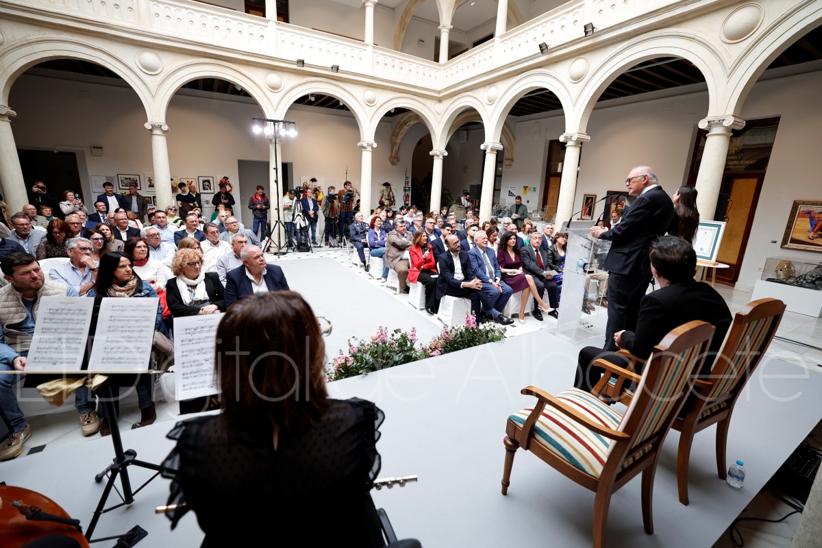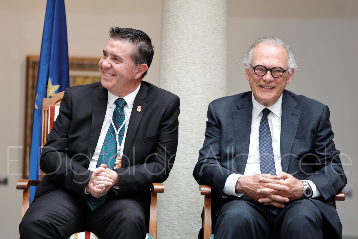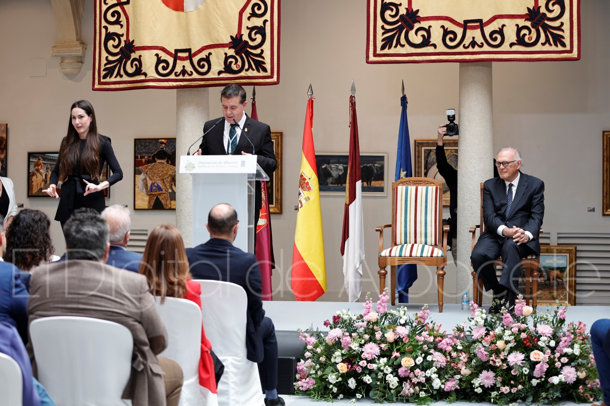 El acto tenía lugar en el emblemático Claustro de la Asunción y en el mismo participaban, además del galardonado, el presidente de la Diputación, Santiago Cabañero; así como otras autoridades, y en la que el periodista Manuel Campo Vidal, dedicaba unas especiales palabras al homenajeado desde la estrecha amistan que une a estos profesionales de la comunicación.