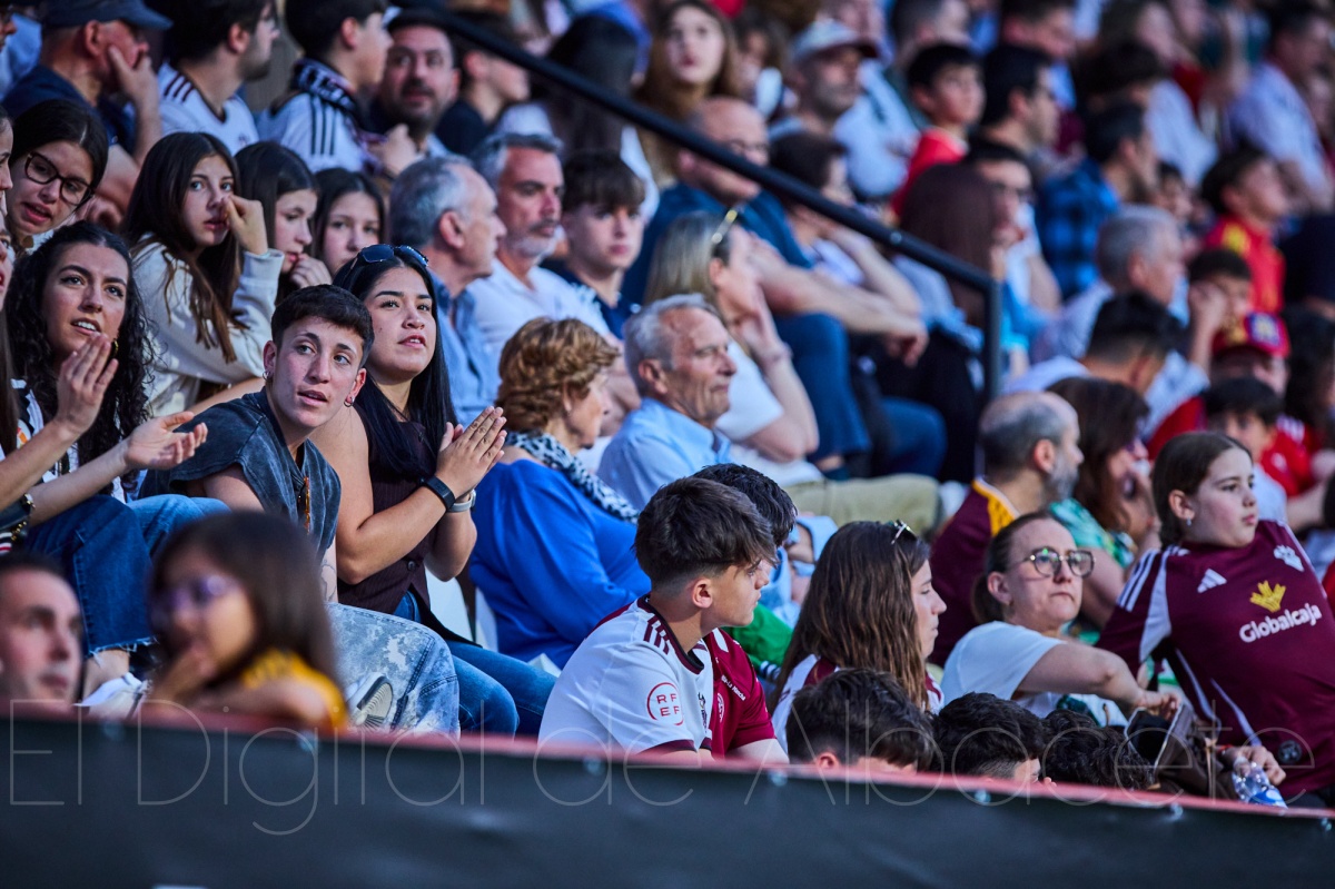 El tramo final del primer tiempo fue bastante más calmado. El Alba dejó de exponerse, entendió que lo principal era proteger el tesoro que tenía en el bolsillo y bajó el partido a un terreno más controlado. El Granada, por su parte, ya no encontró los espacios ni la frescura del arranque para volver a poner en aprietos a Lizoain. Así, con el 2-0 campeando en el marcador y después de cinco minutos de añadido, Cid Camacho señaló el camino de los vestuarios.