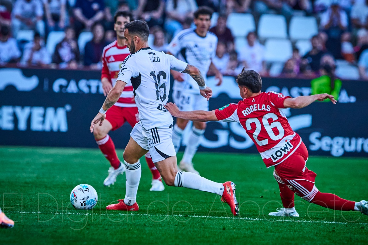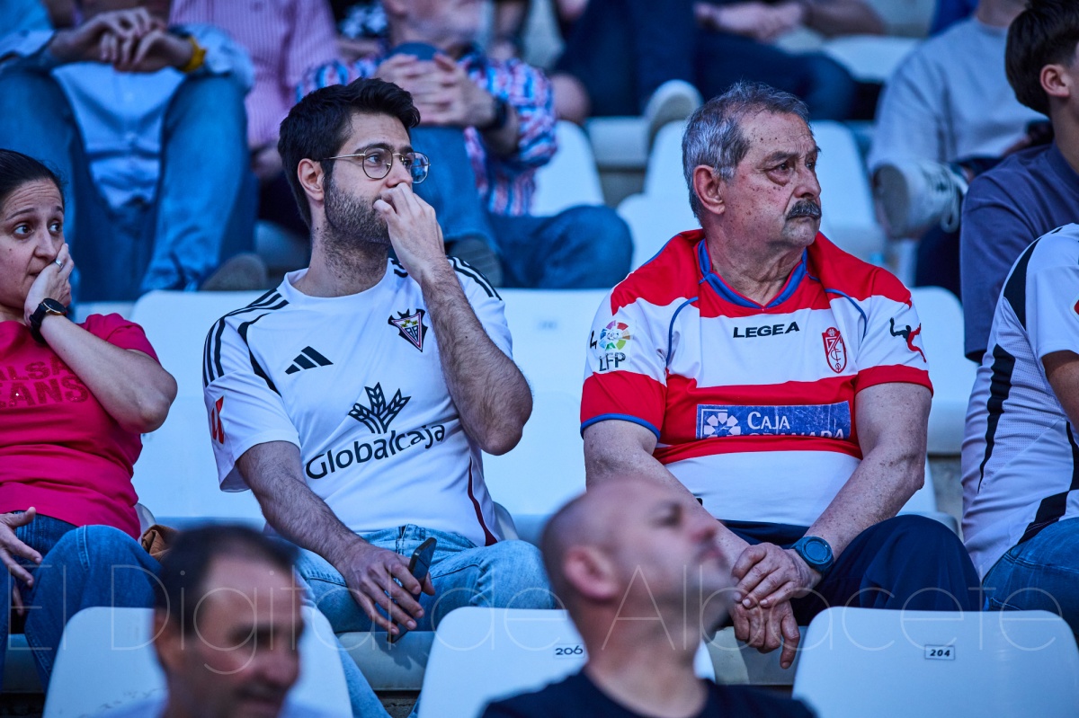 La herida todavía escocía cuando el Alba volvió a golpear. Apenas cuatro minutos después, en el 14, Fran Gámez volvió a hacerse notar, esta vez con un saque de falta preciso desde el perfil diestro del ataque blanco que encontró la cabeza de Luis López. El central catalán cabeceó de manera magistral y dobló la ventaja con un 2-0 que dejó al Belmonte entre la incredulidad y el alivio. Porque sí: el Granada había sido infinitamente mejor durante muchos minutos, pero el que mandaba con dos goles de renta era el Albacete. Así es el fútbol, capaz de castigar con crueldad al que domina y premiar con generosidad al que acierta.