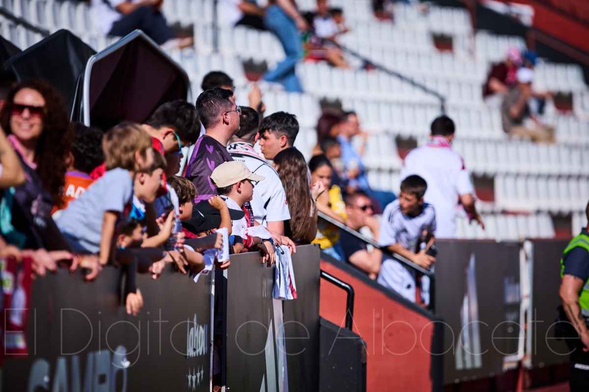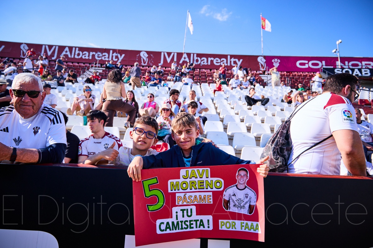 Centrándonos ahora en lo que fue el devenir del encuentro propiamente dicho en sí, cabe decir que bajo un sol de justicia, con el termómetro rozando los 30 grados y el buen tiempo por bandera, el Carlos Belmonte volvió a abrirse este domingo para recibir a un Albacete Balompié que regresaba a casa con demasiadas cuentas pendientes consigo mismo. Después de la nueva charlotada firmada en Butarque, y tras varias semanas arrastrando el escudo con actuaciones impropias ante Mirandés, Burgos y Leganés, el equipo de Alberto González comparecía ante su gente con una triple obligación: afrontar el primero de los dos partidos consecutivos en casa, dejar encarrilada de manera casi definitiva la permanencia en caso de victoria y, sobre todo, empezar a reconciliarse con la dignidad competitiva que tanto había echado de menos su afición. Porque mientras Toché, ‘Moneyball’ para los amigos, hablaba de play off, la realidad reciente del equipo invitaba bastante más al sonrojo que a la ilusión.