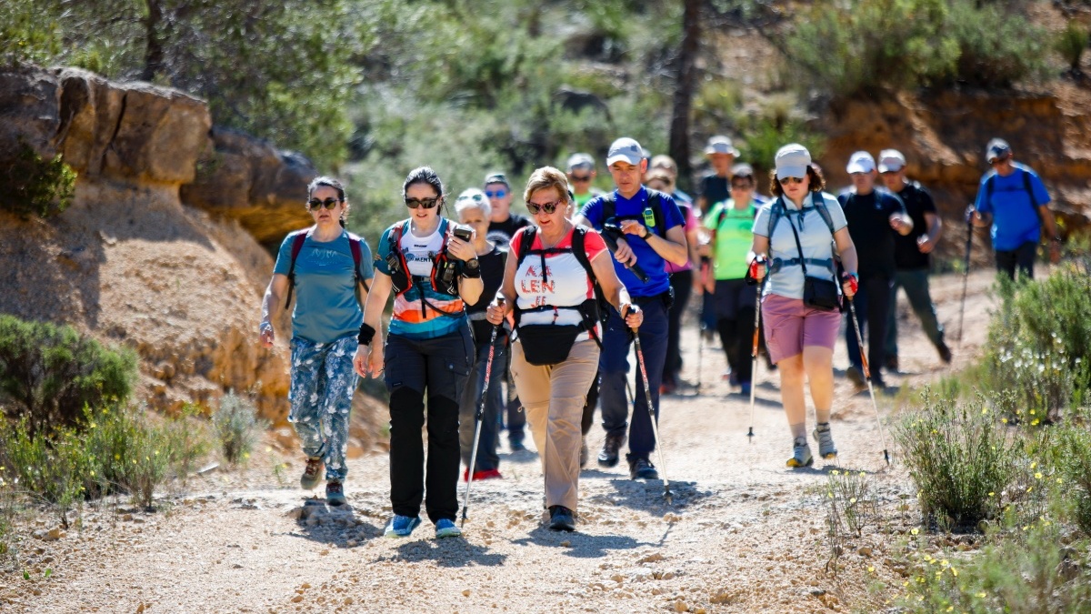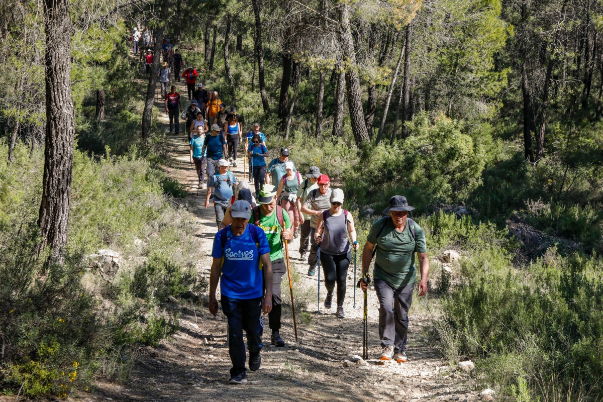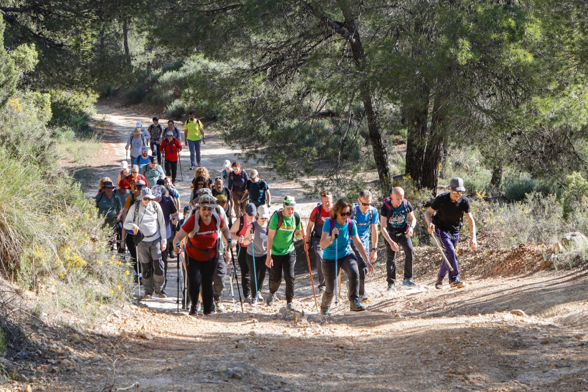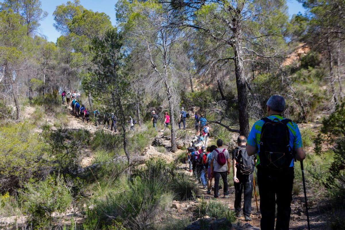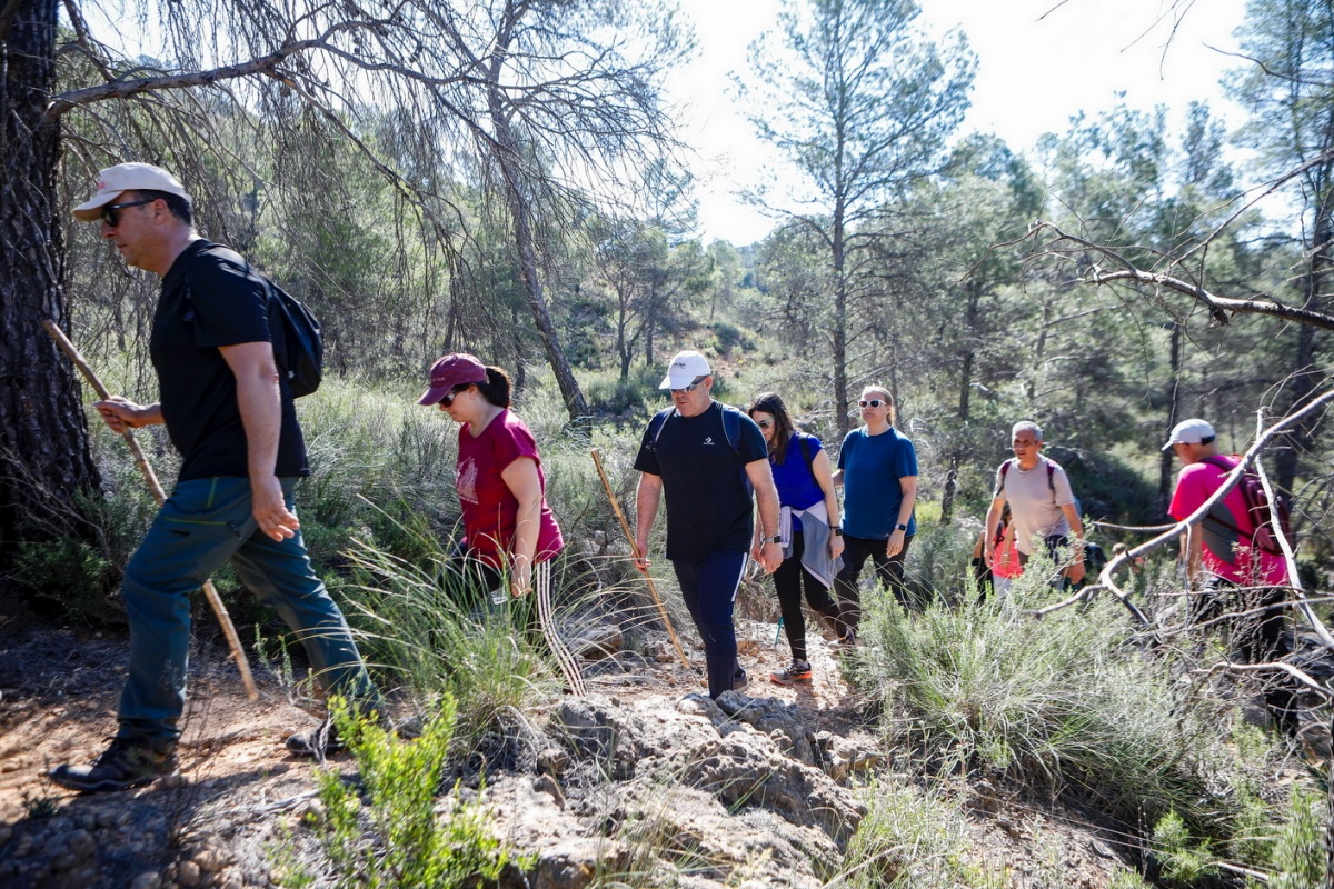 Comenzaron la marcha a pie por un pequeño tramo, por asfalto, rodeados de campos de cultivo, almendros y olivos principalmente, como un kilómetro, para luego desviarse a la derecha y tomar la senda del tigre, ya un entorno de monte mediterráneo, principalmente pino, romero, tomillo y aliagas ya en flor, donde habita la cabra montesa, junto a ciervos, corzos y rapaces como el Águila Real. Se adentrarían en un paraje declarado Reserva de la Biosfera por la UNESCO en 2019 y espacio de la Red Natura 2000.
