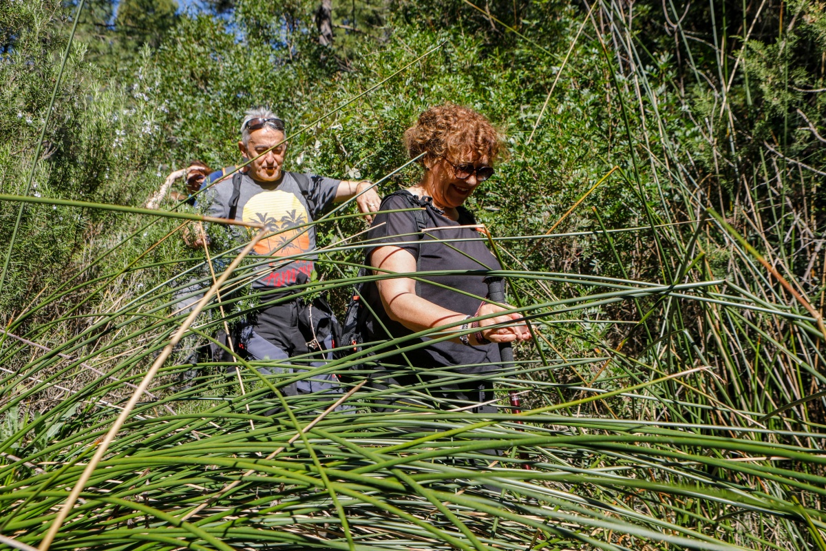 Fue una mañana soleada hasta el final. Tras un café en el municipio, se desplazaron en dos microbuses al punto de partida, “La Ceja”, que es el corte del llano de Casas Ibáñez al monte.