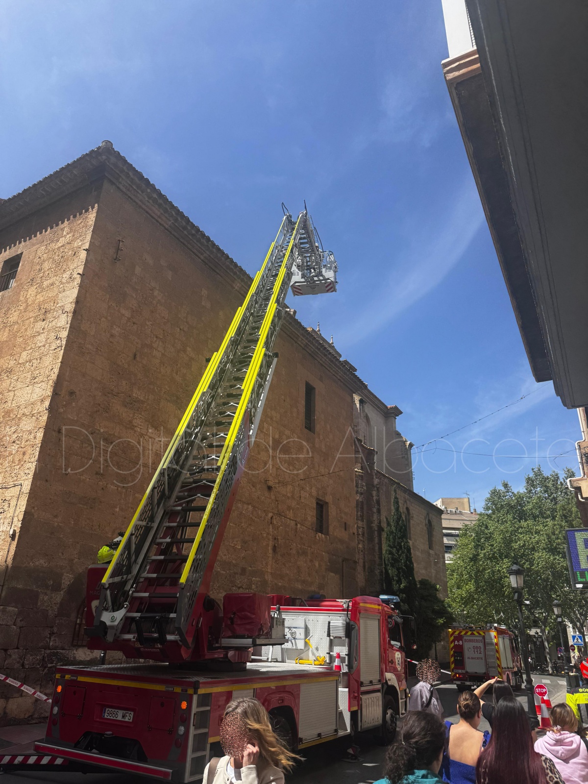 Detrás de este atasco de grandes dimensiones se encontraba un motivo poco habitual: un enjambre de abejas. Estos pequeños insectos, fundamentales para el equilibrio natural, se habían asentado en la fachada de la Catedral, lo que obligó a los bomberos a intervenir para su retirada.