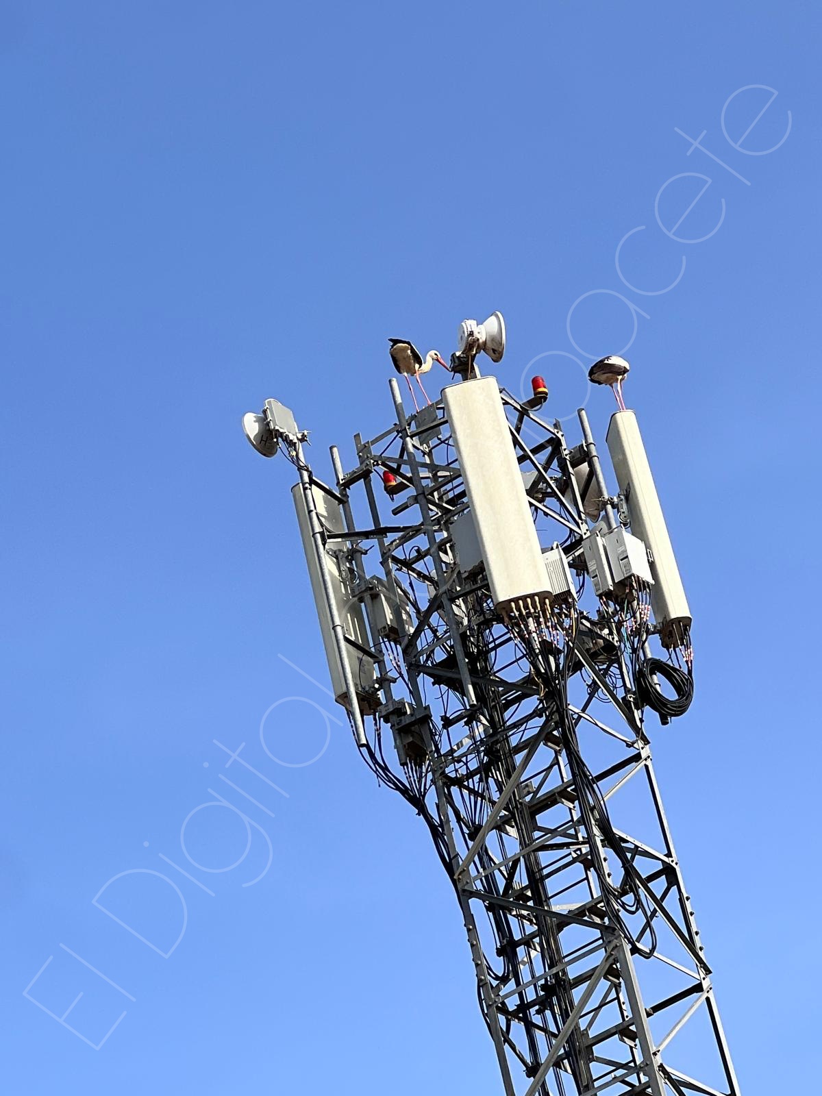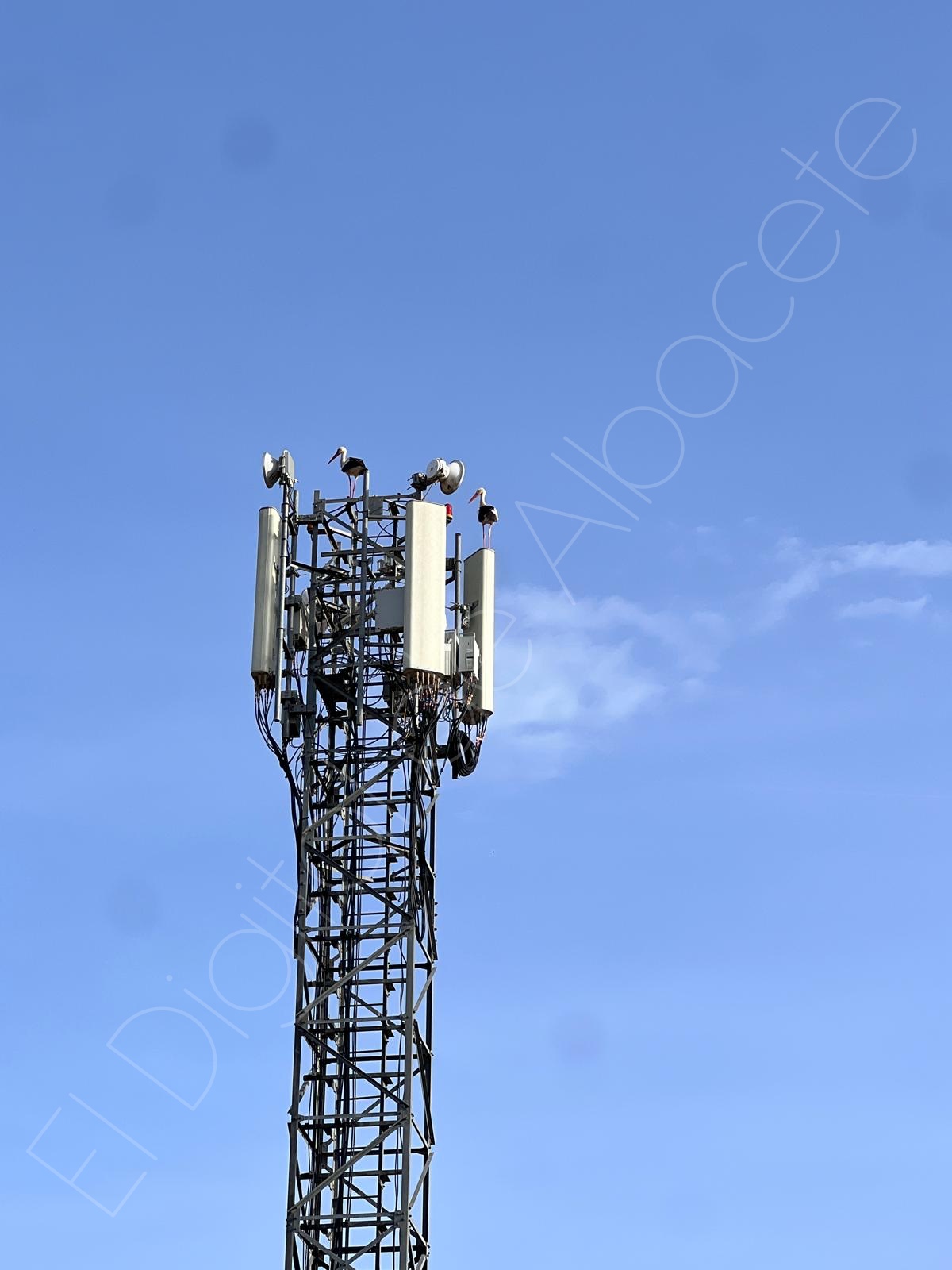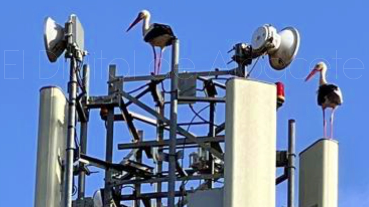 La presencia de cigüeñas en Albacete capital no es frecuente, lo que convierte en especialmente llamativa la escena registrada este martes en el polígono industrial ROMICA. Dos ejemplares de esta ave zancuda fueron avistados posándose en lo alto de una torre de telecomunicaciones, donde permanecieron durante varios minutos antes de retomar su vuelo.