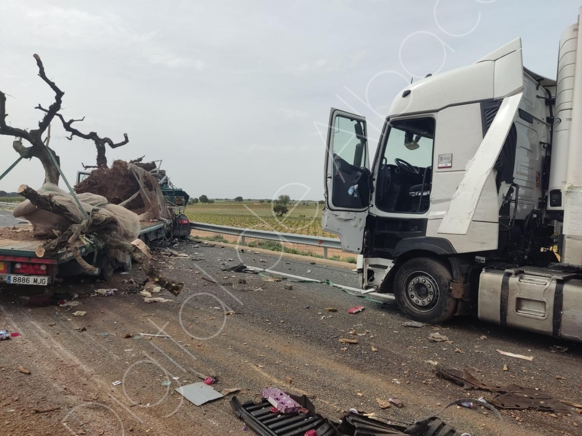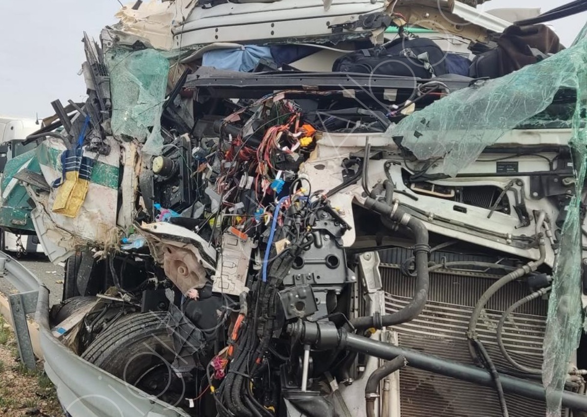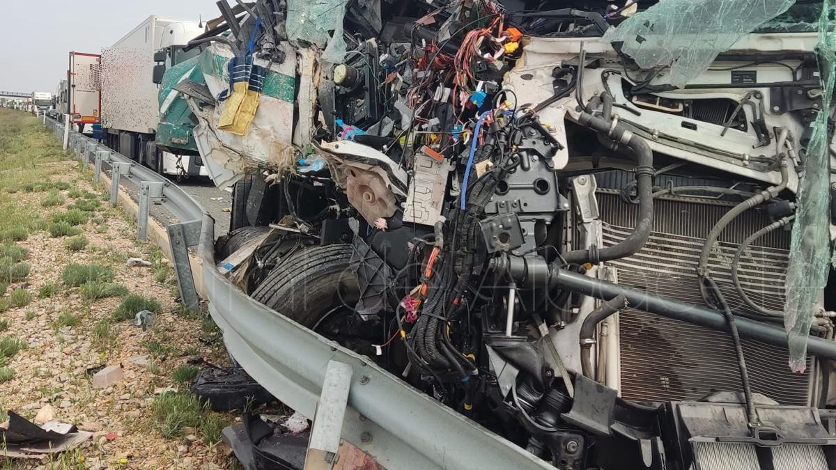 La colisión implicó a dos vehículos pesados y dejó una escena de gran dureza, como muestran las imágenes del accidente, con uno de los camiones prácticamente destrozado en su parte delantera y numerosos restos esparcidos sobre la calzada.