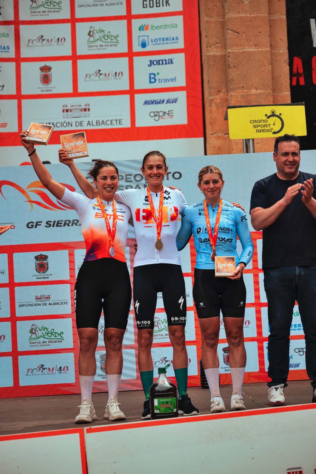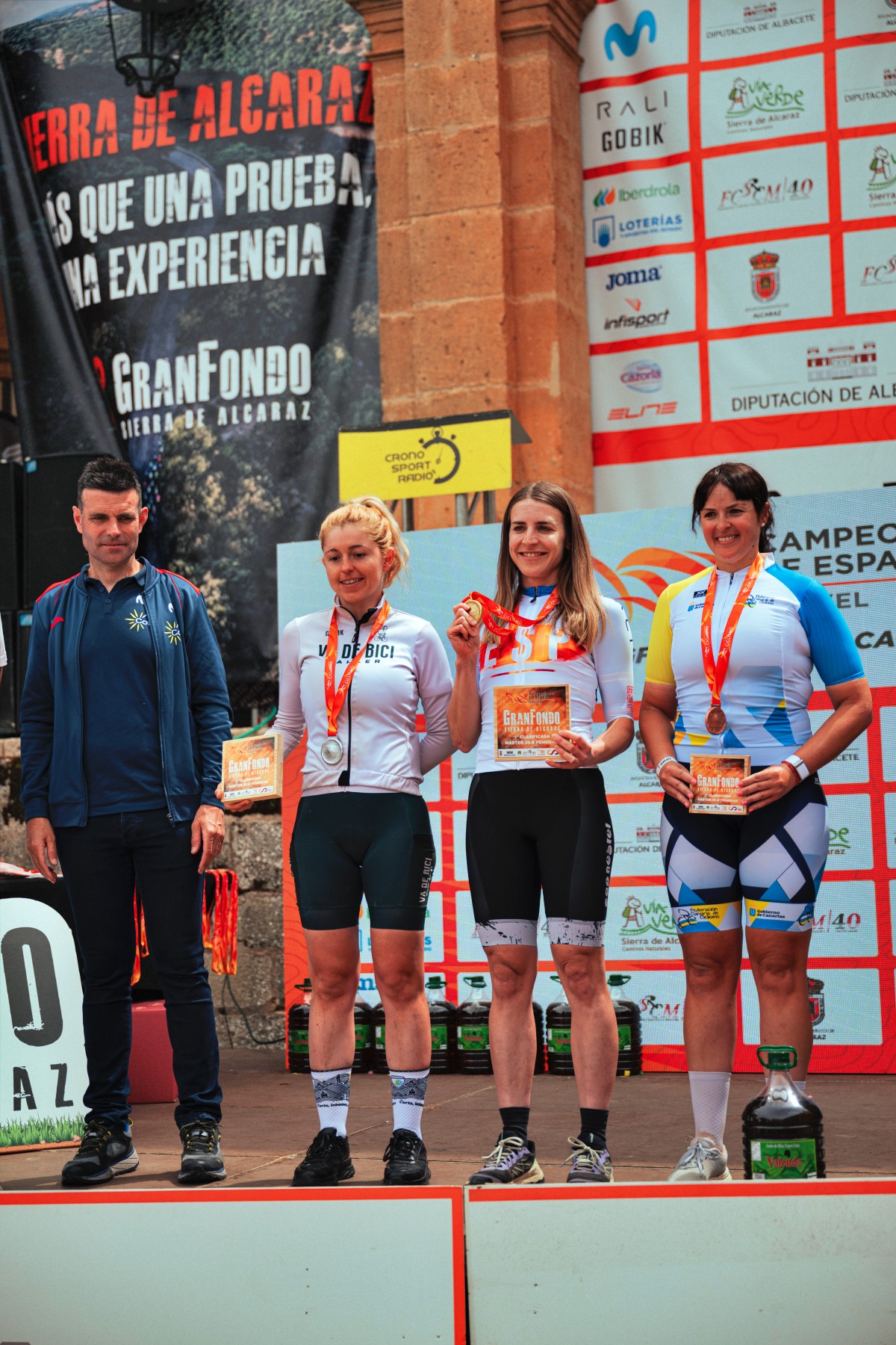 En la prueba femenina, la subida más exigente de la jornada permitió a Natalia Fischer distanciarse de sus rivales. La persecución la lideró en solitario Maier Olano (Massi Baix Ter). Pero nadie pudo alcanzar a la corredora del Extremadura Ecopilas, que con abrumadora calidad se proclamó campeona de España de gravel. El grupo perseguidor terminó disputando al esprint los títulos del resto de categorías y también el pódium, con Lidia Castro (Mirat Team) segunda en meta y campeona junior; y Marta Beti (Cantabria) tercera en meta y campeona sub-23.