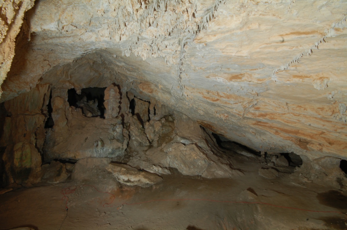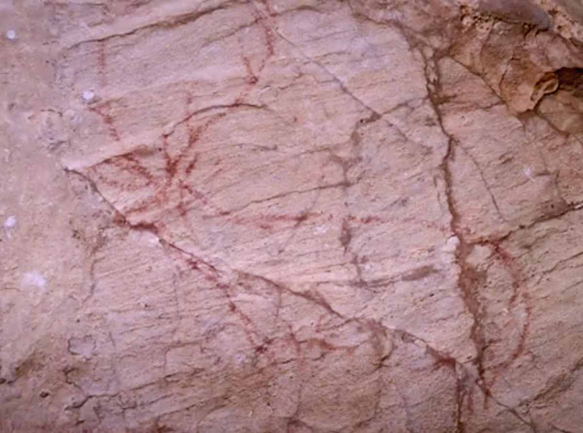 Más de una veintena de grafías, algunas correspondientes a animales que no se han podido identificar, dibujadas en tonos rojizos, que se distribuyen en dos zonas concretas. Por una parte el vestíbulo, la zona más accesible, y una galería interior a la que accede tras pasar por bloques y algunas formaciones.