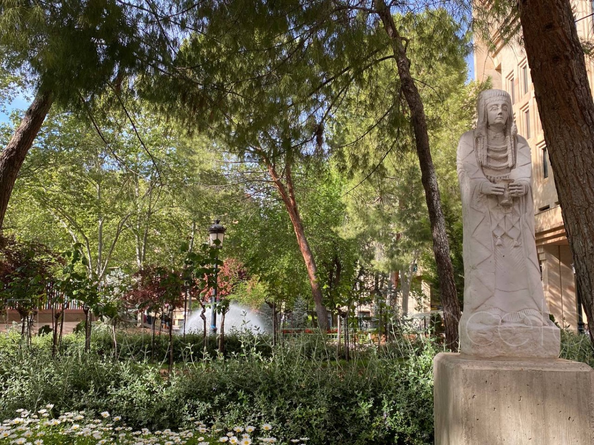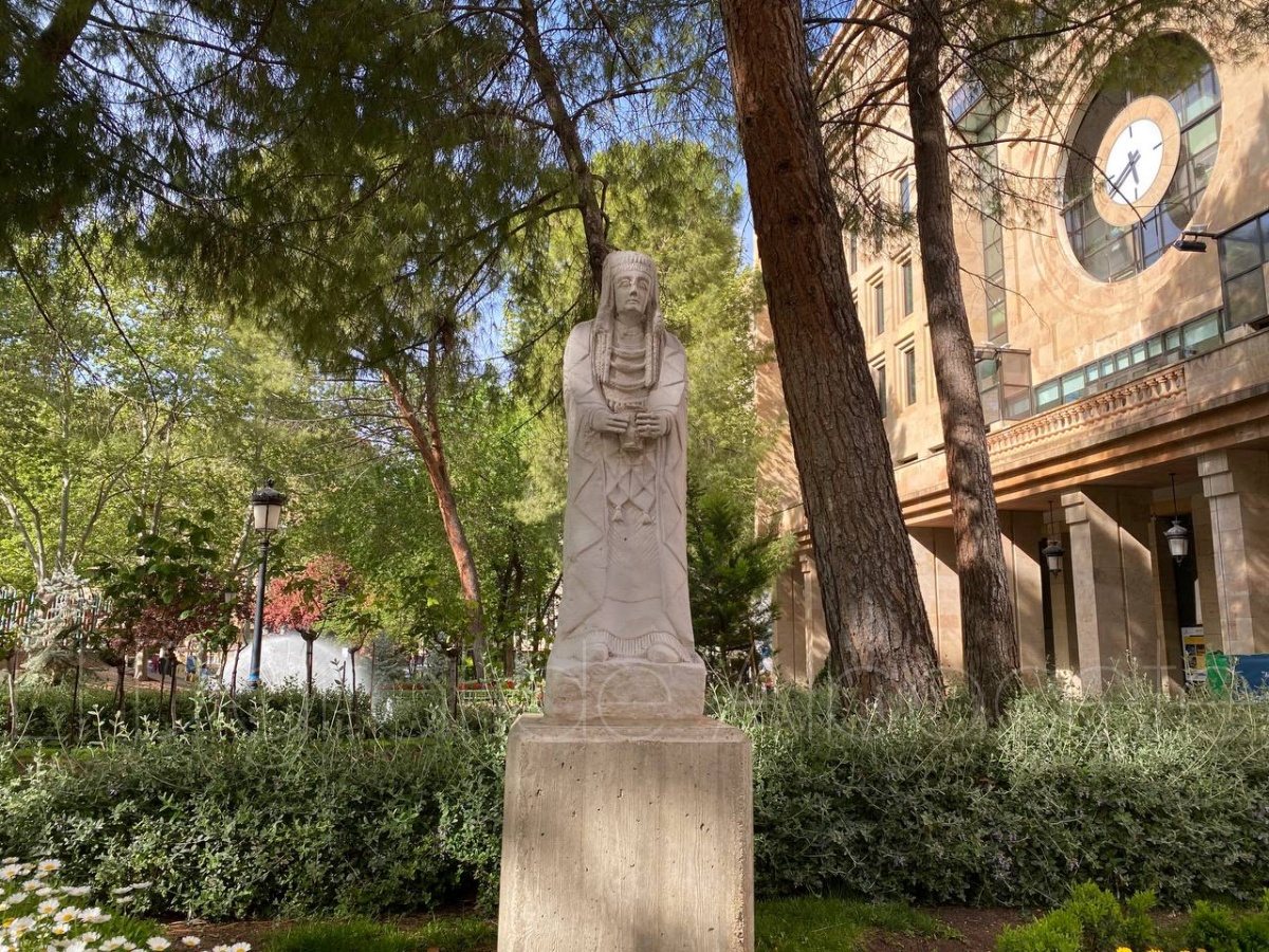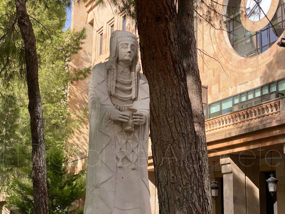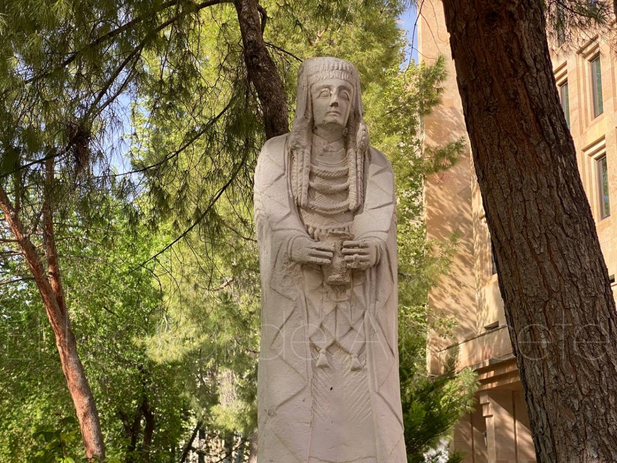 La escultura mide cerca de 1.35 metros de altura, y es una de las mejores conservadas de este espacio privilegiado. Además, destaca su tamaño considerable sobre el restos de piezas y el estado de conservación. Esta ‘gran dama’ fue hallada al principio de la excavación y fue adquirida por un coleccionista que posteriormente, años después, fue vendida al Museo Arqueológico Nacional.