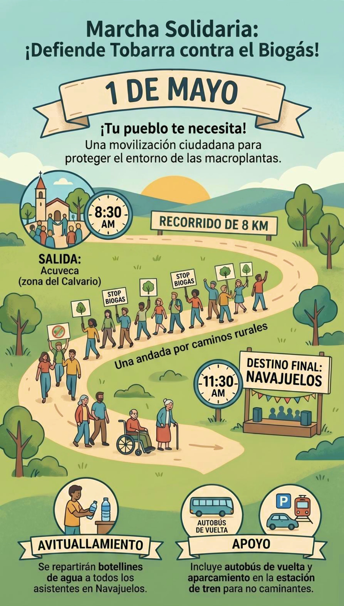 Como siguiente paso, el movimiento ciudadano ha convocado una gran movilización el próximo 1 de mayo en la zona de Navajuelos, donde está prevista la instalación de las plantas. La jornada incluirá una marcha senderista desde el casco urbano de Tobarra hasta el enclave afectado, seguida de una concentración en la que se dará lectura a un manifiesto conjunto. Además, se ha acordado la organización de concentraciones mensuales para mantener la presión social.