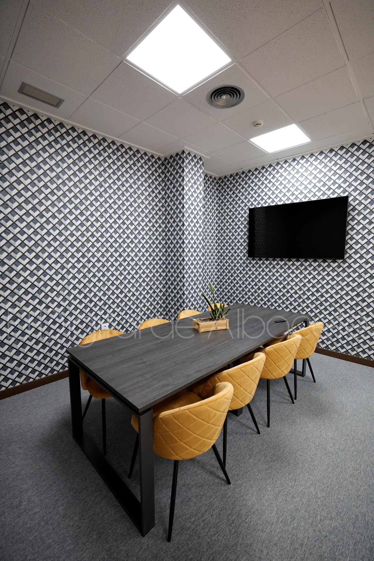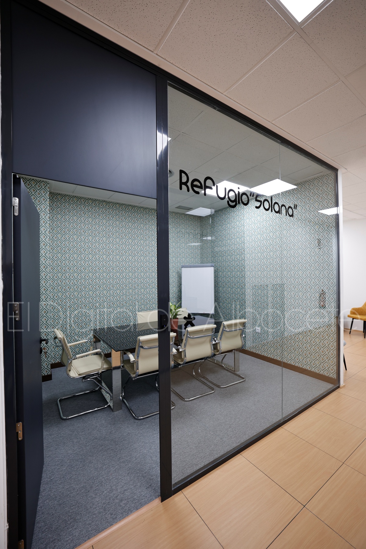 No*mad Coworking Albacete está pensado para adaptarse a cualquier forma de trabajar, ofreciendo una variedad de espacios diseñados para cada necesidad. Dispone de una sala para 2 a 4 personas, ideal para videollamadas, entrevistas o reuniones telefónicas en un entorno tranquilo y privado, así como una sala de reuniones completamente equipada para 6 a 8 personas, perfecta para encuentros con clientes, talleres o reuniones híbridas. El espacio cuenta además con un office equipado para desayunos y pausas, mesas destinadas a las reuniones de la comunidad y una salida al patio que invita a desconectar entre tareas. A todo ello se suman 18 puestos flexibles para determinadas tarifas, mesas de comunidad pensadas para el intercambio de ideas, un área para talleres, charlas y eventos, y un proyector que permite realizar presentaciones con total comodidad.