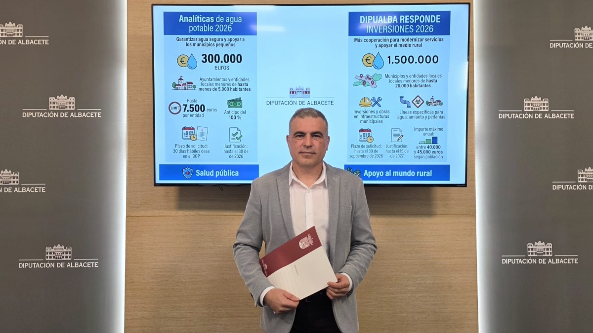 Además de esta convocatoria específica para analíticas del agua potable, la institución provincial mantiene otras líneas de actuación en materia hídrica e inversiones municipales. En ese contexto, Calvo ha recordado que dentro del programa Dipualba Responde Inversiones 2026 se ha incorporado una dotación específica para actuaciones relacionadas con agua y amianto., con una una dotación específica de 1.500.000 euros destinada a ayuntamientos y entidades locales menores de la provincia con población inferior a 20.000 habitantes.