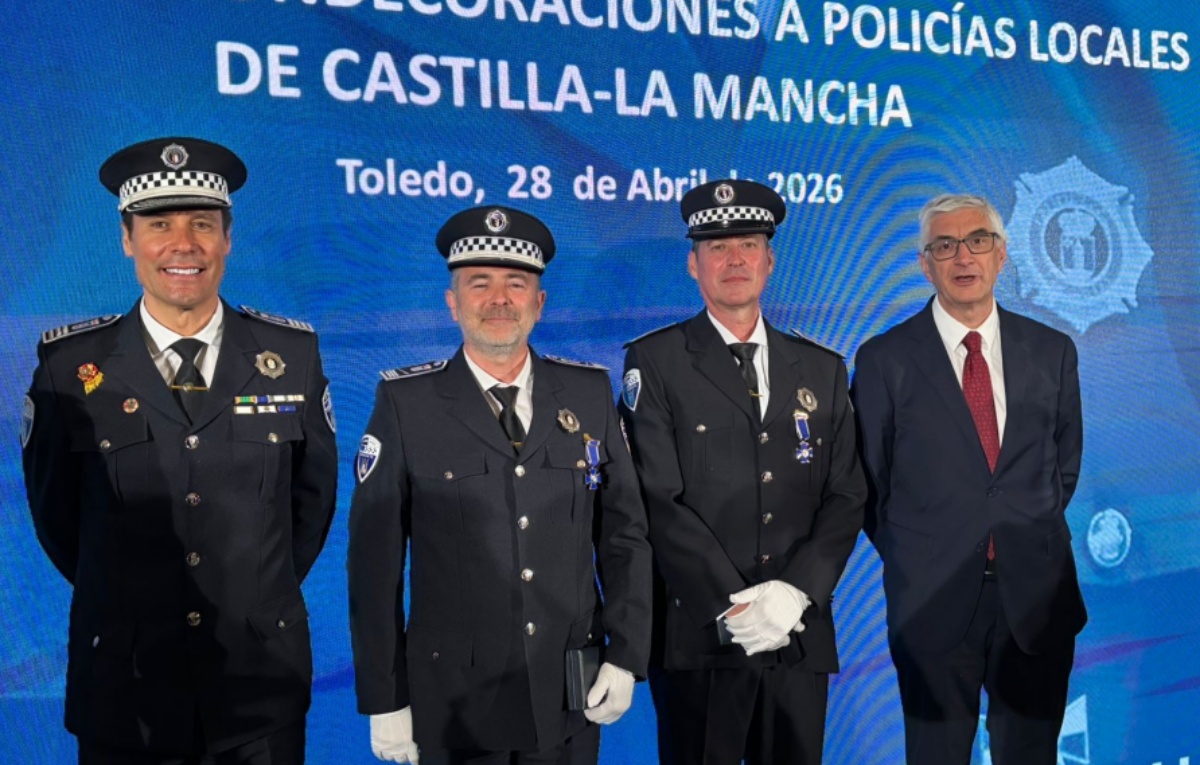En un solemne acto celebrado en el Archivo Regional en Toledo, en el que también ha estado presente el jefe de la Policía Local Diego López, les han sido impuestas las condecoraciones al inspector Mario Adolfo Rubio Lara y al oficial Manuel Santos López, en reconocimiento a sus respectivas trayectorias profesionales y a su contribución al servicio público.