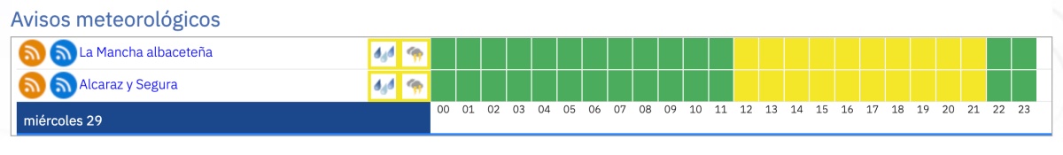 La Agencia Estatal de Meteorología (AEMET) activará este miércoles el aviso amarillo por lluvias y tormentas en varios puntos de la provincia de Albacete, en una jornada que estará marcada por la inestabilidad atmosférica.
