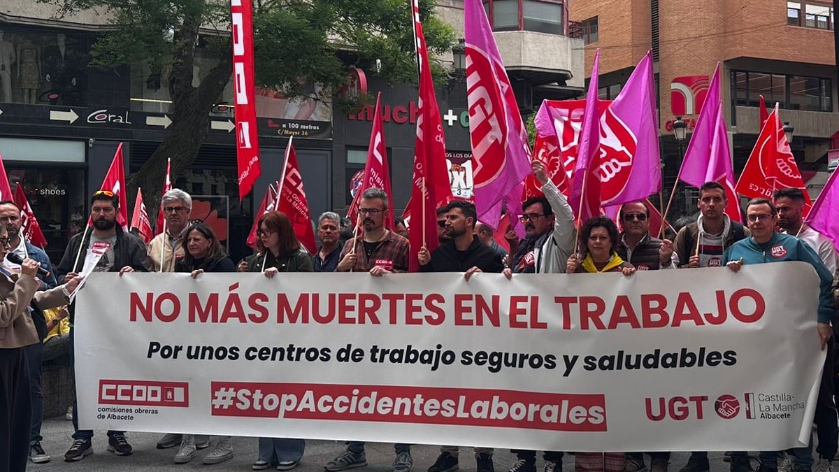 En el Día Mundial de la Seguridad y Salud en el Trabajo, UGT y CCOO Albacete se han concentrado en la Plaza Mayor de la capital para exigir mejoras en la prevención de los riesgos laborales y actuaciones contundentes para frenar la lacra de la siniestralidad laboral. Los secretarios provinciales de ambos sindicatos han puesto de manifiesto la necesidad de actualizar la Ley de Prevención de Riesgos Laborales para adaptarla a las transformaciones que ha vivido en los últimos años el mercado de trabajo.