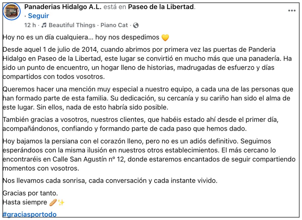 De hecho, la propia empresa ha señalado que «no es un adiós definitivo” e invita a sus clientes a seguir visitándolos en otras ubicaciones, indicando que el punto más cercano se encuentra en la calle San Agustín número 12.
