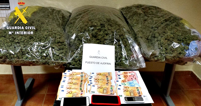Soprendidos con 16 kilos de marihuana y 1.775 euros en efectivo en Castilla-La Mancha